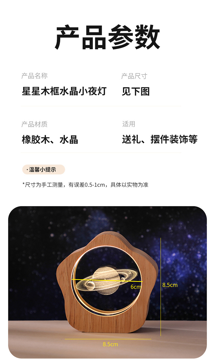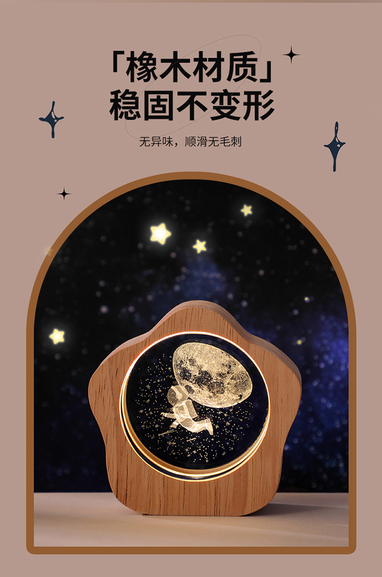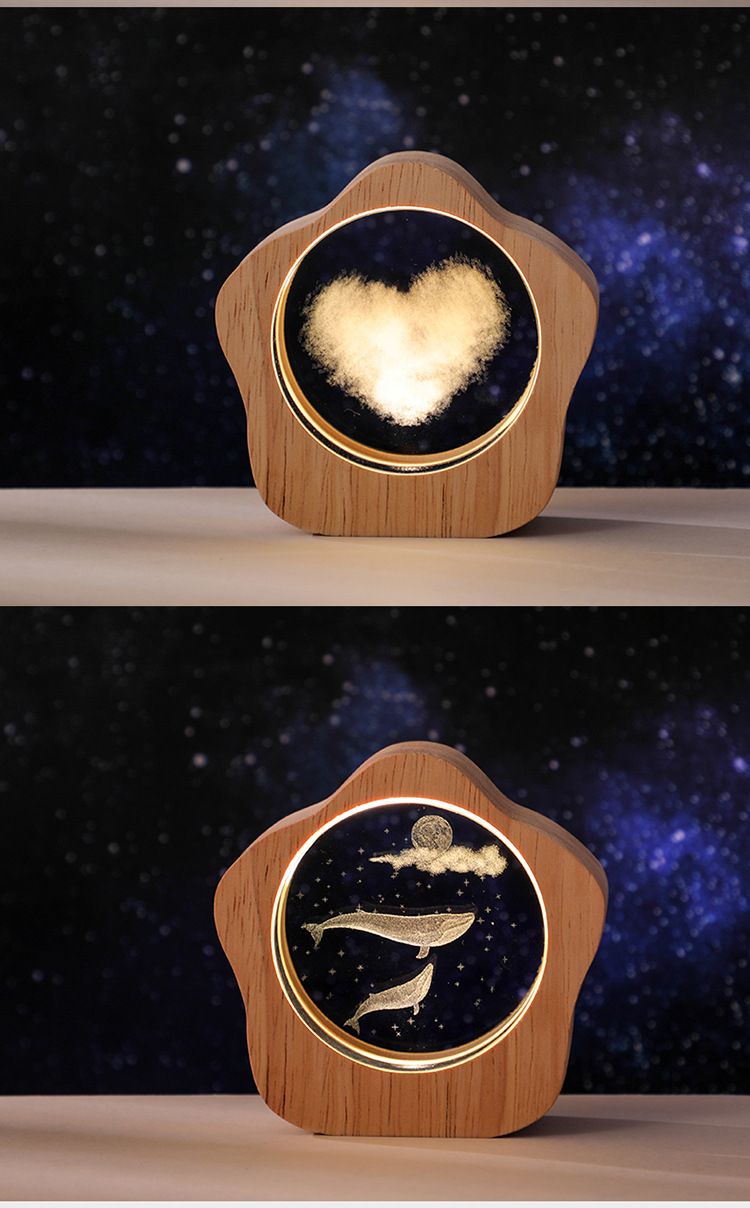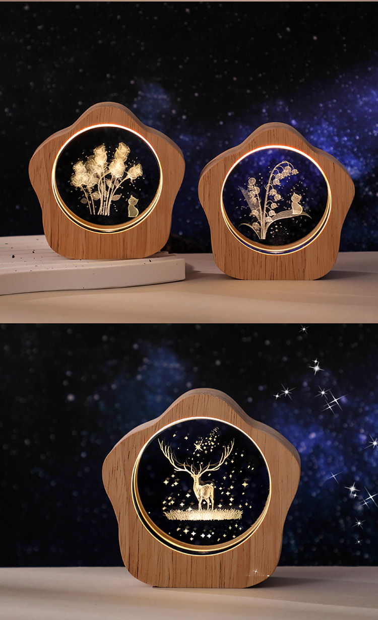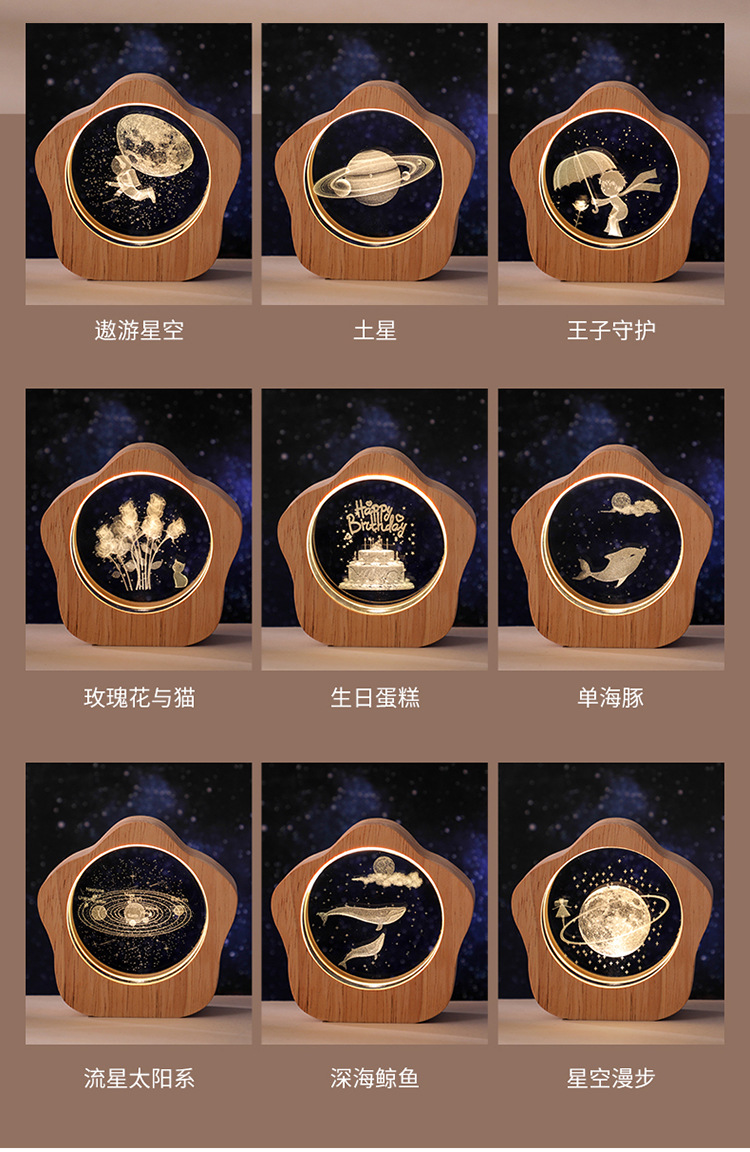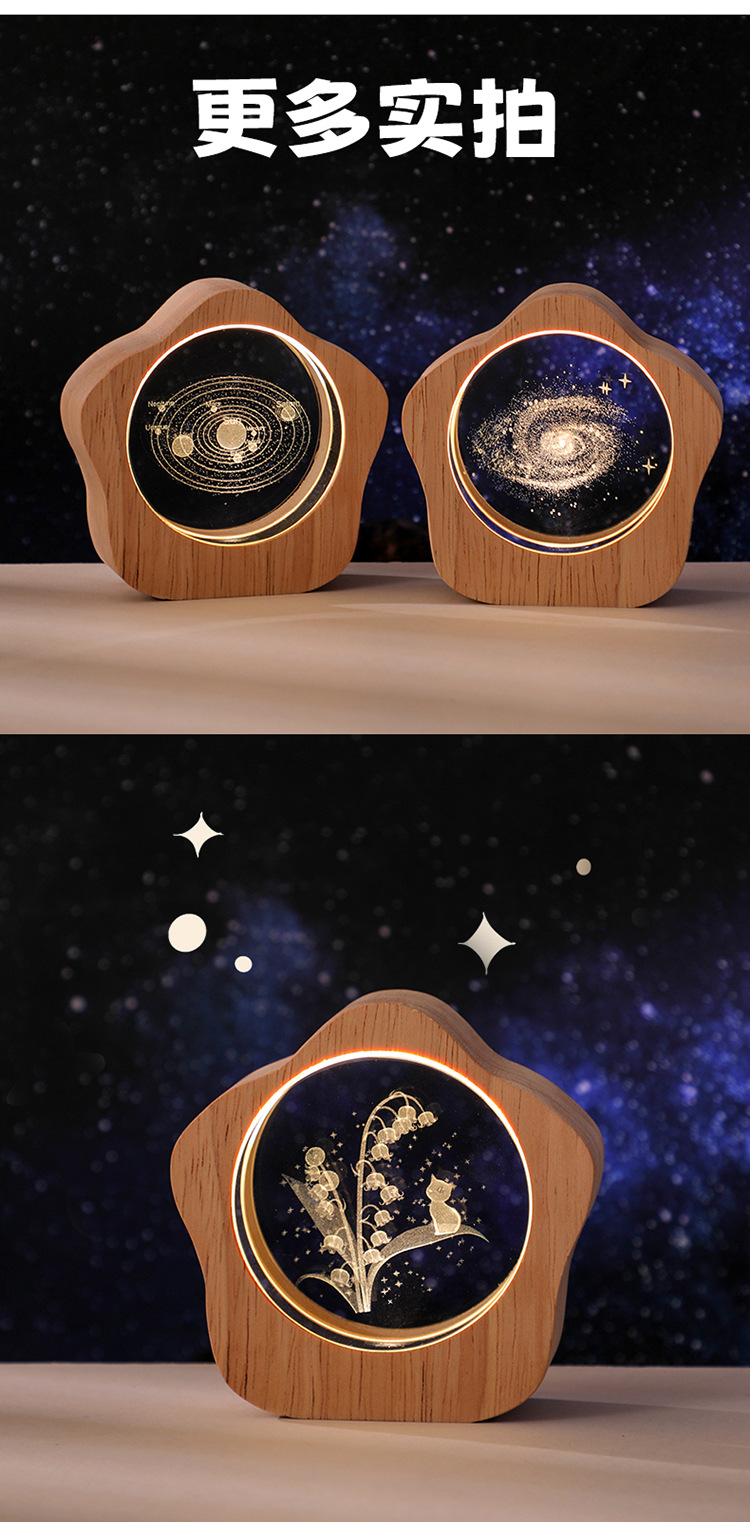 크로스보더 발광 별하늘 3D 내부 조각 크리스탈 무드등 나무 받침대 분위기 조명 창의적인 탁상 장식품 기념품스토어 가기