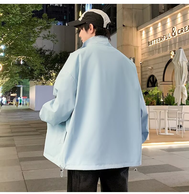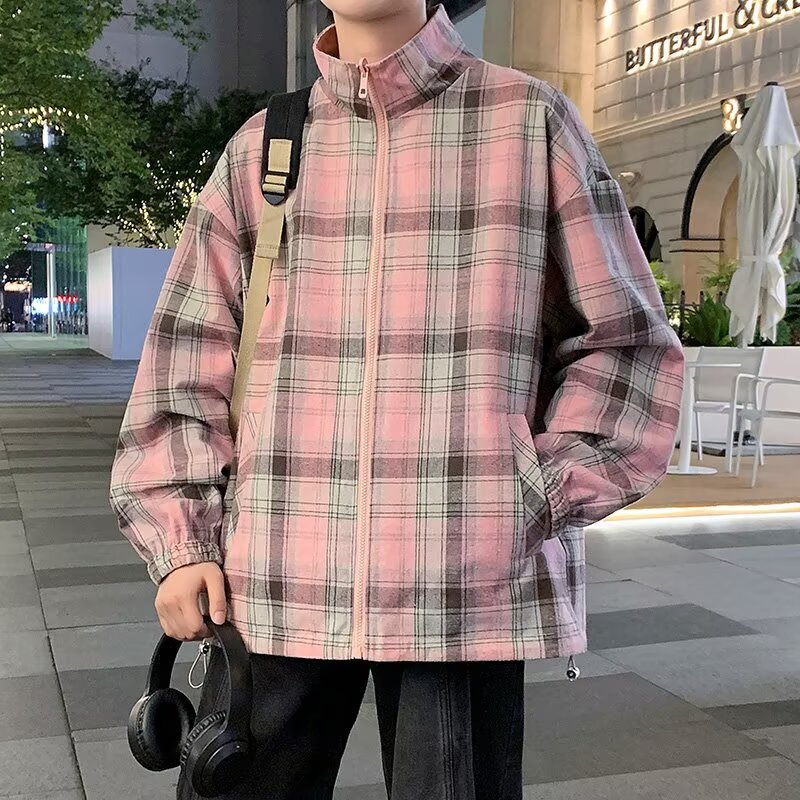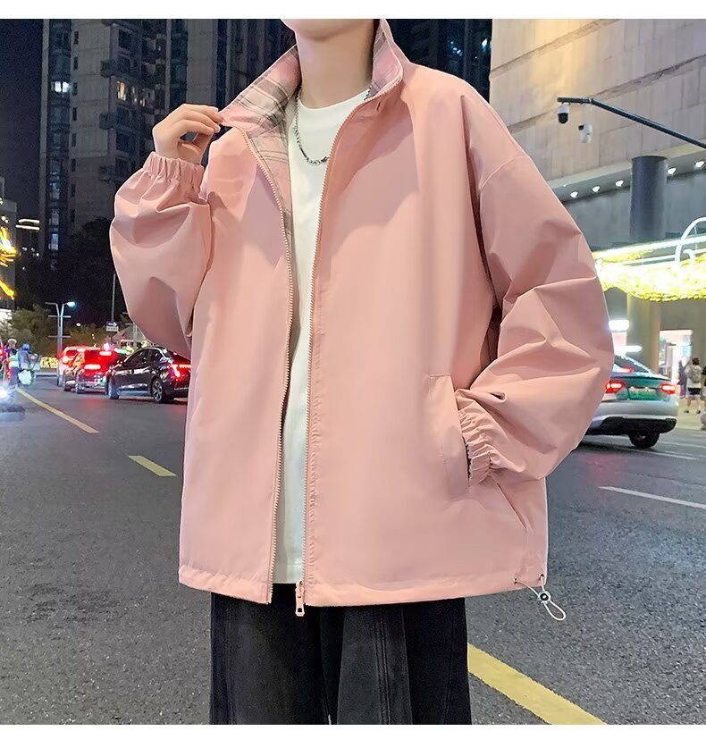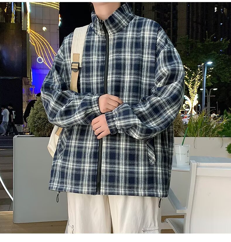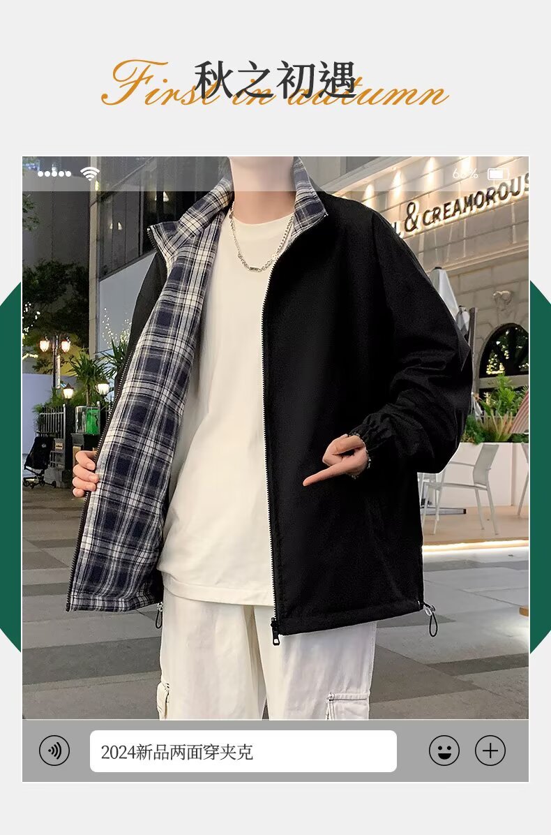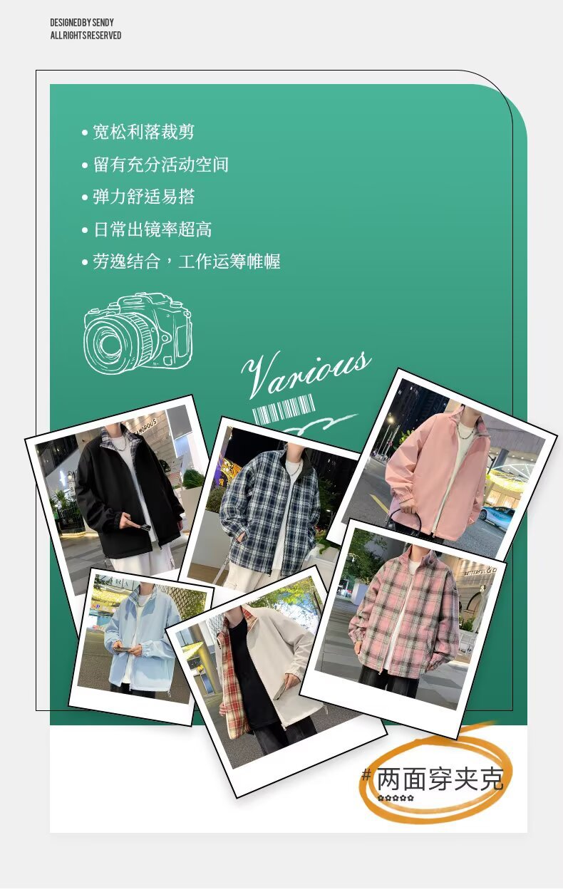 플레이드 양면 착용 봄과 가을 더피 잘생긴 재킷 남자 수직 칼라 라이트 플레이트 양면 재킷 캐주얼 트렌디 커플 재킷스토어 가기