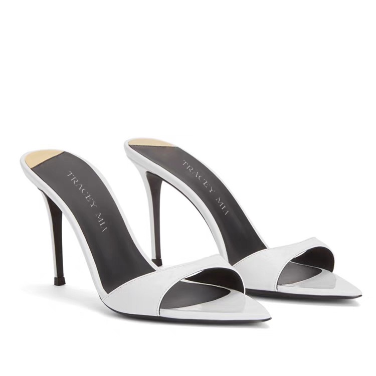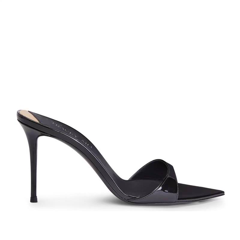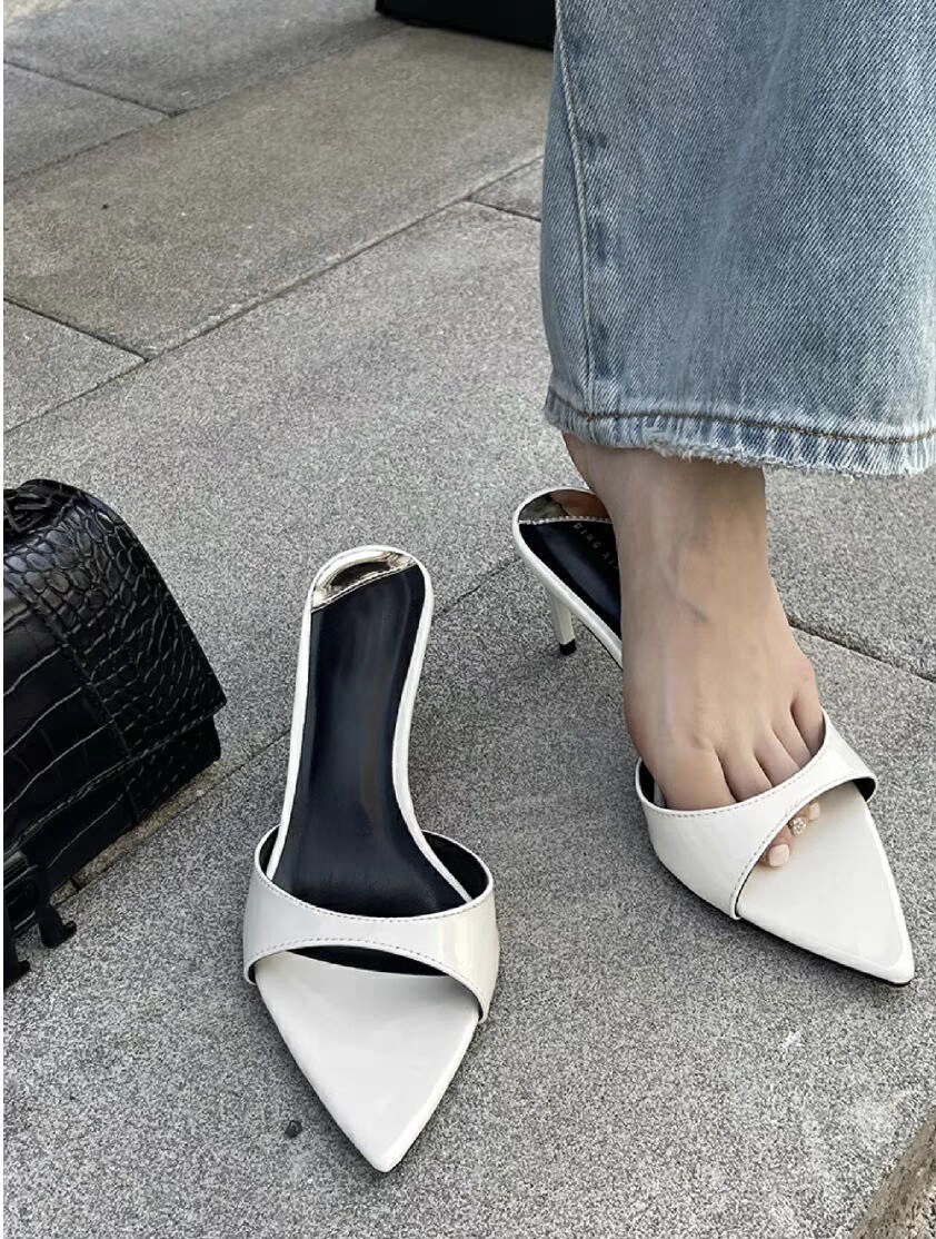 2025 여름 새로운 유럽과 미국 스타일 한 단어 단색 패션 여성의 플러스 사이즈 뾰족한 하이힐 슬리퍼