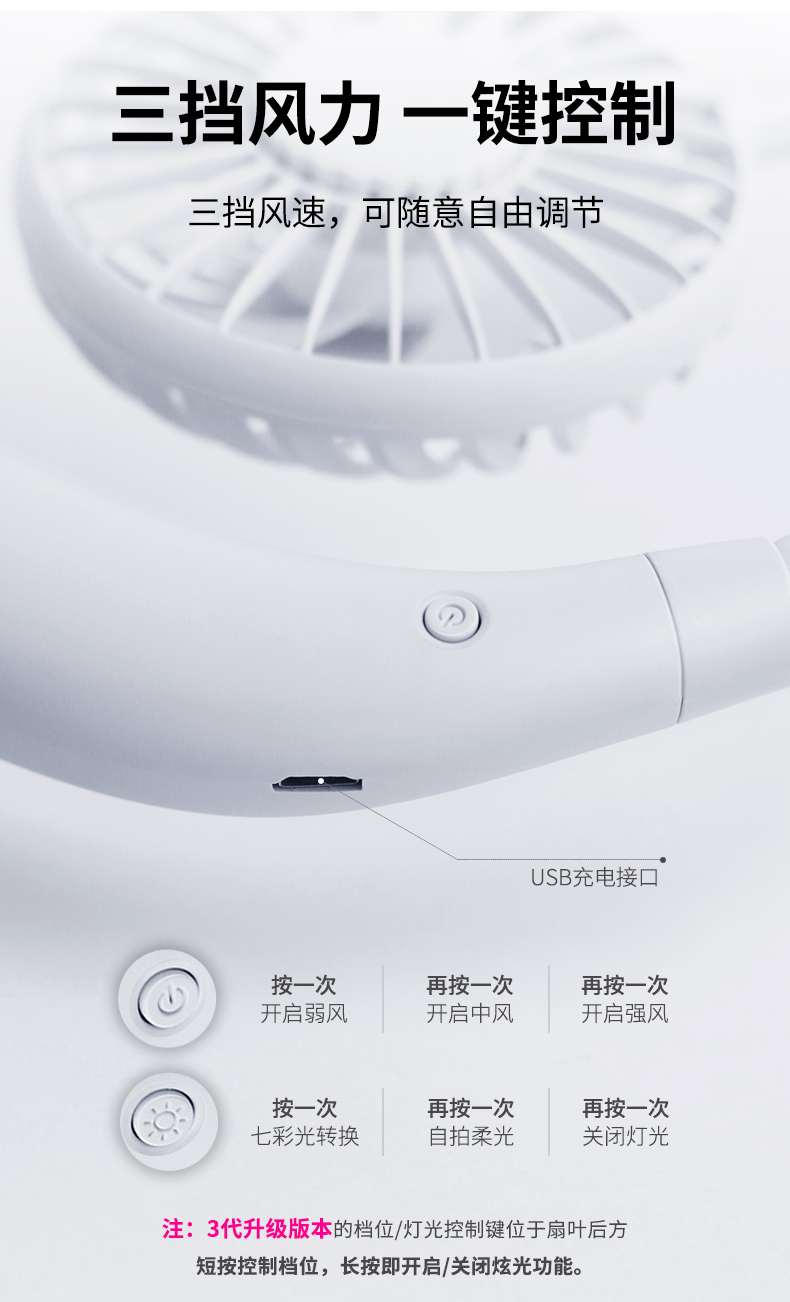 • 3세대 고급 버전 [글레이셔 화이트] 배터리 수명 3시간★충전식★랜턴 아로마테라피★풍력이 1.5배 증가했습니다.⚑