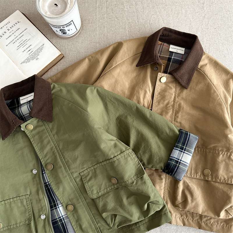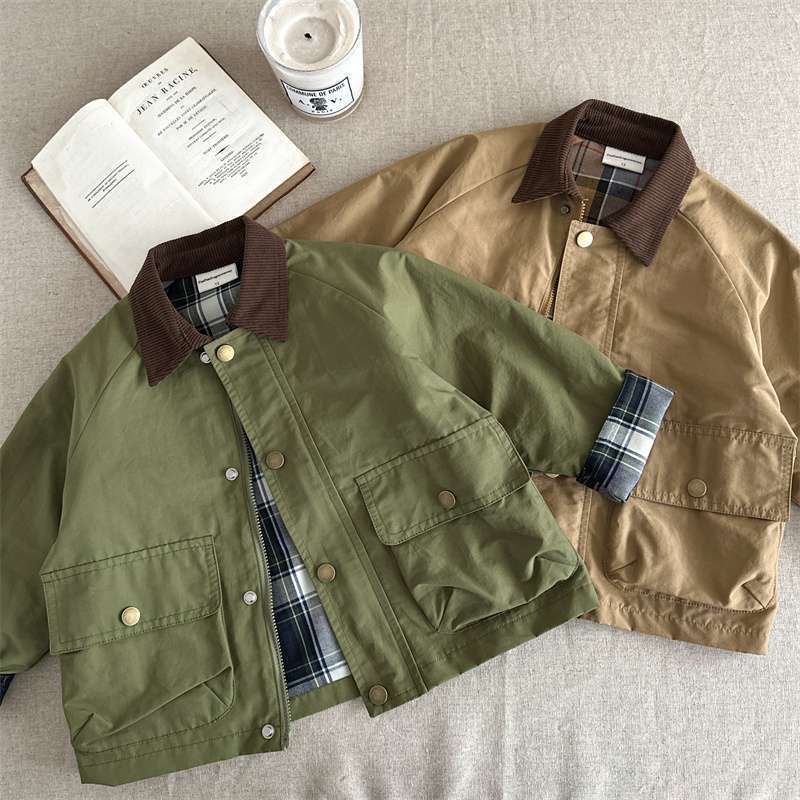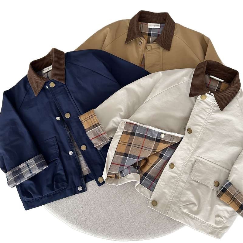 어린이 봄과 가을 코트 2025 소년 소녀를위한 봄 일본과 한국 패션 브랜드 격자 무늬 패치 워크 재킷 아기의 클래식 웨스턴 스타일 코트