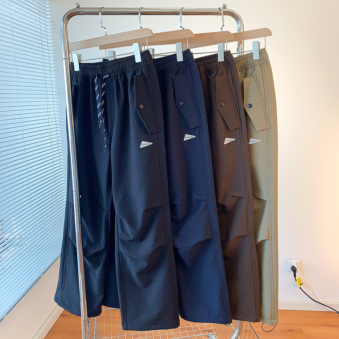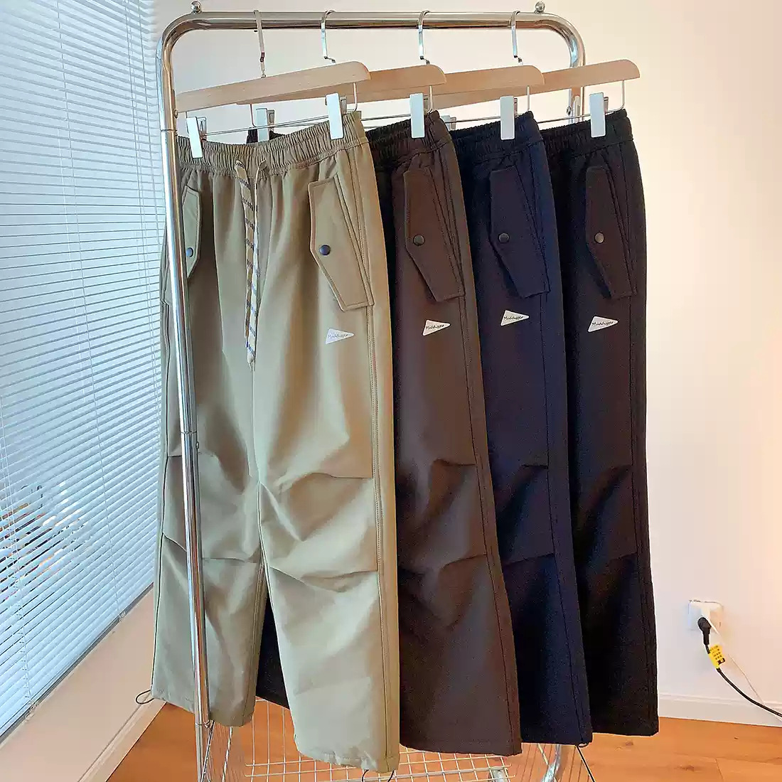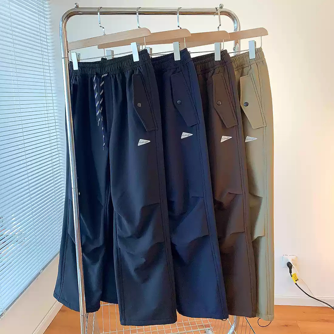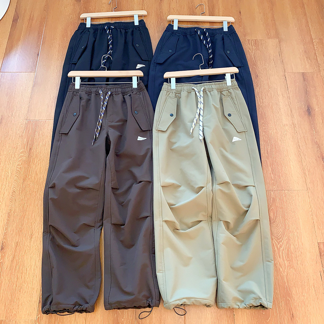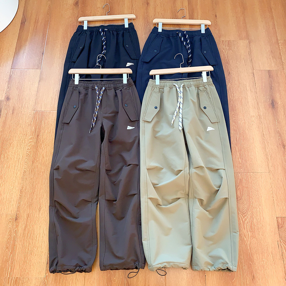 봄 2025 새로운 미국 복고풍 낙하산 바지 남자와 여자의 유행 직선 충전 코일 바지스토어 가기