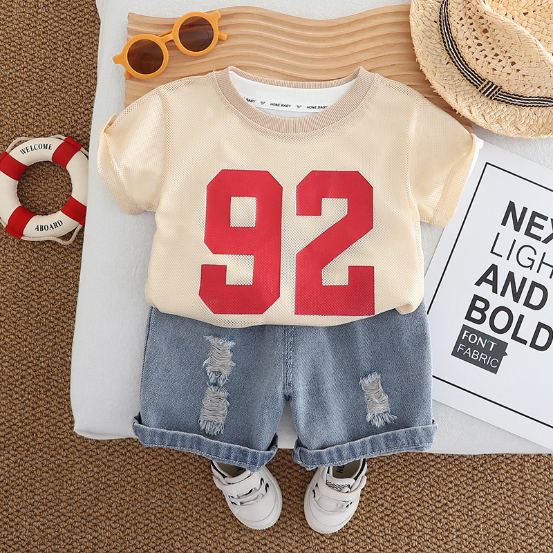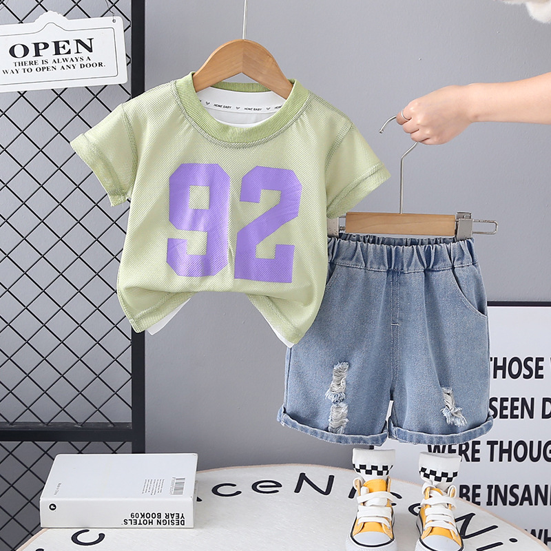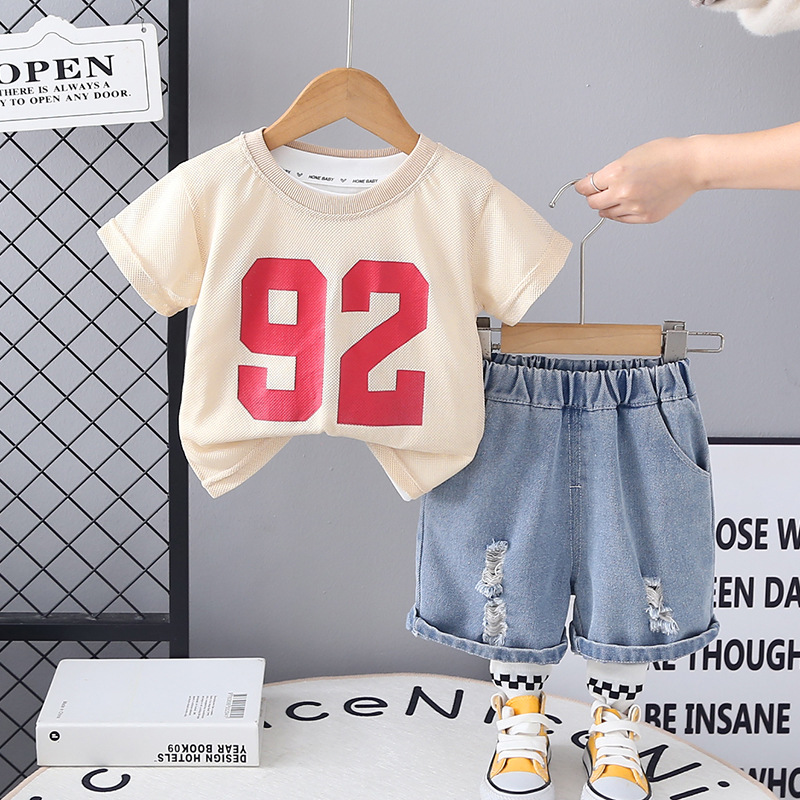 2025 여름 새 반팔 어린이 세트 편지 소년 중소 어린이 3 피스 아동반바지 옷 여름 옷