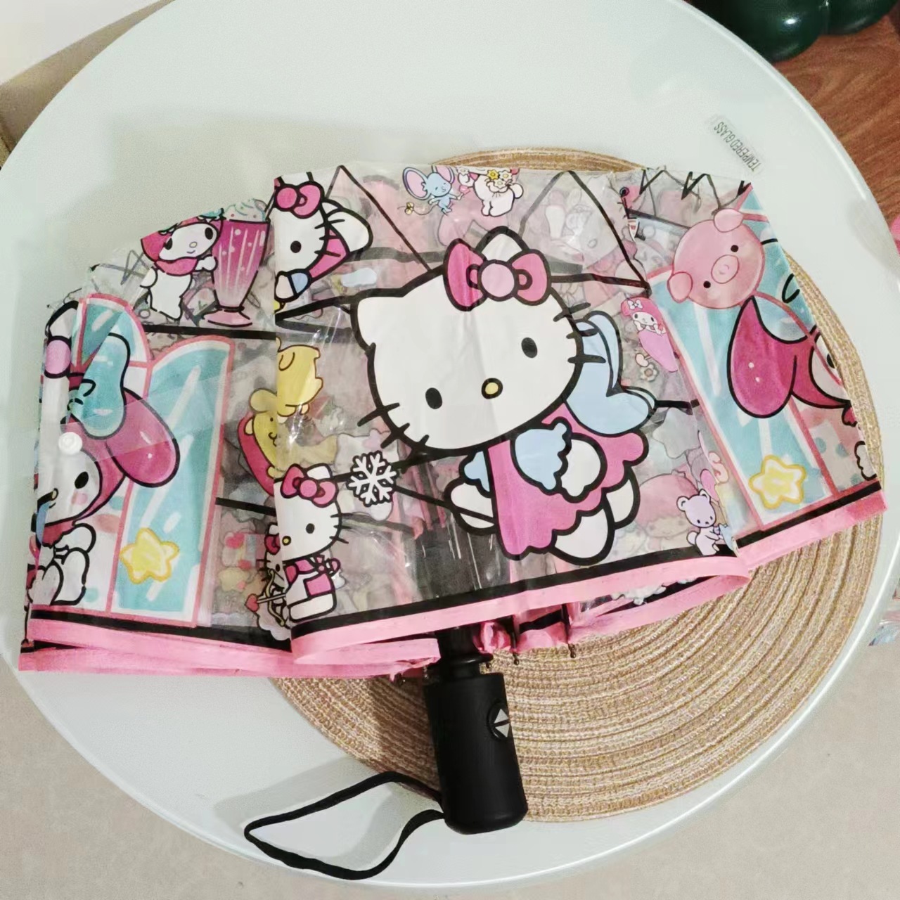 투명 우산 스티치 자동 애니메이션 수동 여성 인플루언서 접이식 귀여운 고급스러운 어린이 만화 학생용스토어 가기