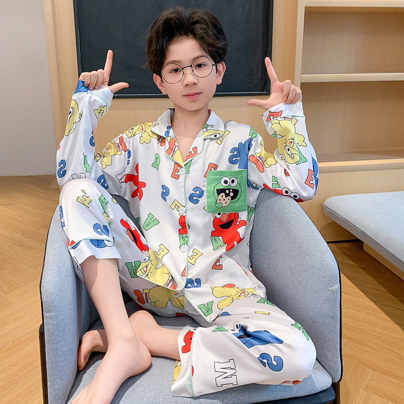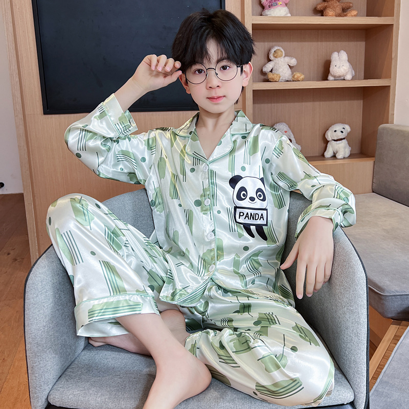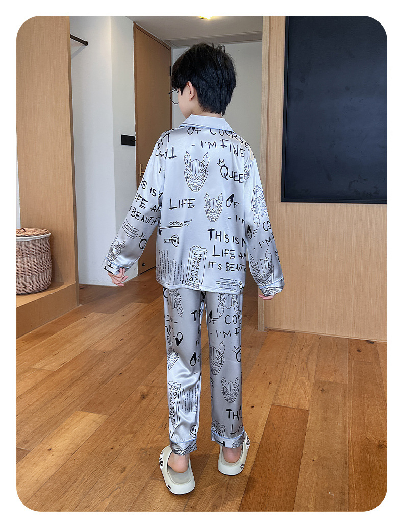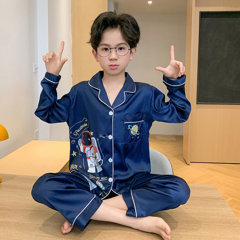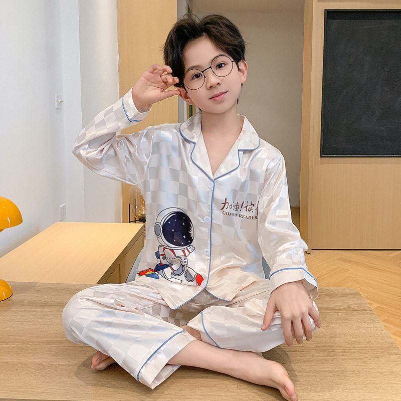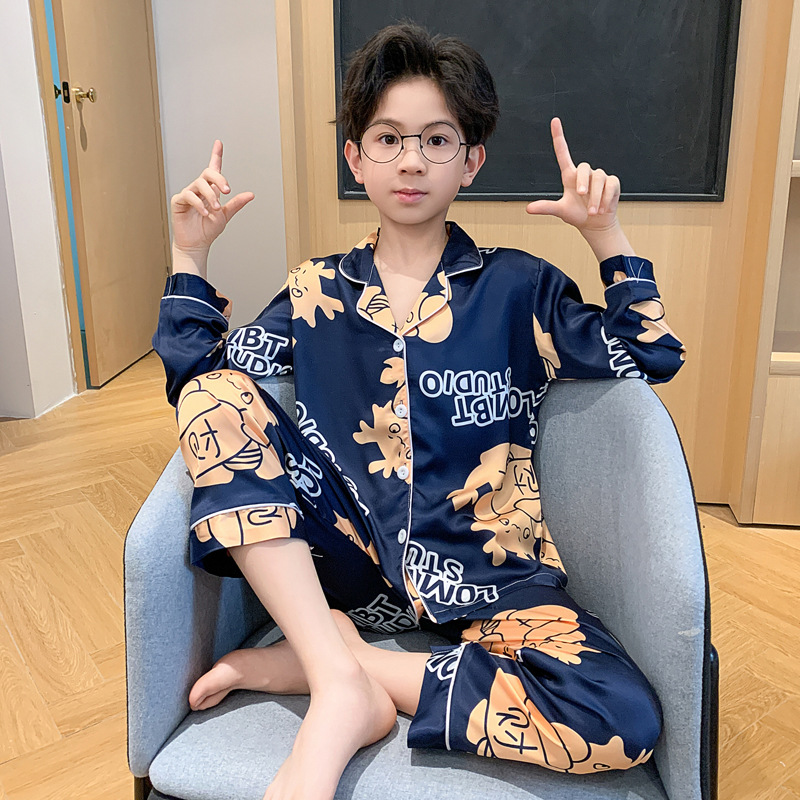 소년 잠옷 봄과 가을 얼음 실크 얇은 긴 소매 어린이 소년 10 대 중학생 여름 홈 옷 세트