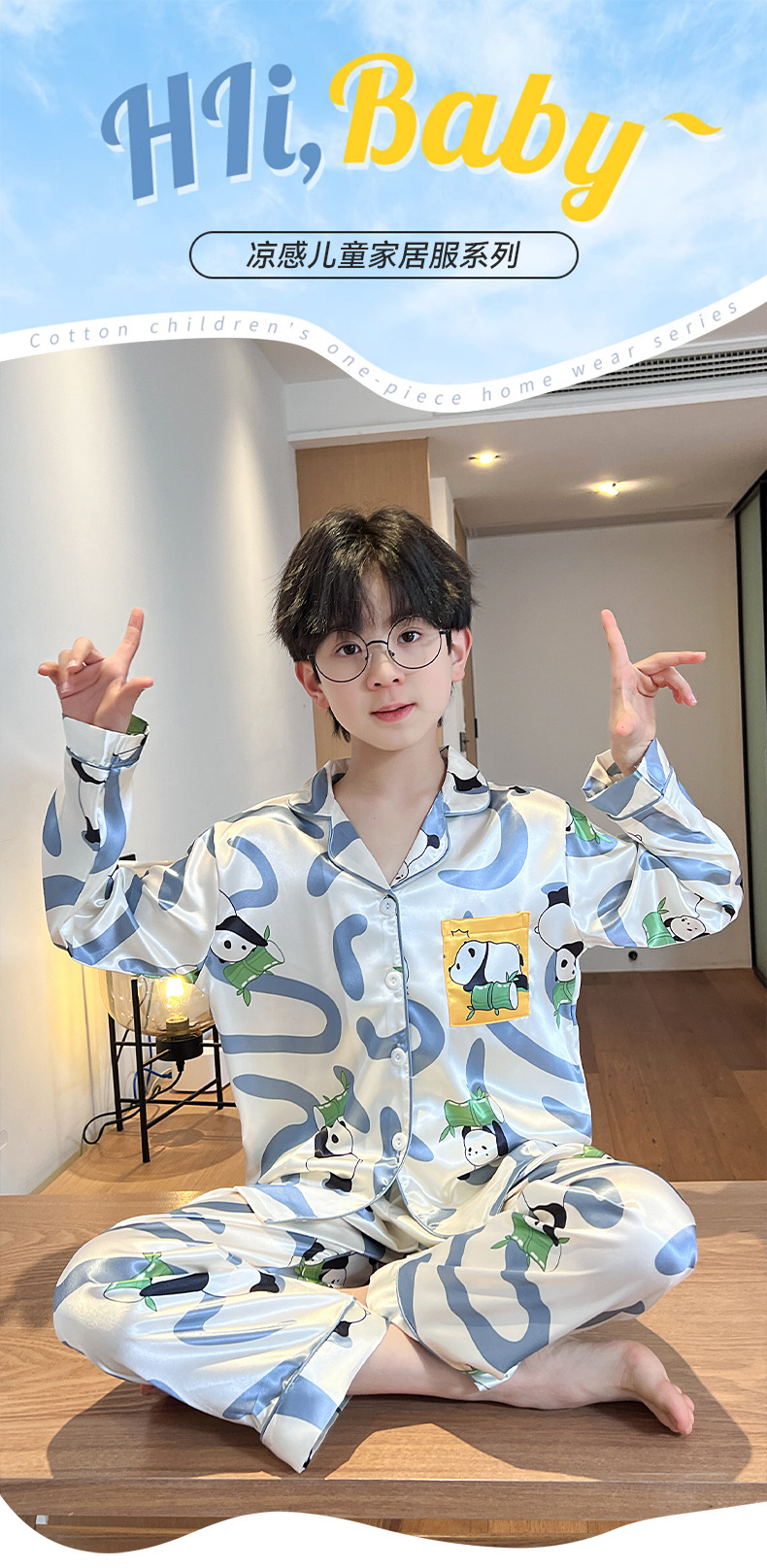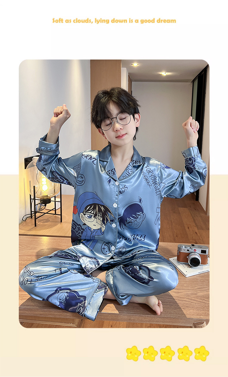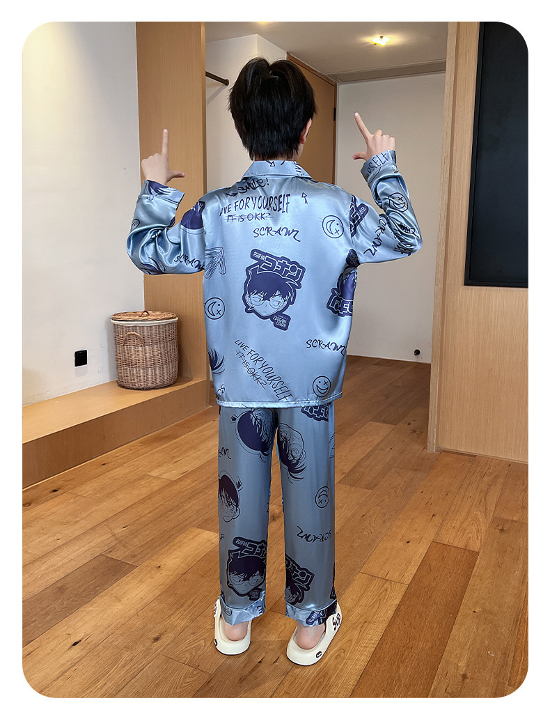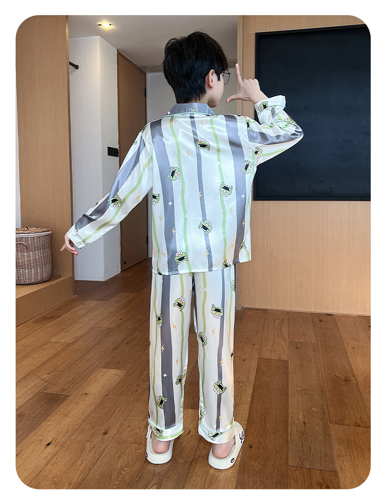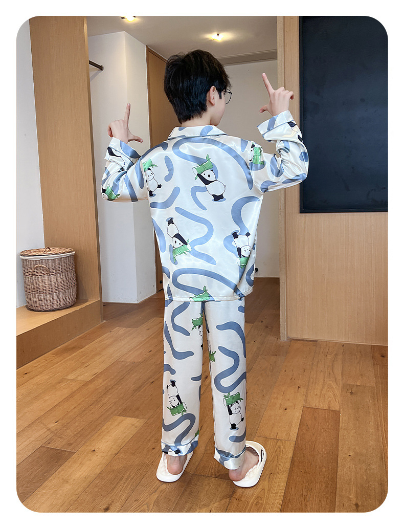 소년 잠옷 봄과 가을 얼음 실크 얇은 긴 소매 어린이 소년 10 대 중학생 여름 홈 옷 세트
