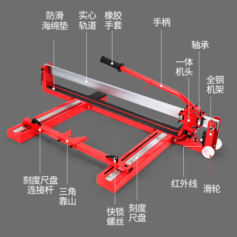 수동 타일 절단 기계 푸셔 액세서리 Daquan 모노레일 스퀘어 튜브 후원자 스테인레스 스틸 통치자 손잡이 고무 면화 패드