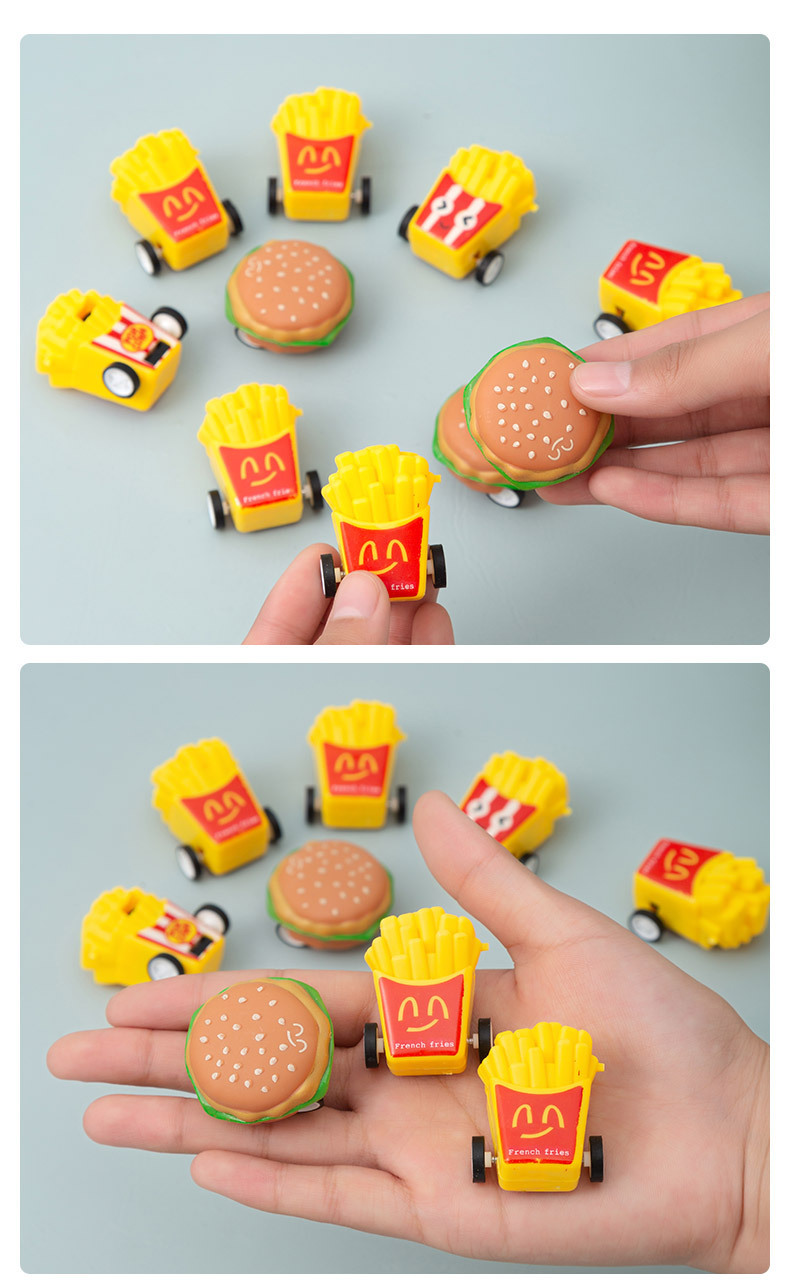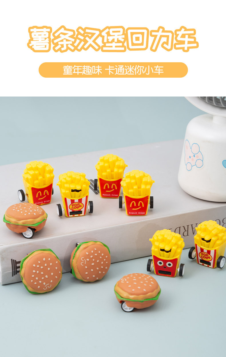 어린이의 재미있는 버거와 감자 튀김 풀백 자동차 작은 장난감 유치원 어린이 날 상품 귀여운 음식 장난감 관성 자동차
