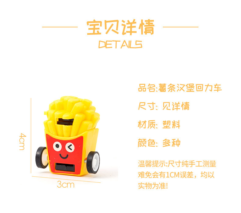 어린이의 재미있는 버거와 감자 튀김 풀백 자동차 작은 장난감 유치원 어린이 날 상품 귀여운 음식 장난감 관성 자동차스토어 가기