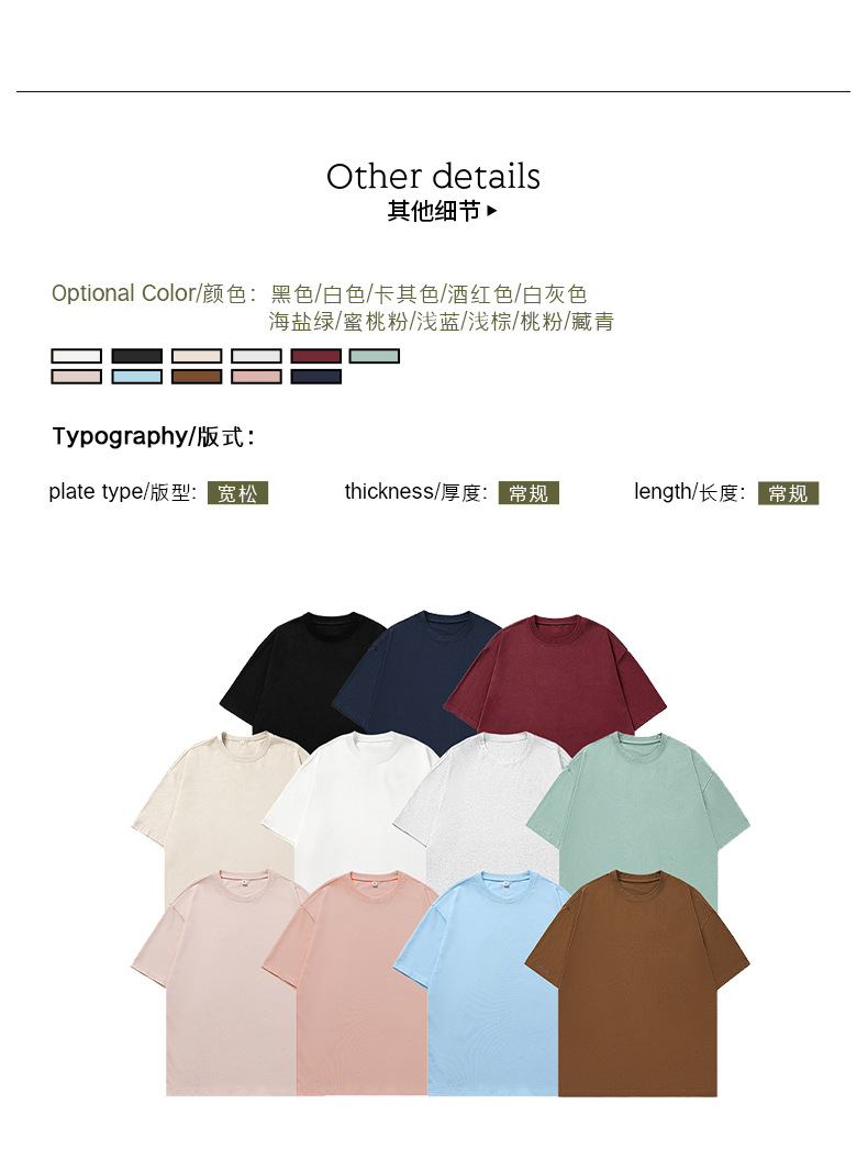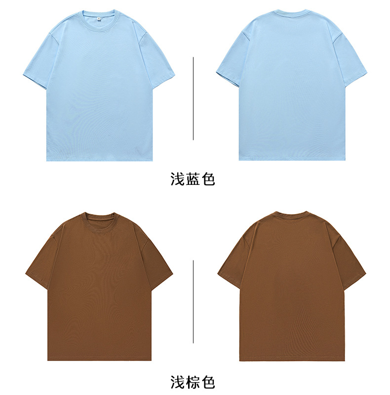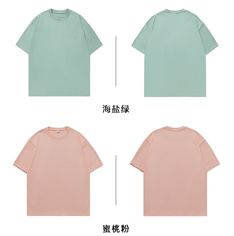 230g 기본 단색 짧은 소매 티셔츠 남성과 여성의 여름 커플 느슨한면 크루 넥 티셔츠 2 개스토어 가기