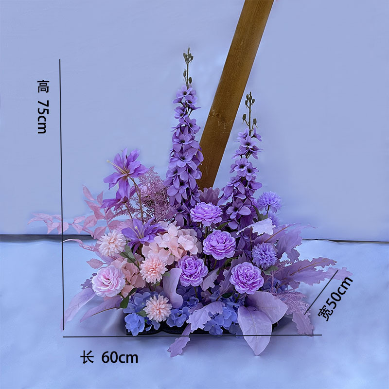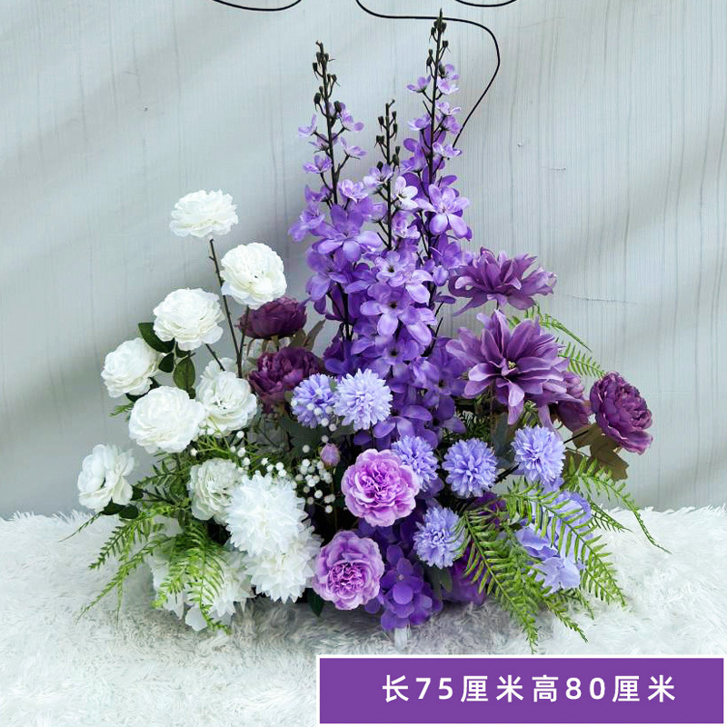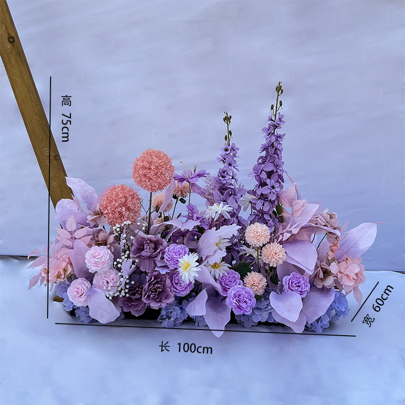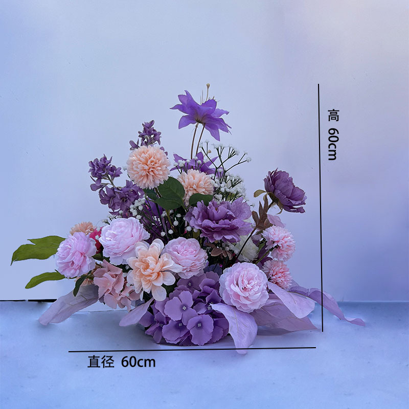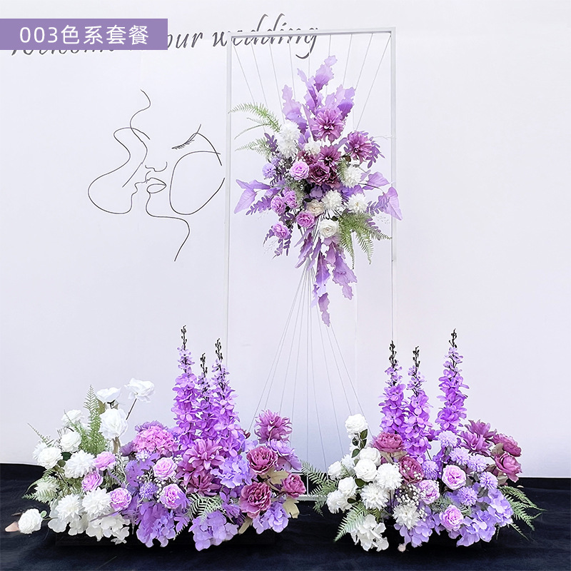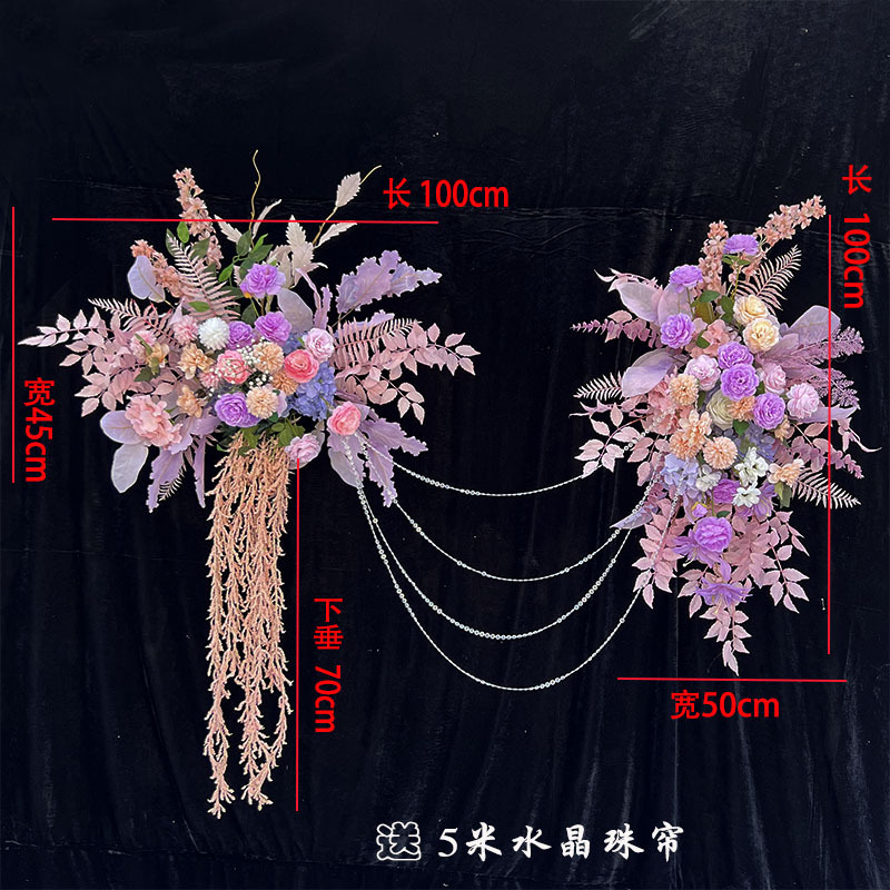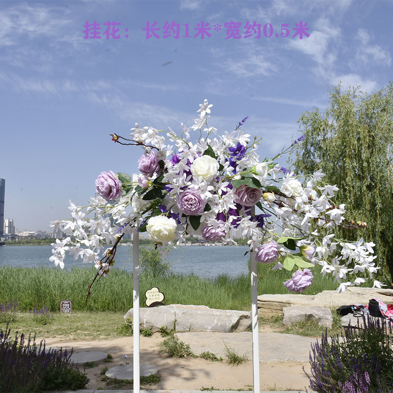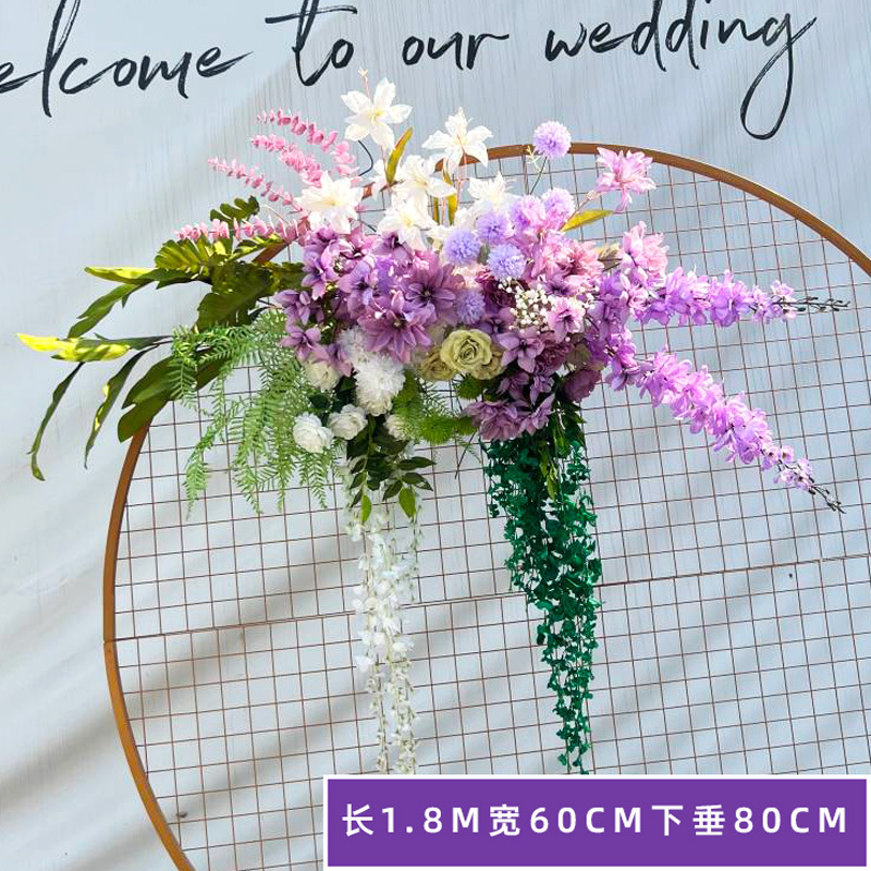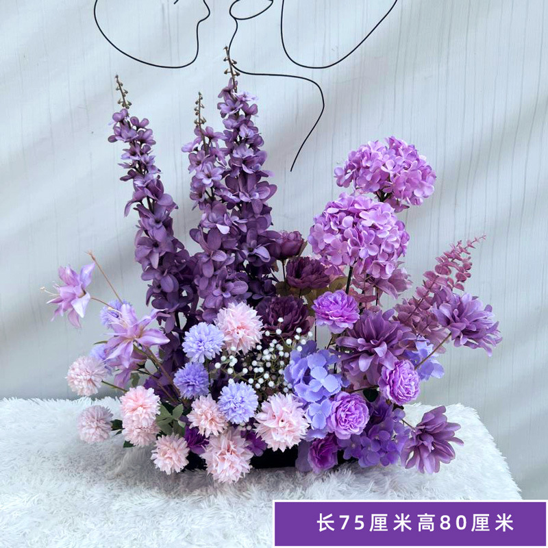 특별한 결혼식 시뮬레이션 꽃 보라색 꽃 배열 모리 식물 양식 소품 결혼식 배경 매달려 꽃 배열 도로 꽃 가짜스토어 가기