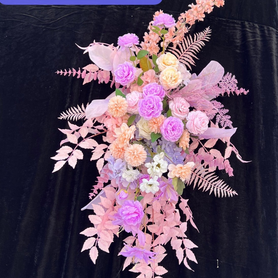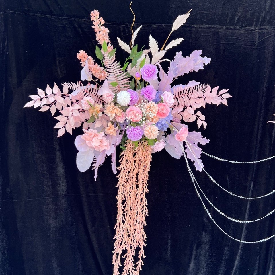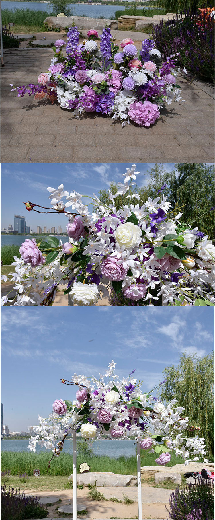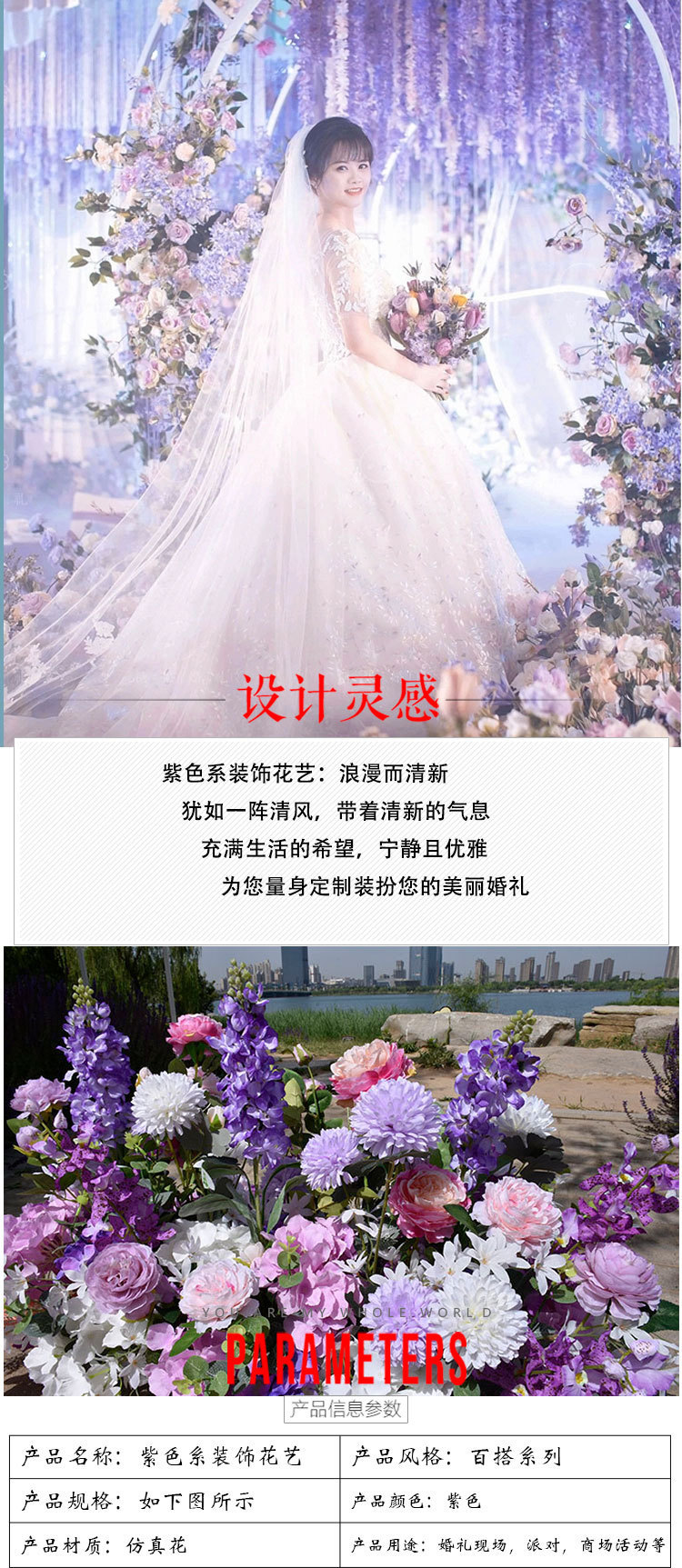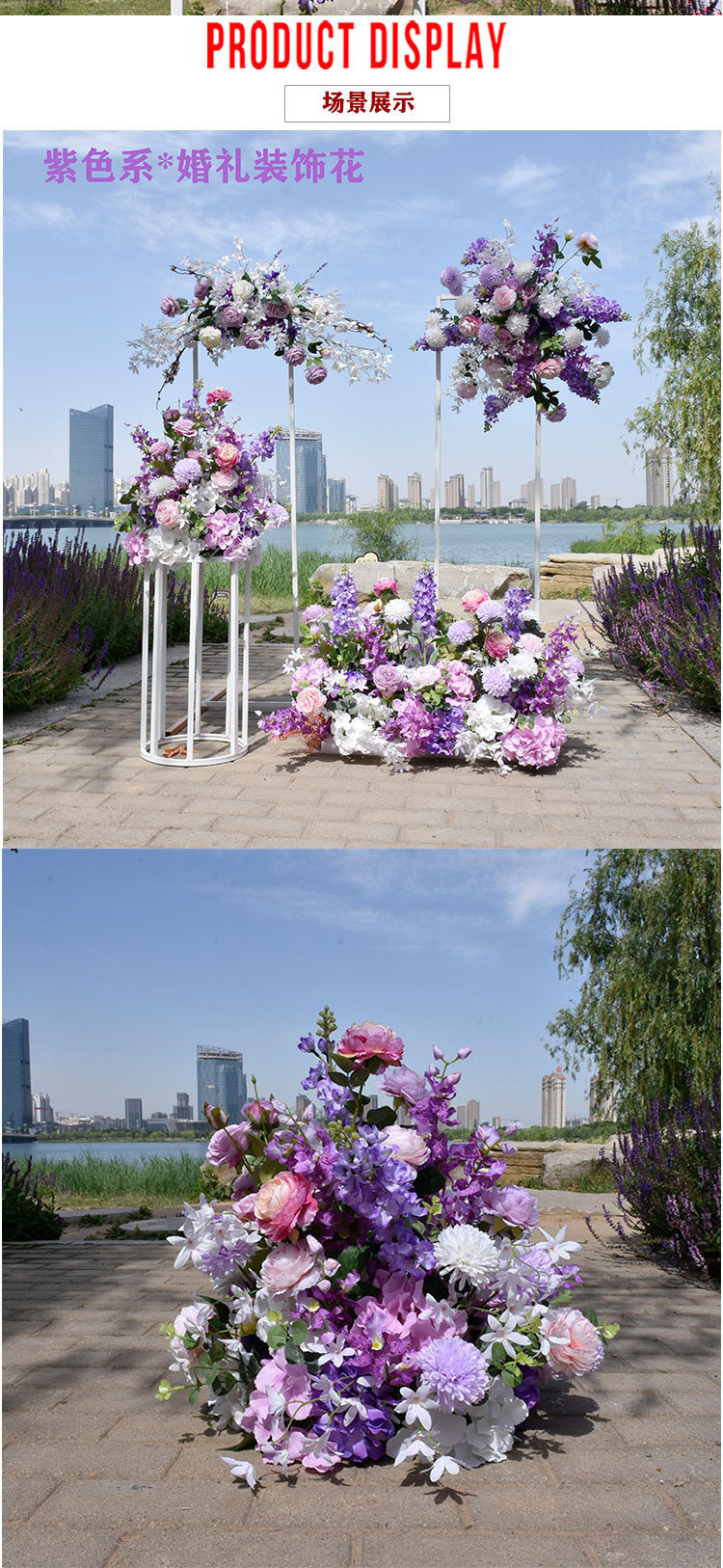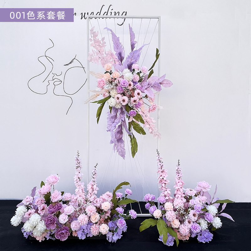 특별한 결혼식 시뮬레이션 꽃 보라색 꽃 배열 모리 식물 양식 소품 결혼식 배경 매달려 꽃 배열 도로 꽃 가짜스토어 가기