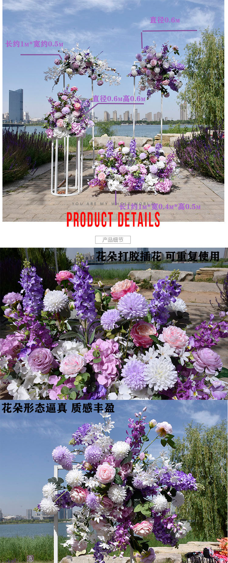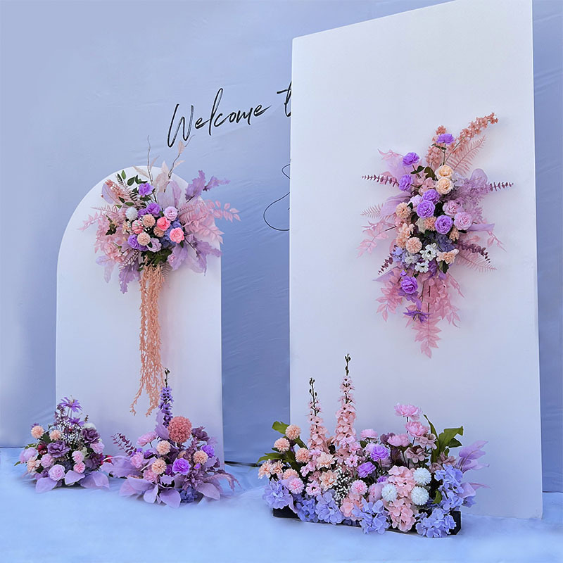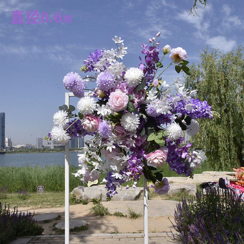 특별한 결혼식 시뮬레이션 꽃 보라색 꽃 배열 모리 식물 양식 소품 결혼식 배경 매달려 꽃 배열 도로 꽃 가짜