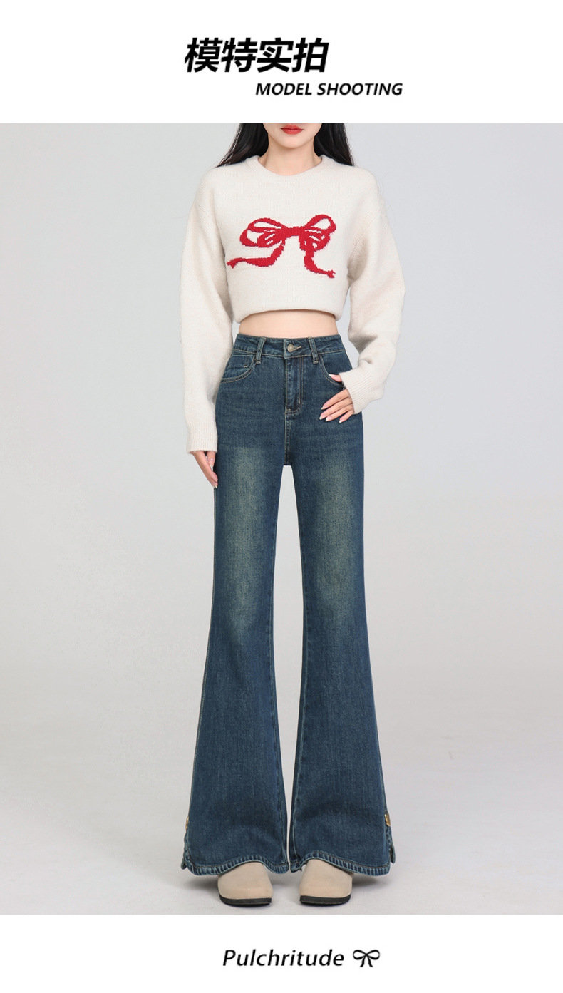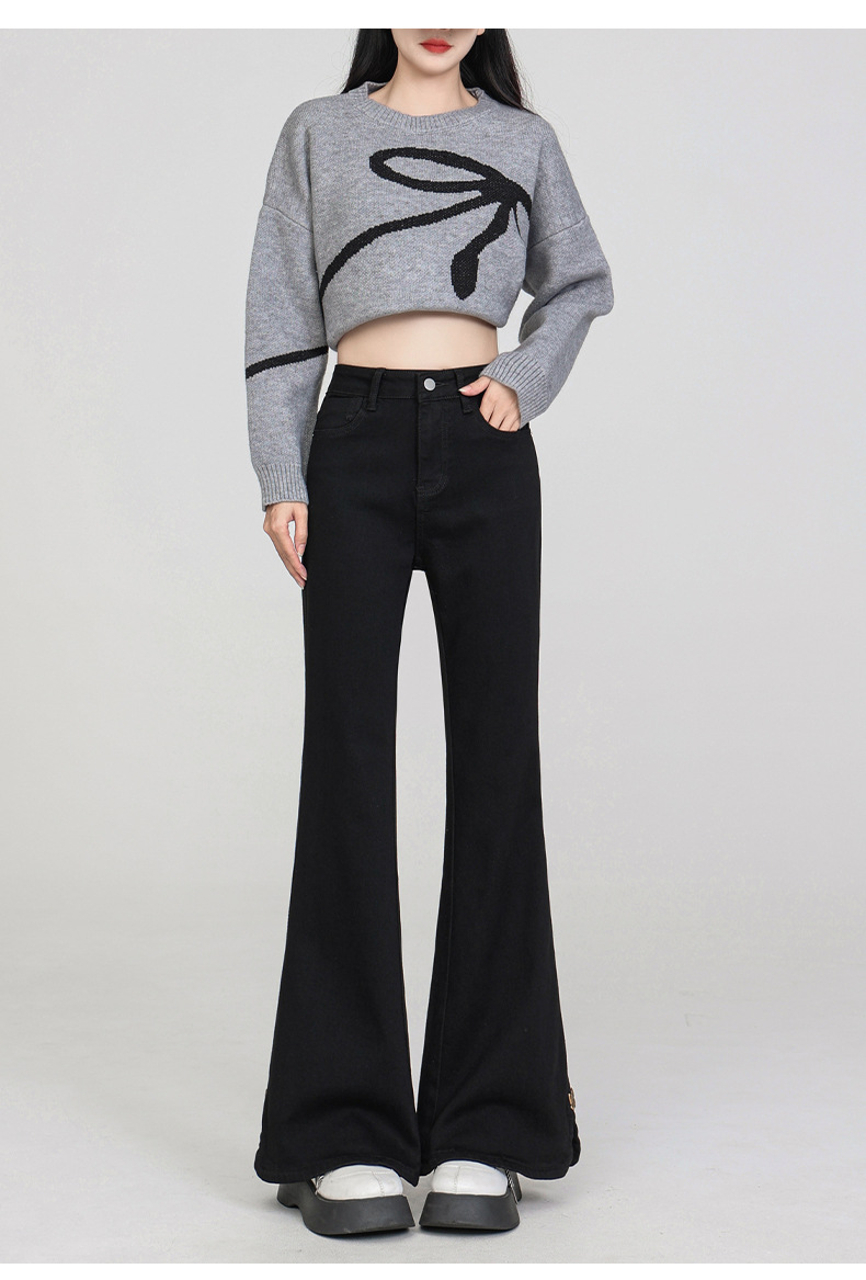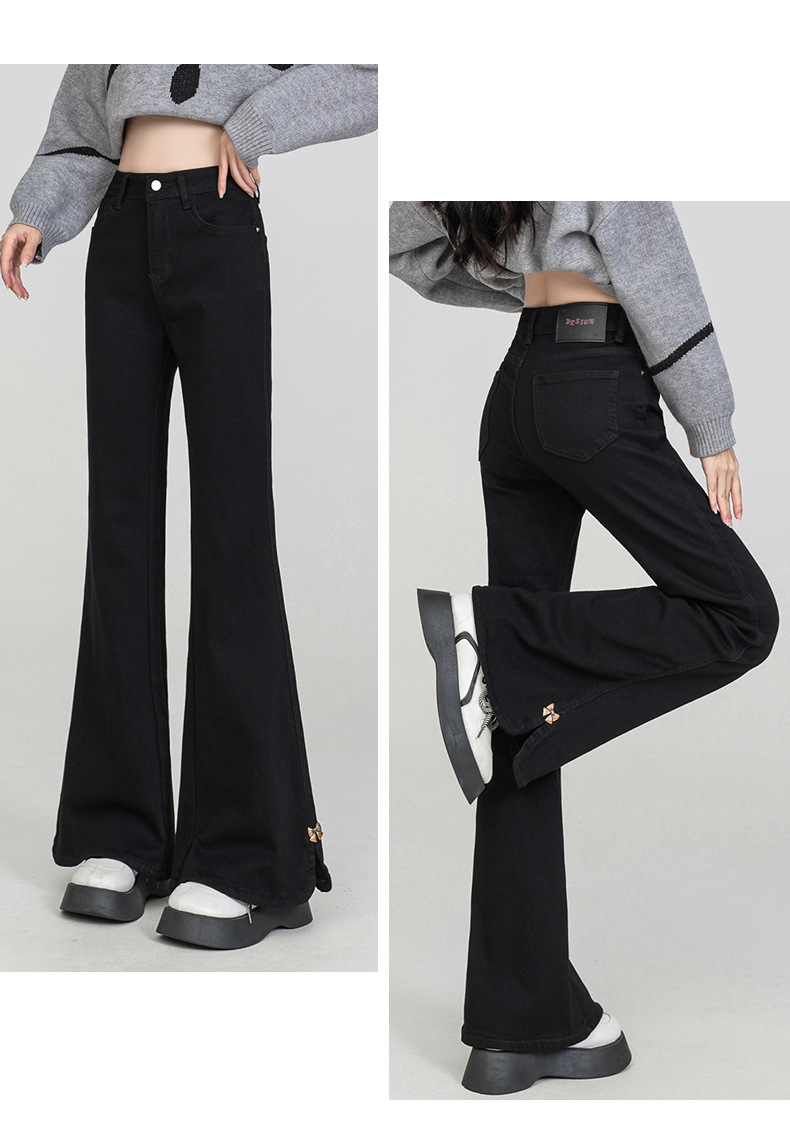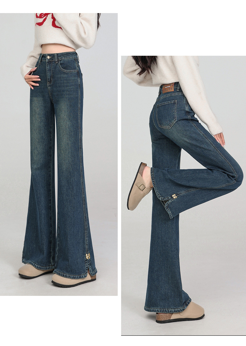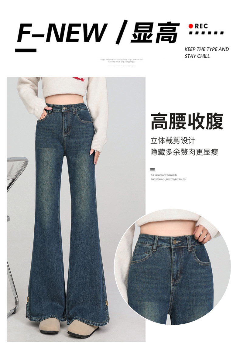 플러스 사이즈 여성용 100kg년형 기모 안감 부츠컷 청바지, 하이웨이스트, 슬림핏, 신축성, 슬릿 디자인, 특대 사이즈, 두꺼운 청바지스토어 가기