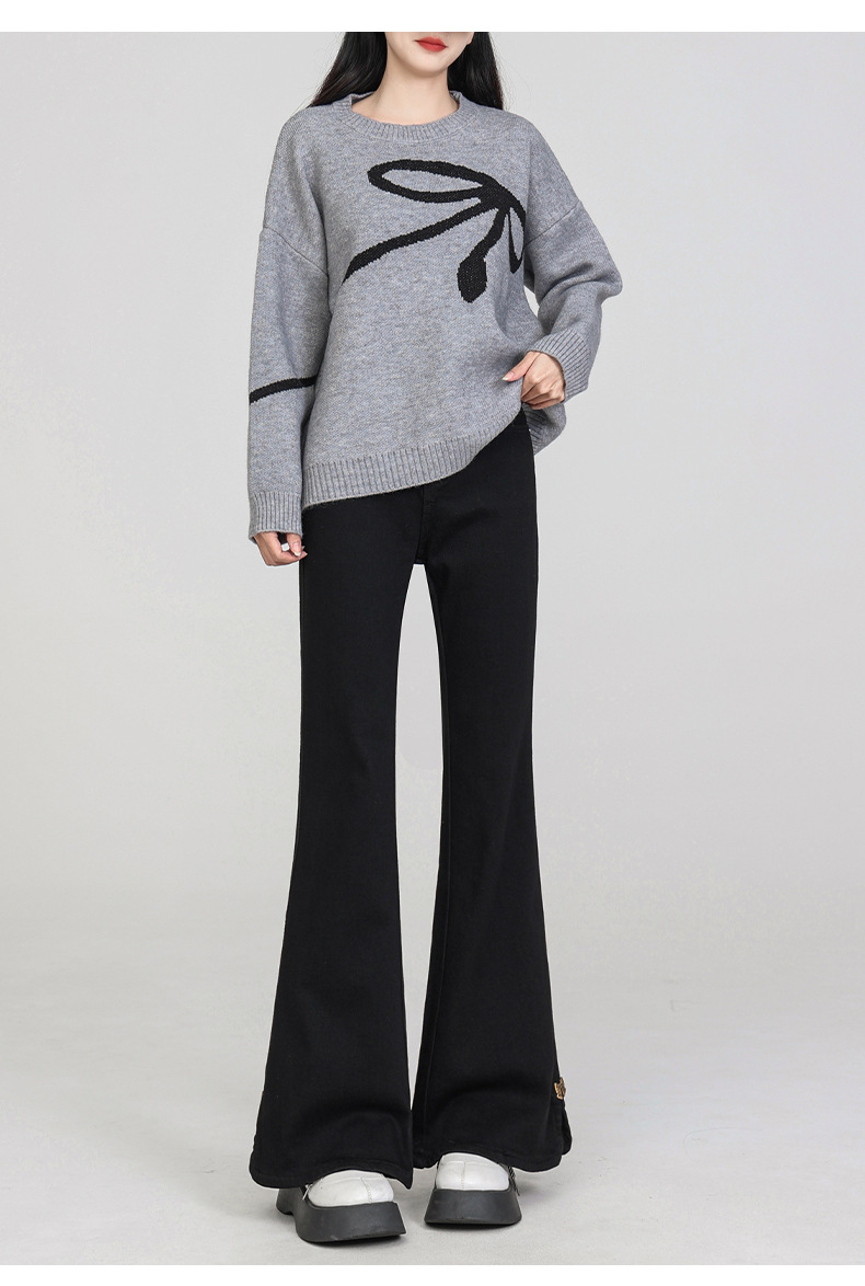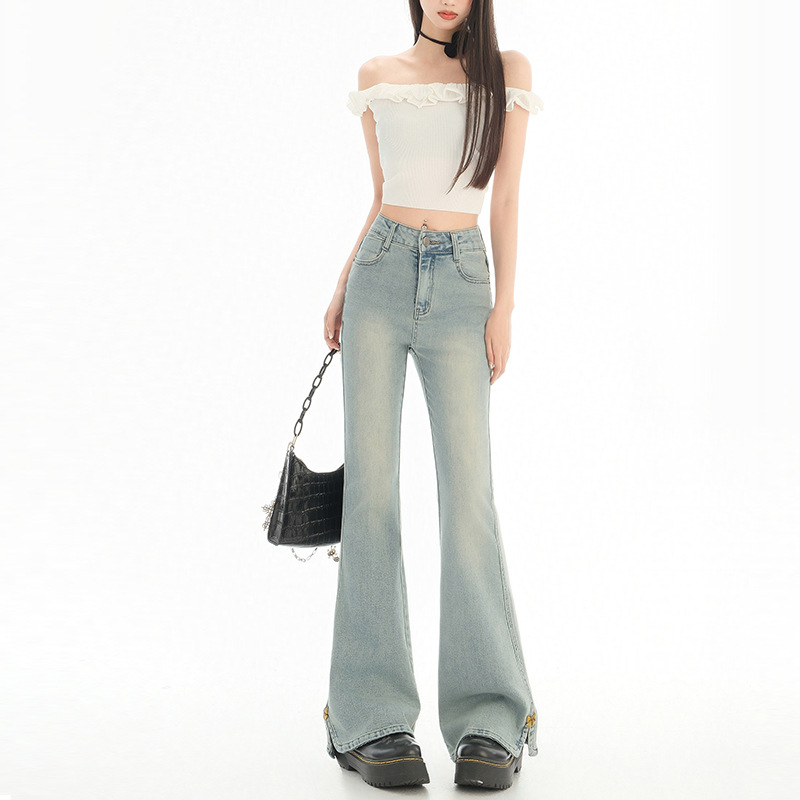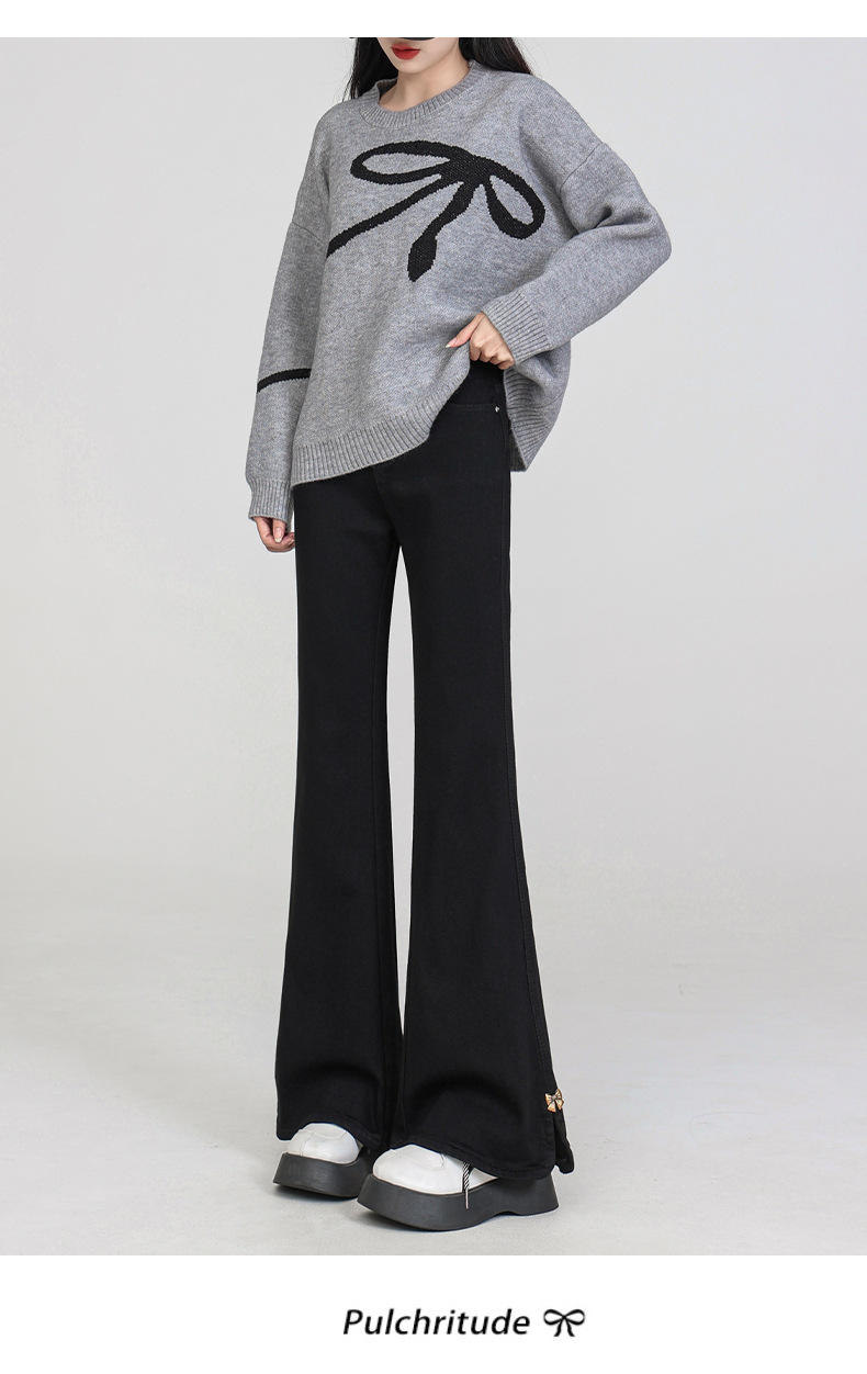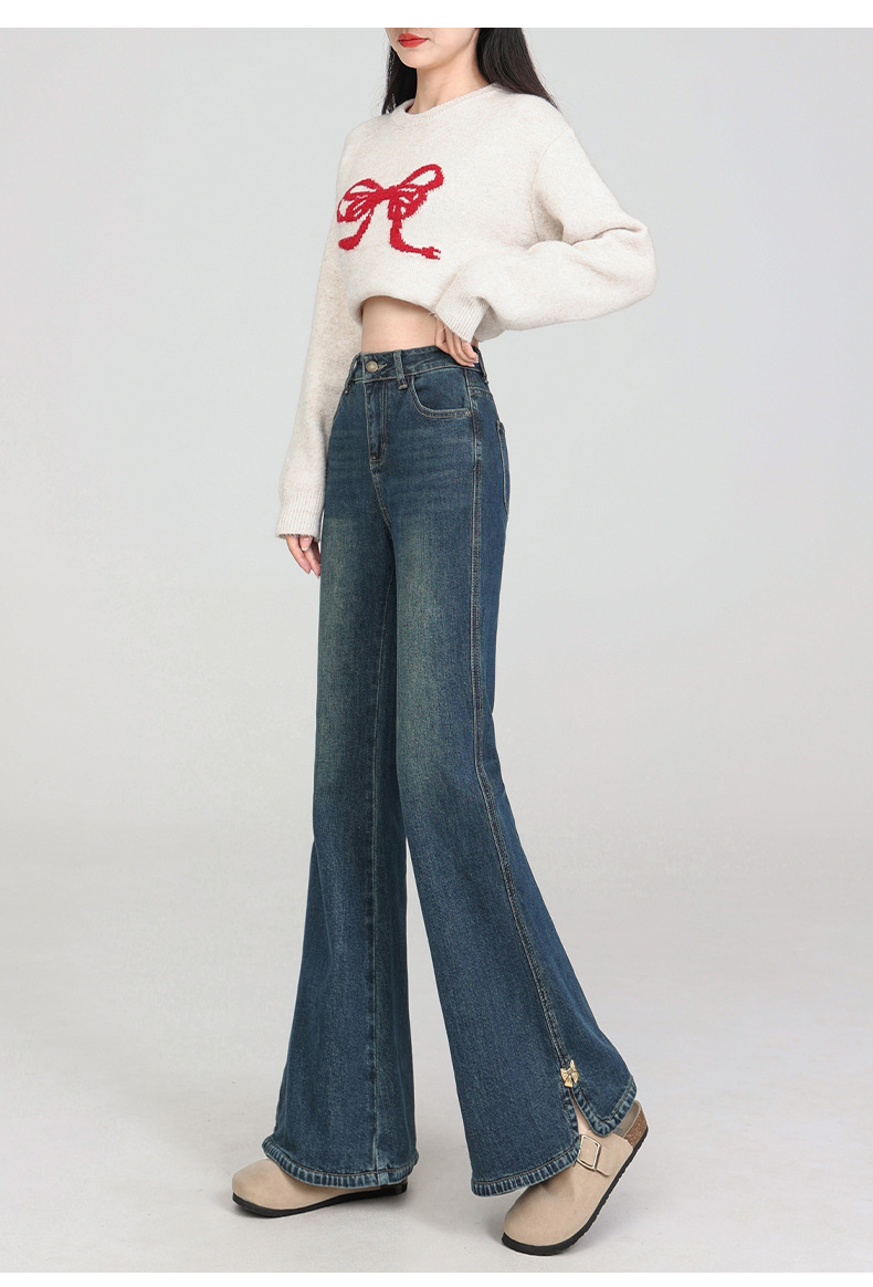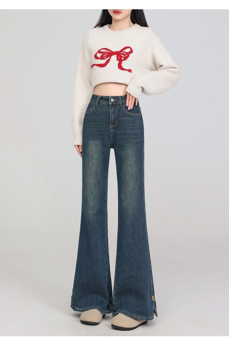 플러스 사이즈 여성용 100kg년형 기모 안감 부츠컷 청바지, 하이웨이스트, 슬림핏, 신축성, 슬릿 디자인, 특대 사이즈, 두꺼운 청바지스토어 가기