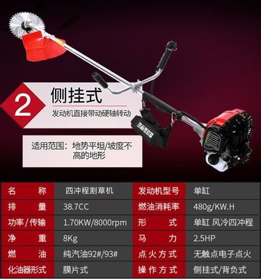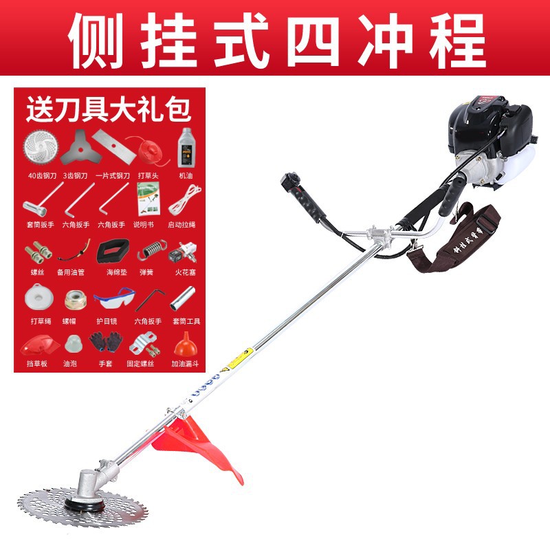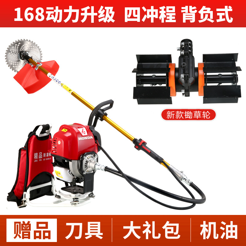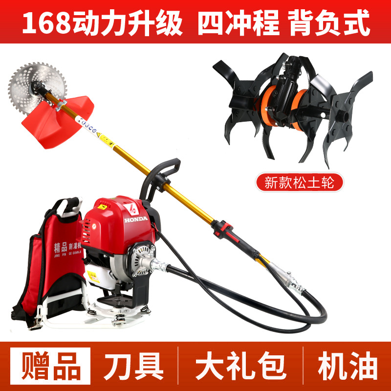 수입 잔디 깎는 기계 가솔린 엔진 배낭 작은 가정 잡초 다기능 농업 간판 소나무 토양 제초 수확스토어 가기