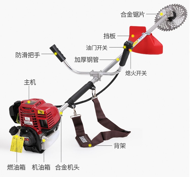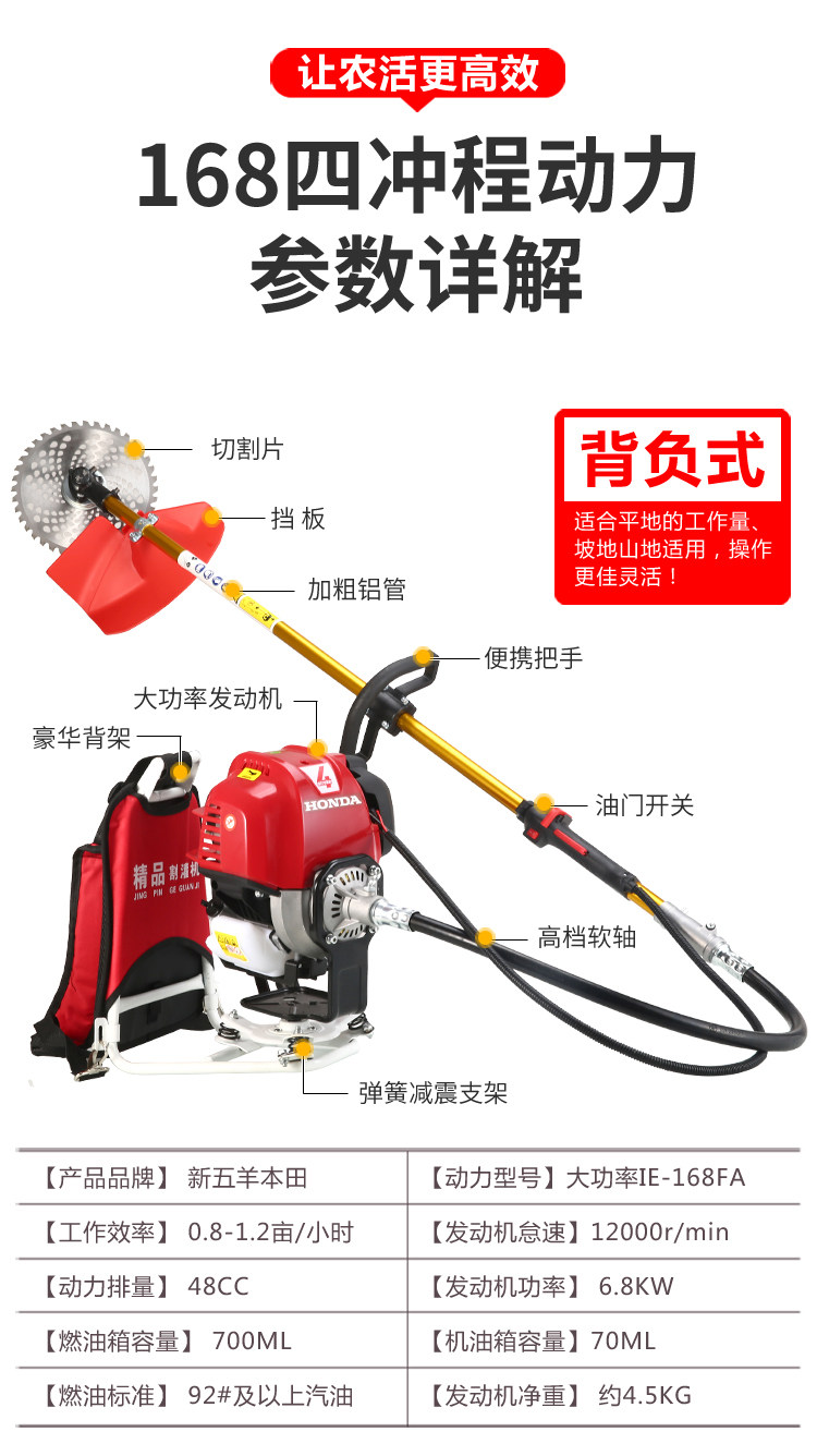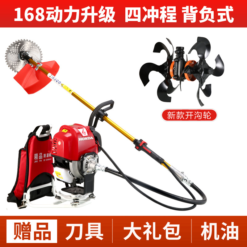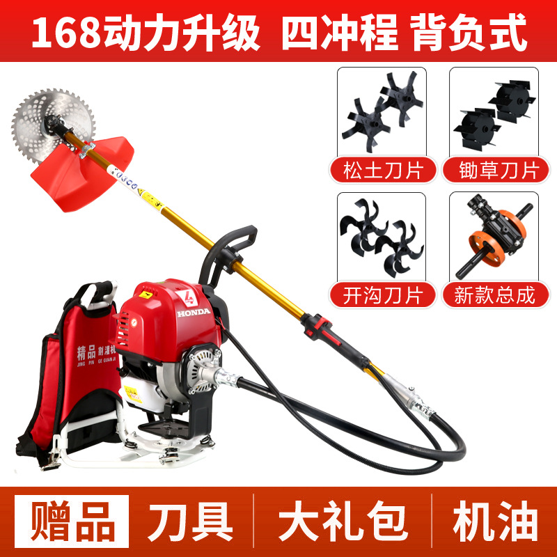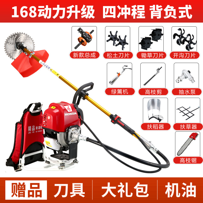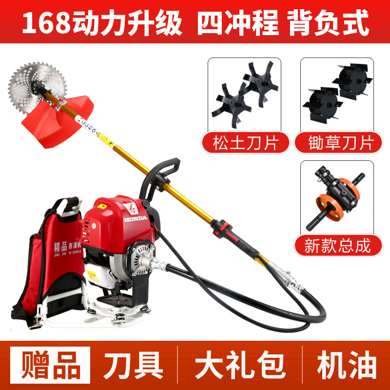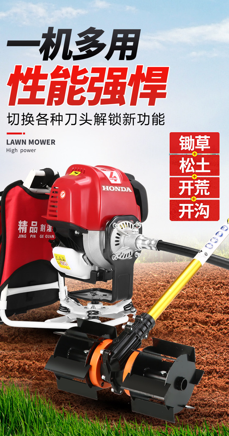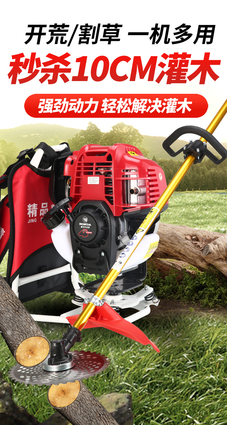 수입 잔디 깎는 기계 가솔린 엔진 배낭 작은 가정 잡초 다기능 농업 간판 소나무 토양 제초 수확