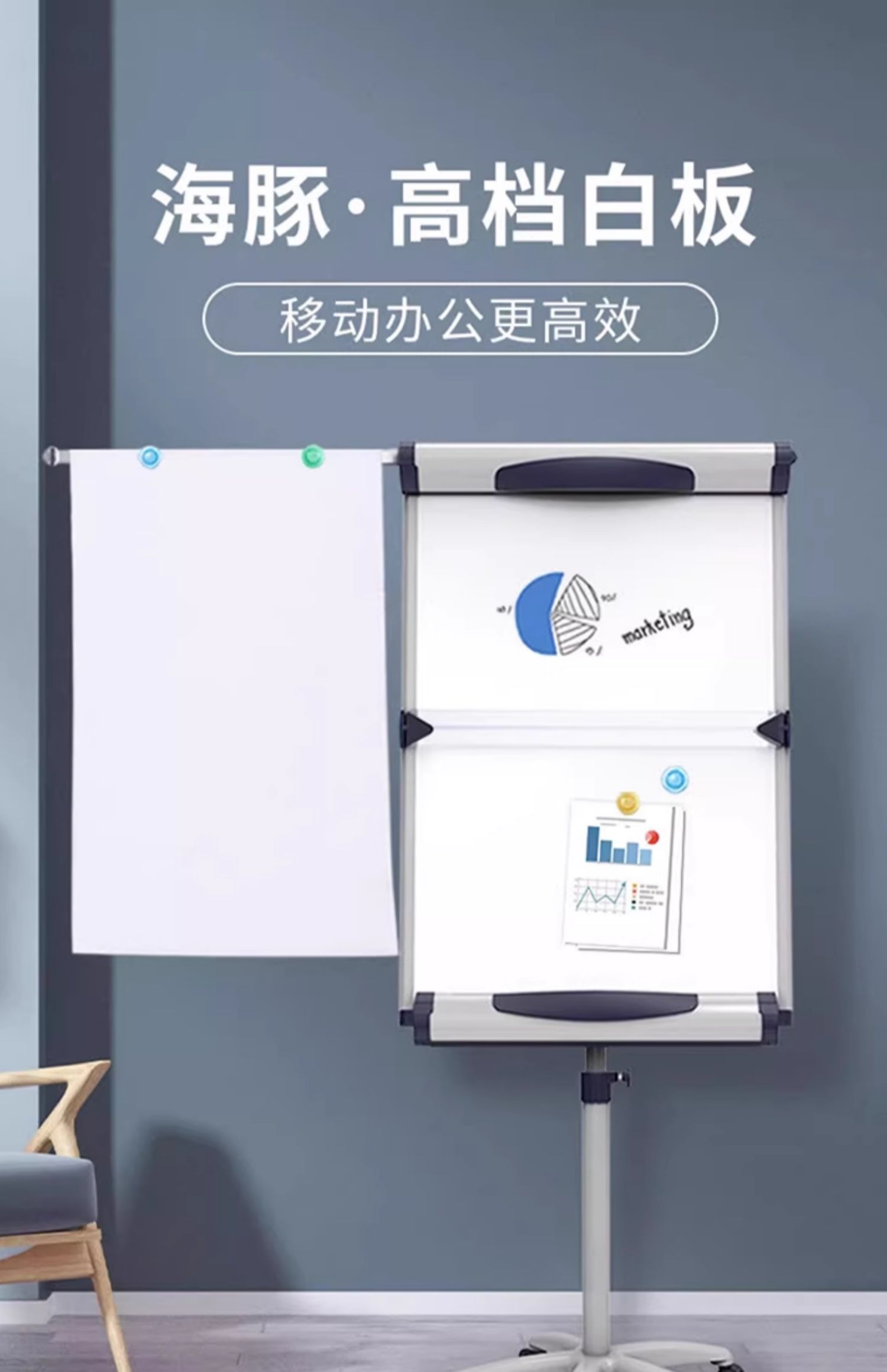 VIZ-PRO 돌고래 움직일 수 있는 화이트 보드 교수형 종이 클램프 수직 칠판 홈 쓰기 보드 자기 사무실 교육
