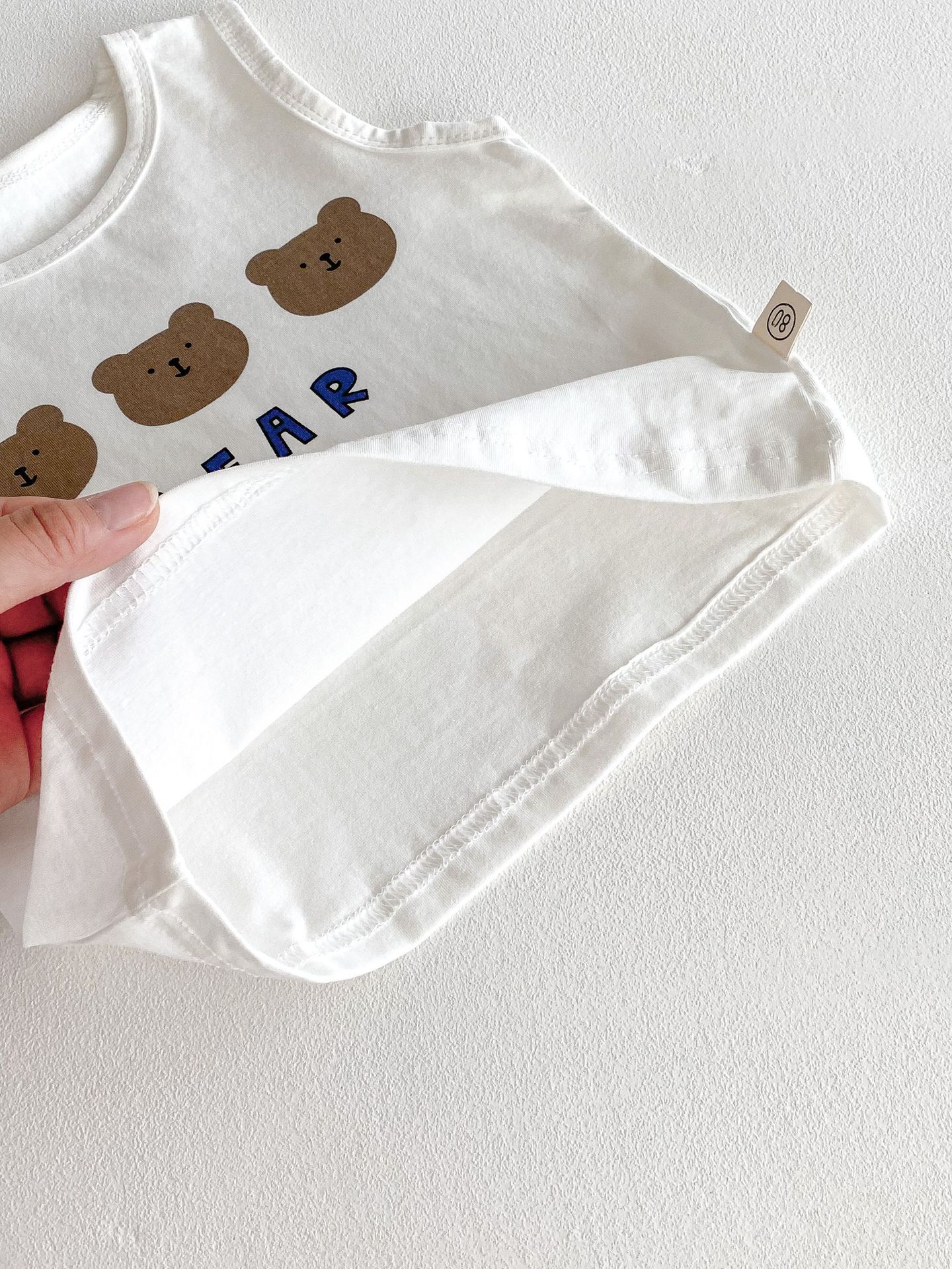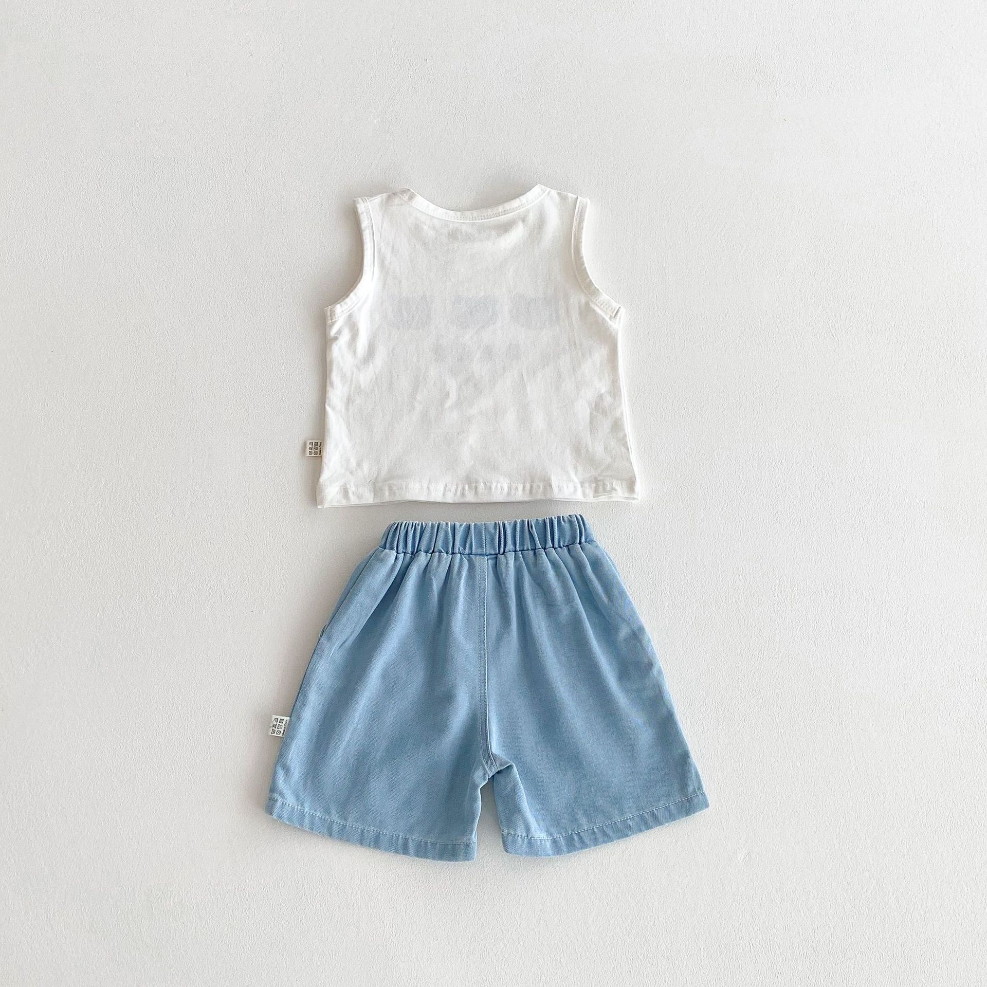 새로운 어린이 여름 조끼 최고 데님 반바지 세트 소년 아기 만화 민소매 외부는 투피스 얇은 세트