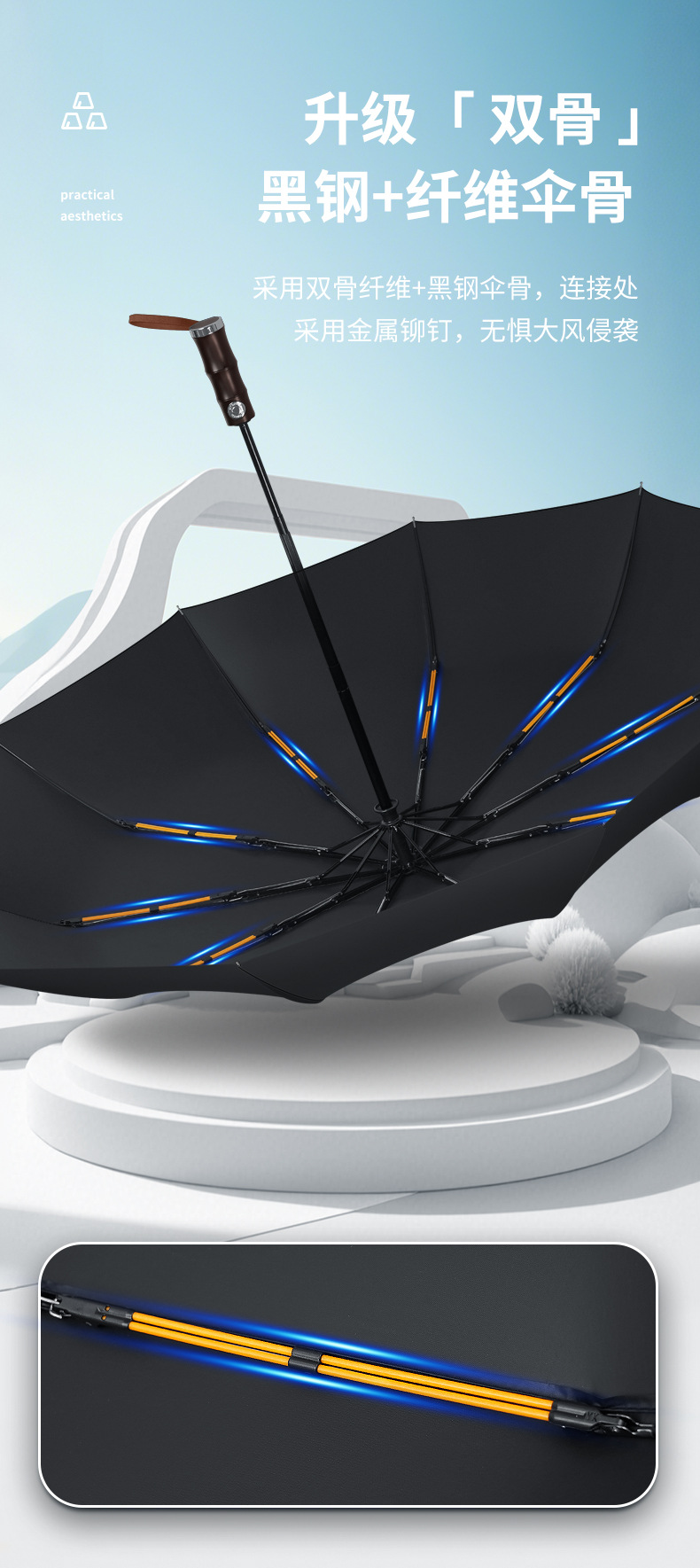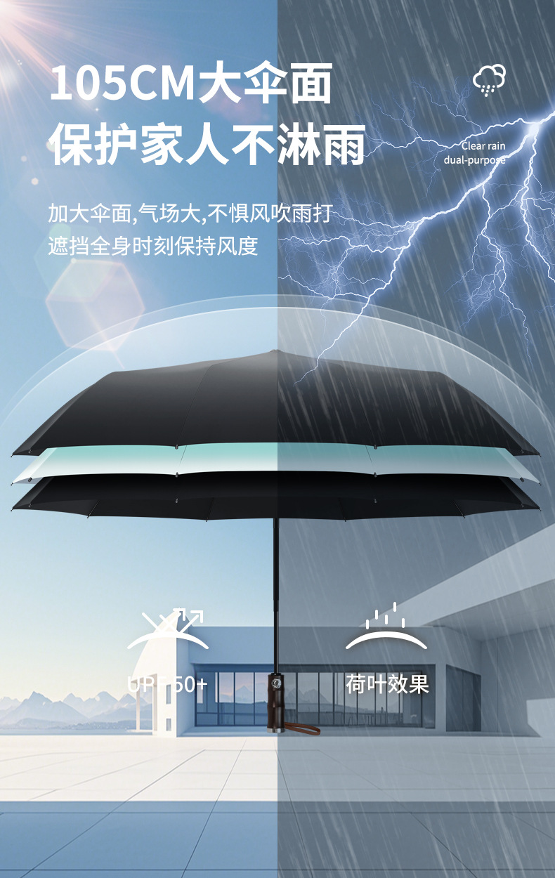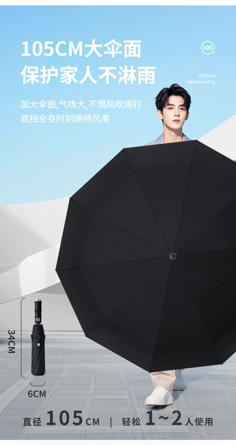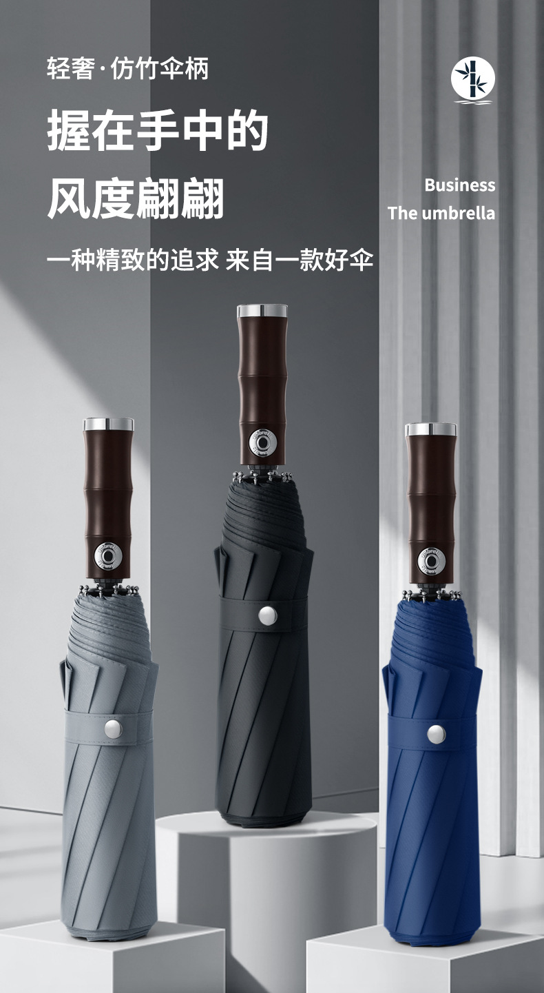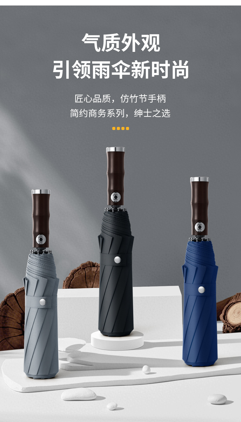 3 배 복고풍 대나무 나무 손잡이 완전 자동 우산 대형 강화 두꺼운 폭풍 우산 자외선 차단제 및 방비스토어 가기