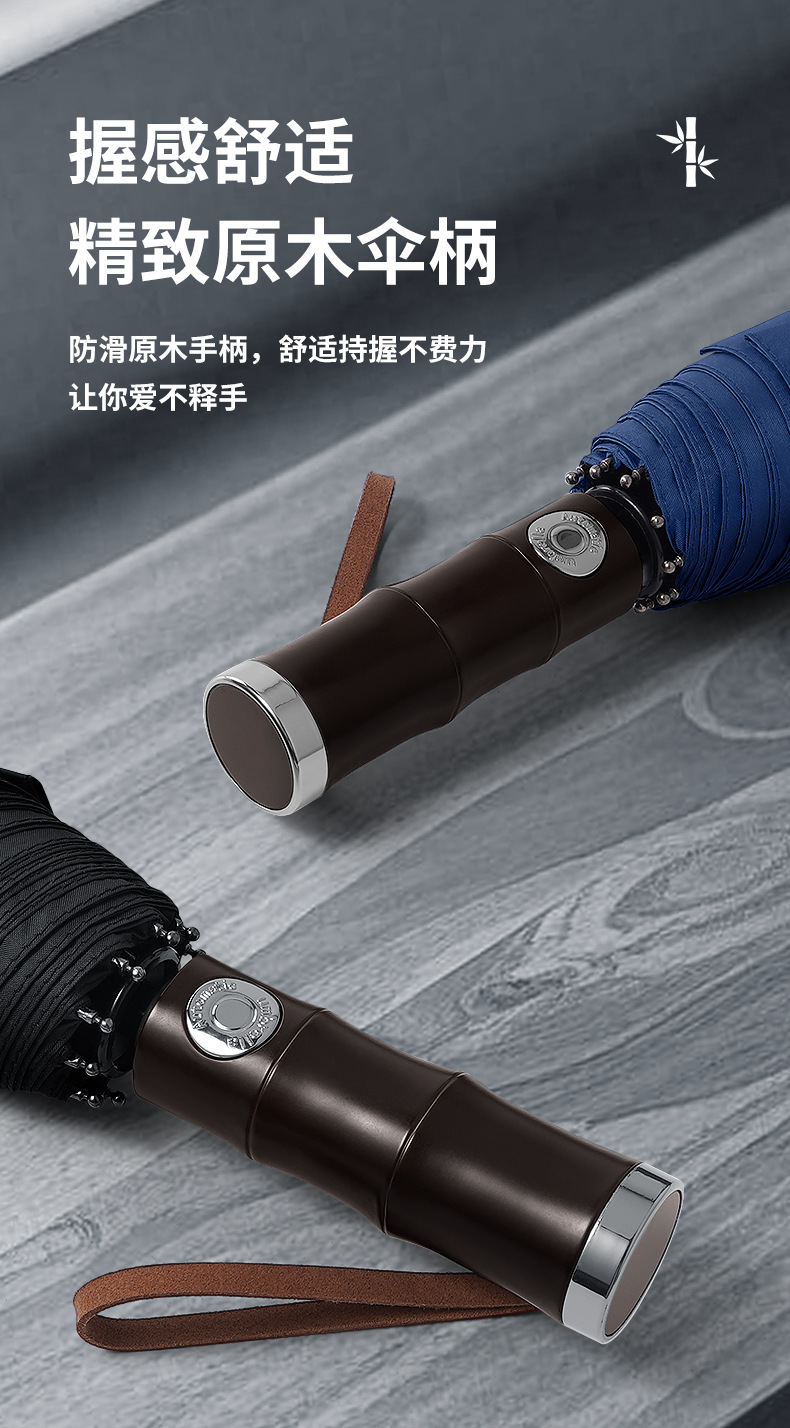 3 배 복고풍 대나무 나무 손잡이 완전 자동 우산 대형 강화 두꺼운 폭풍 우산 자외선 차단제 및 방비