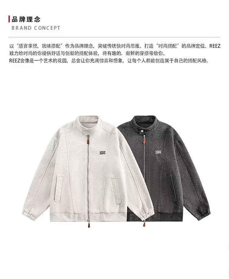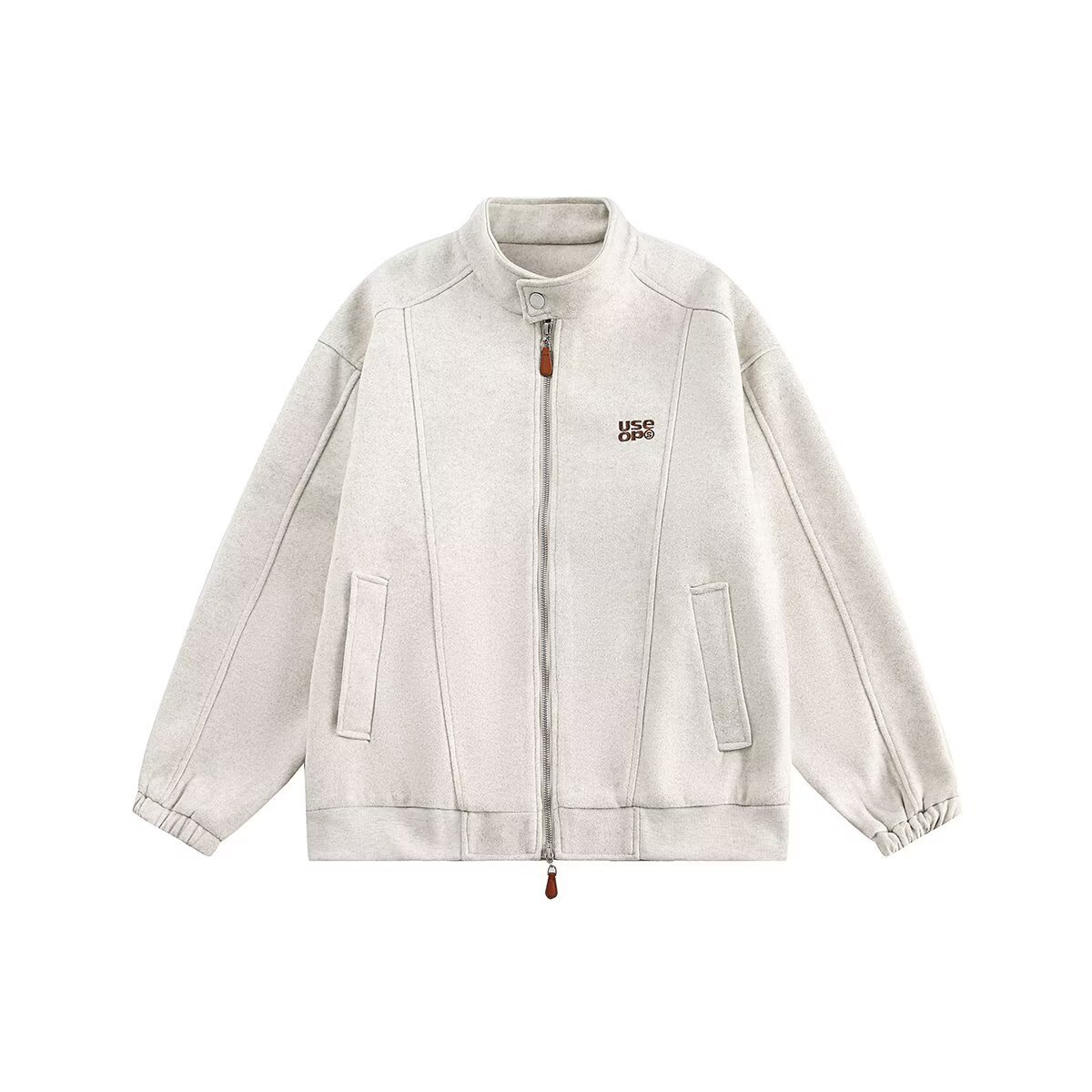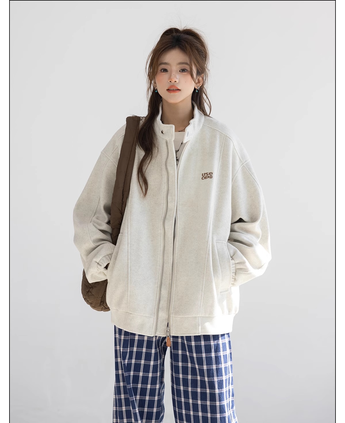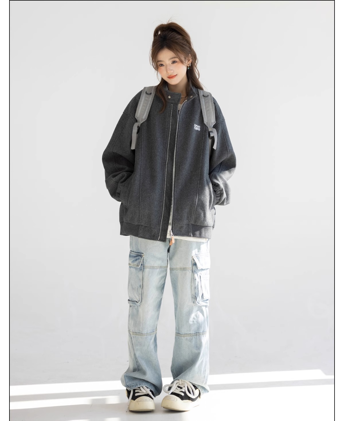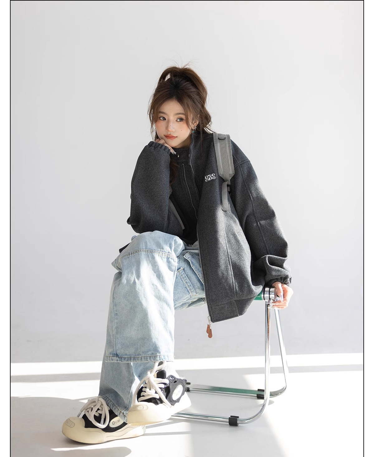 "CHANT2nd" 미국 스타일 게으른 세련된 모직 코트 여성의 봄과 가을 편지 자수 탑 스탠드 칼라 재킷스토어 가기