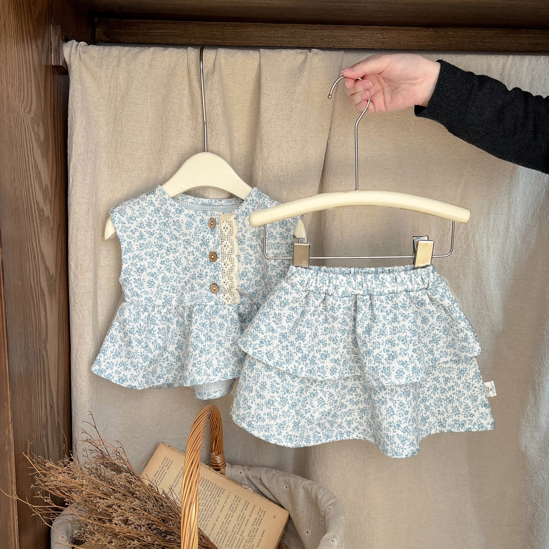 소녀의 봄과 가을 꽃 조끼 세트 2025 새로운 세련된 아기 유행 최고 치마 가을 투피스 세트스토어 가기