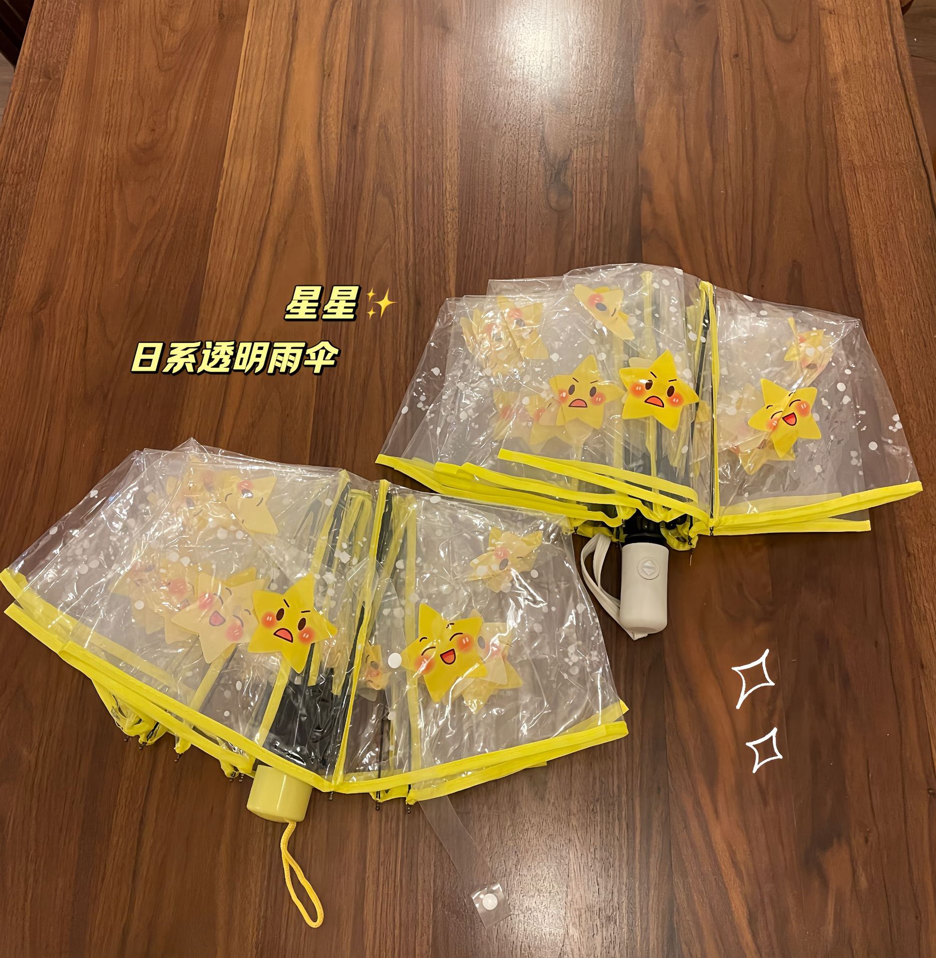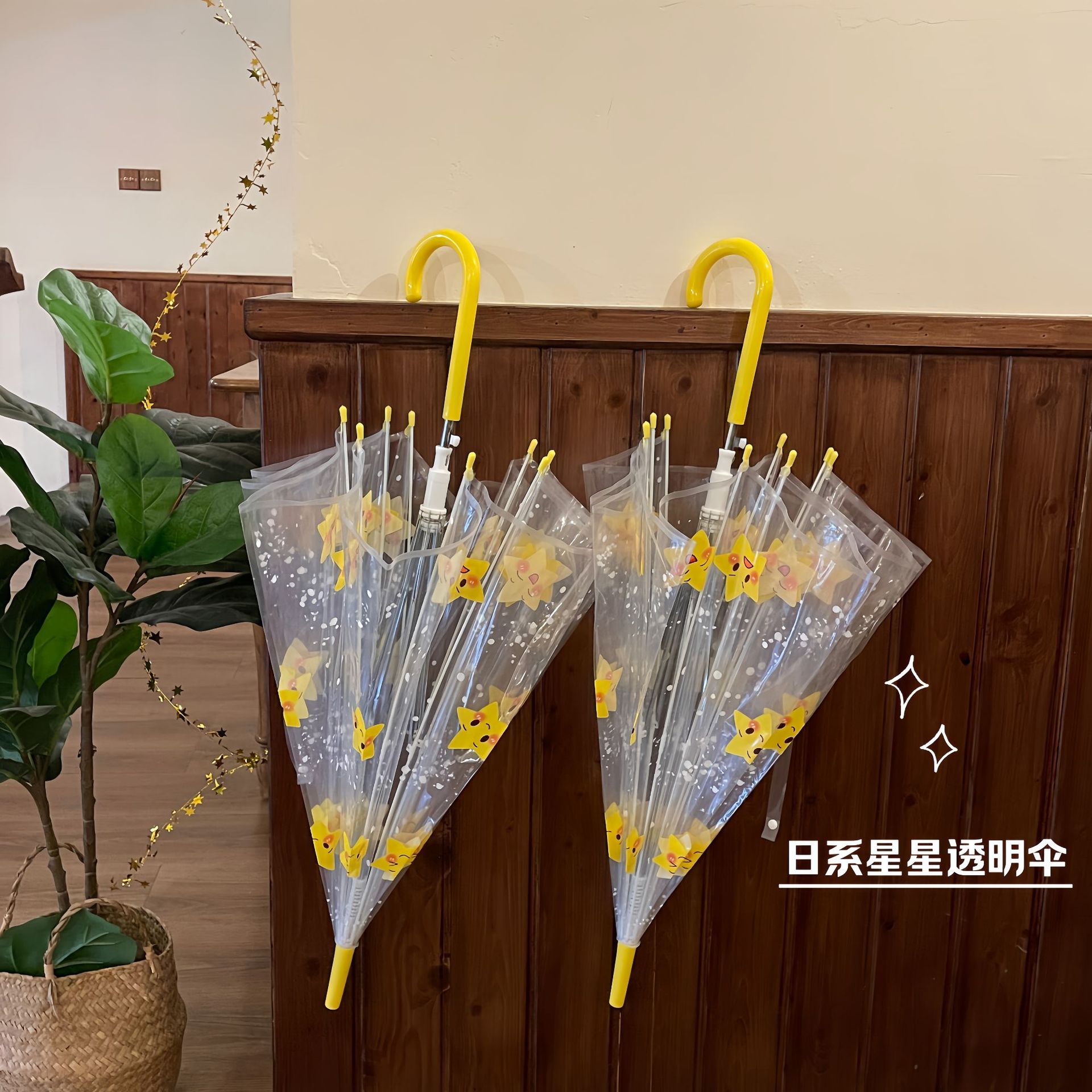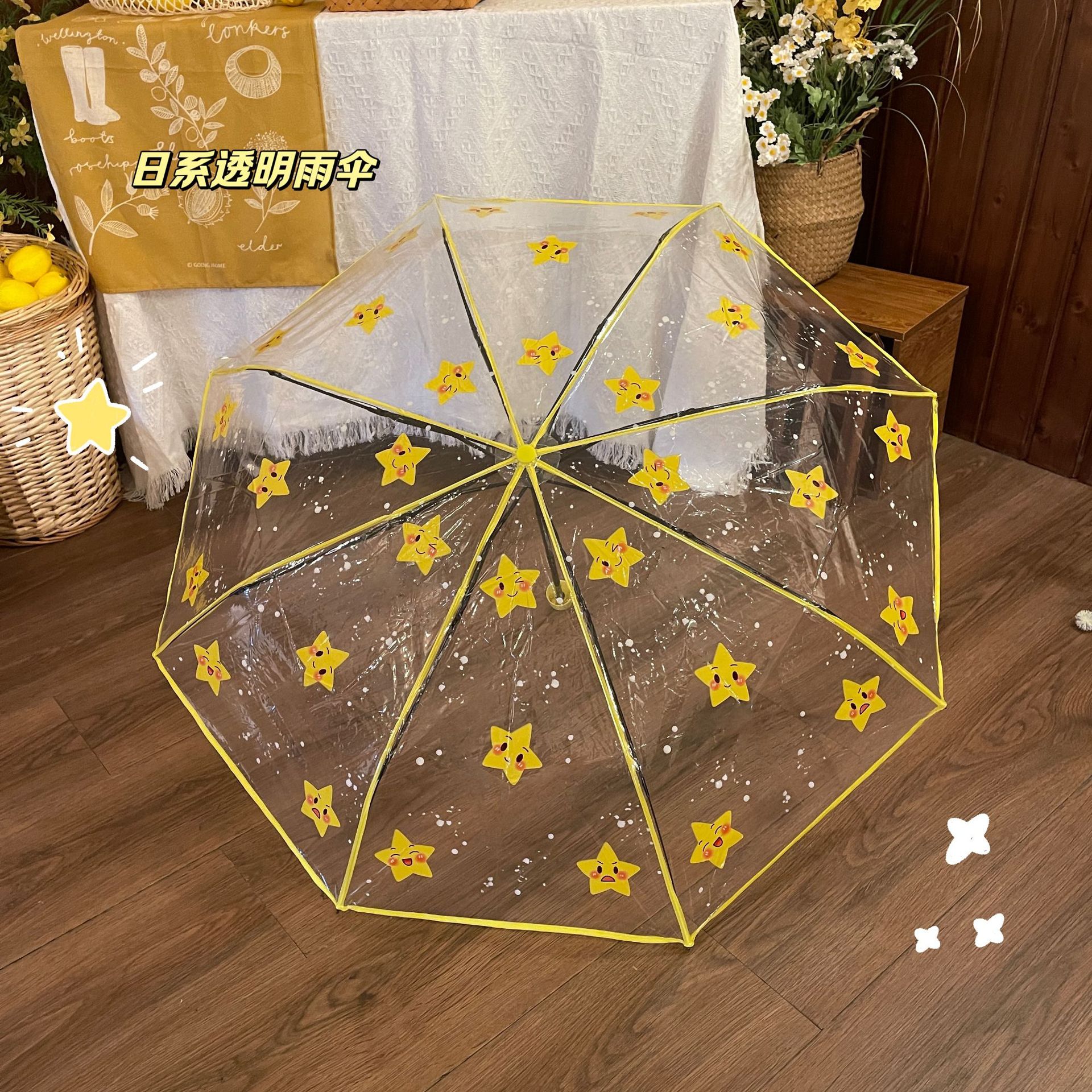 귀여운 별 Ins 귀여운 접는 어린이 우산 Ins 자동 신선한 투명 긴 손잡이 학생 만화 두껍게