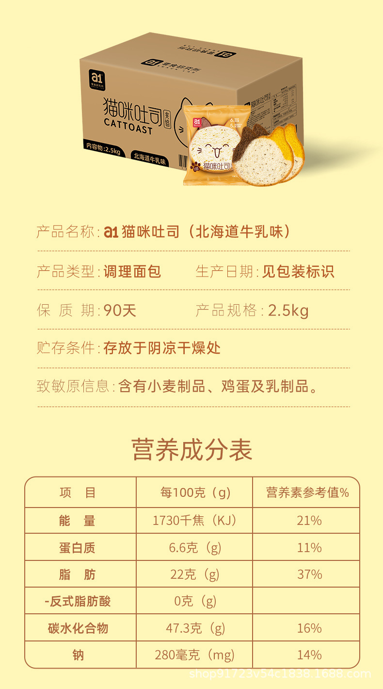고양이 토스트 아침식사 빵 어린이 영양 토스트 샌드위치 빵 풀박스 페이스트리 캐주얼 스낵 우유맛