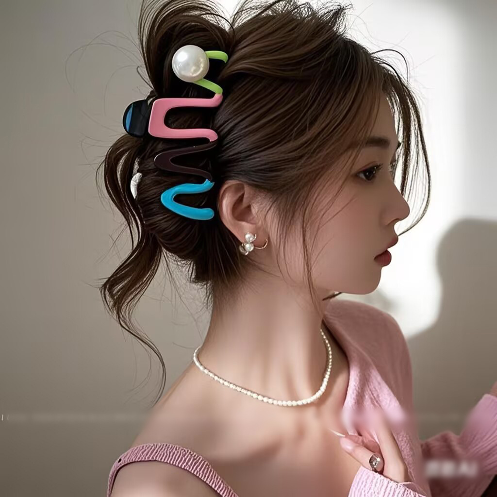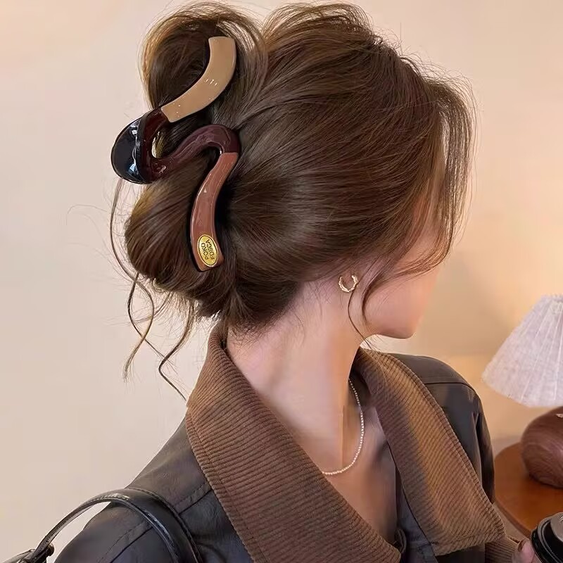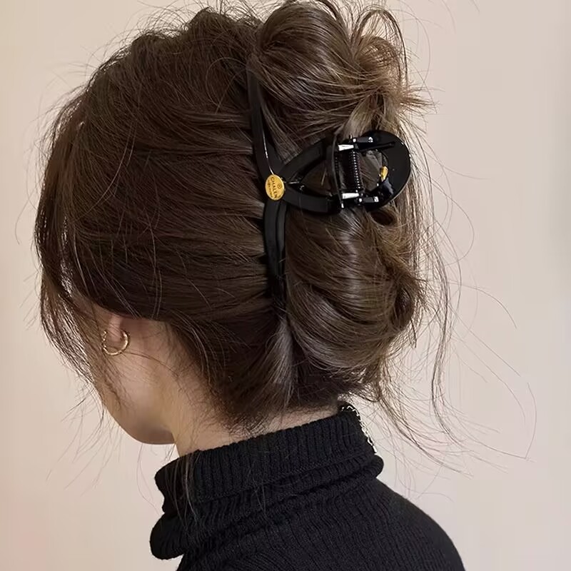 2025년 신형 대형 도파민 크로스 그립 여성용 고급 샤크 클립 머리 뒤쪽 머리핀