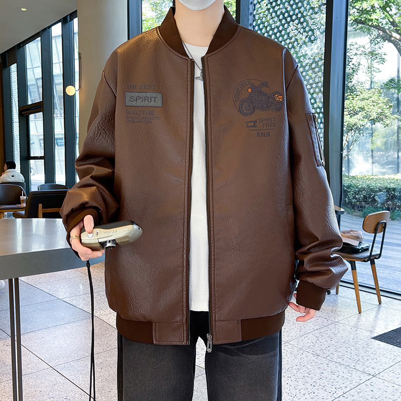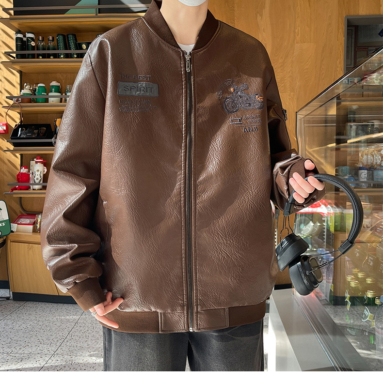 아메리칸 스타일 레트로 가죽 재킷 남자의 봄과 가을 새로운 유행 브랜드 플러스 사이즈 에비에이터 재킷스토어 가기