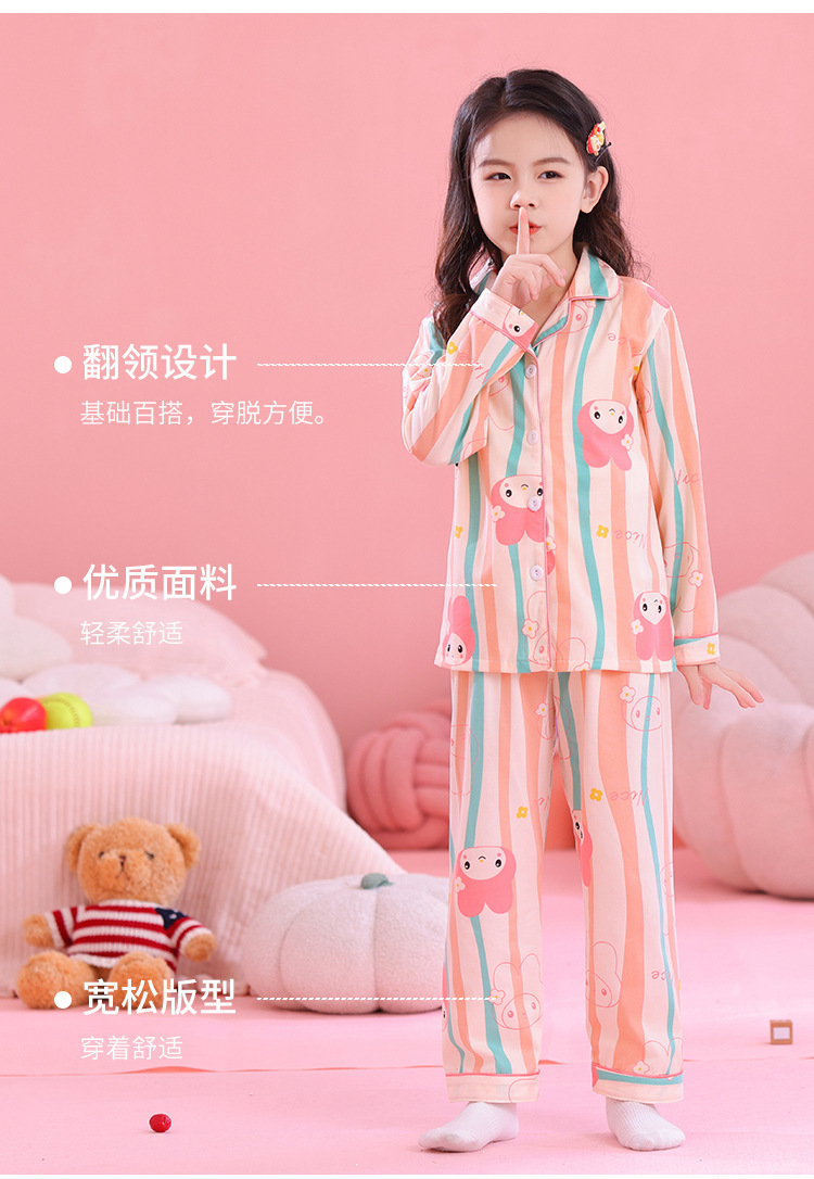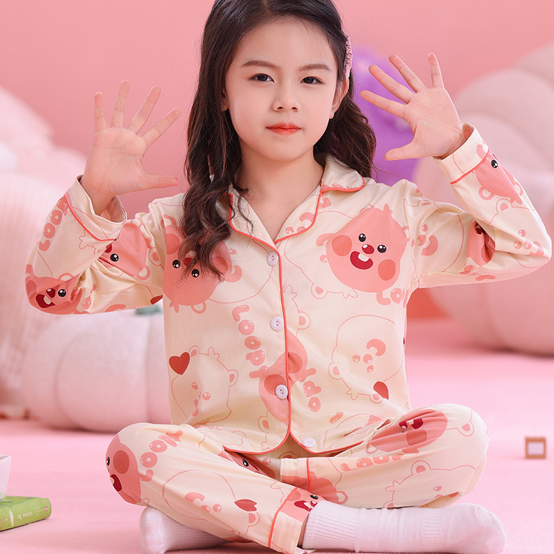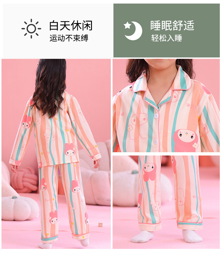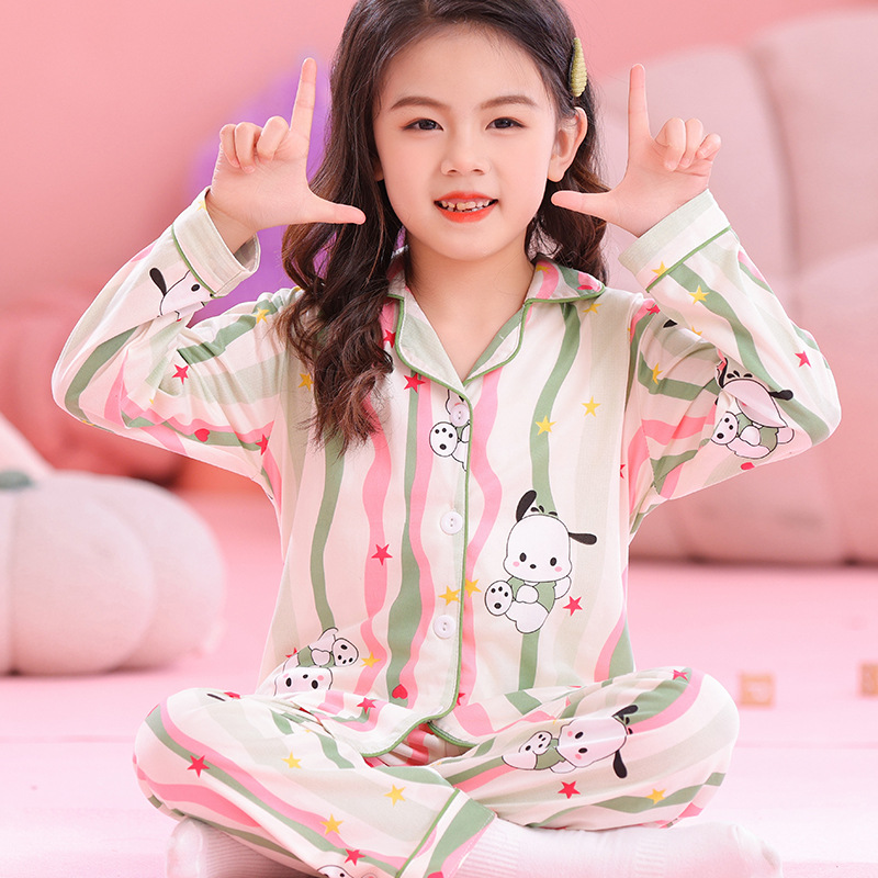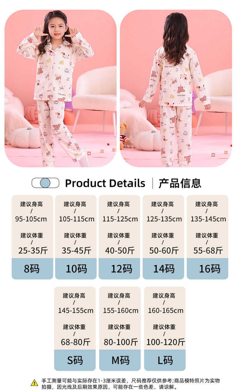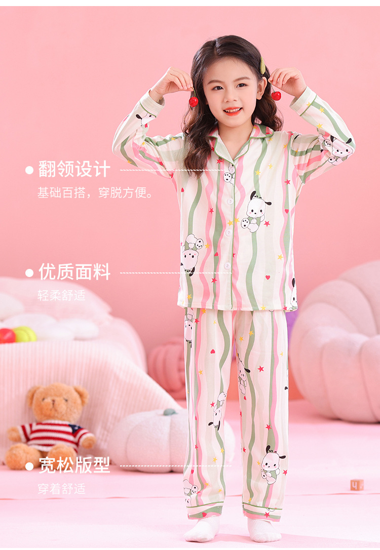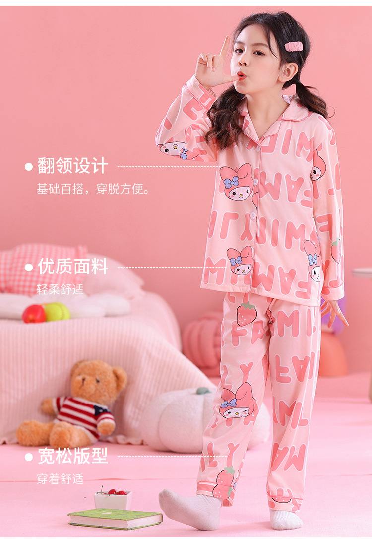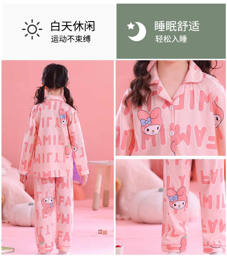 새로운 2025 여자 잠옷 어린이 봄과 가을 긴 소매 세트 소년 에어컨 의류 십대 만화 홈 옷스토어 가기
