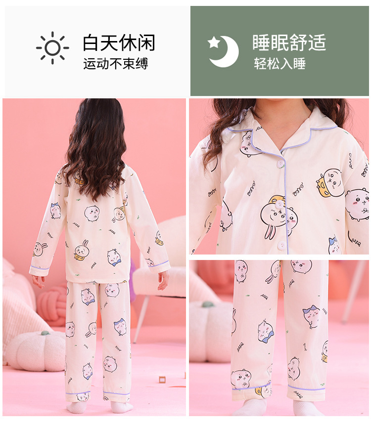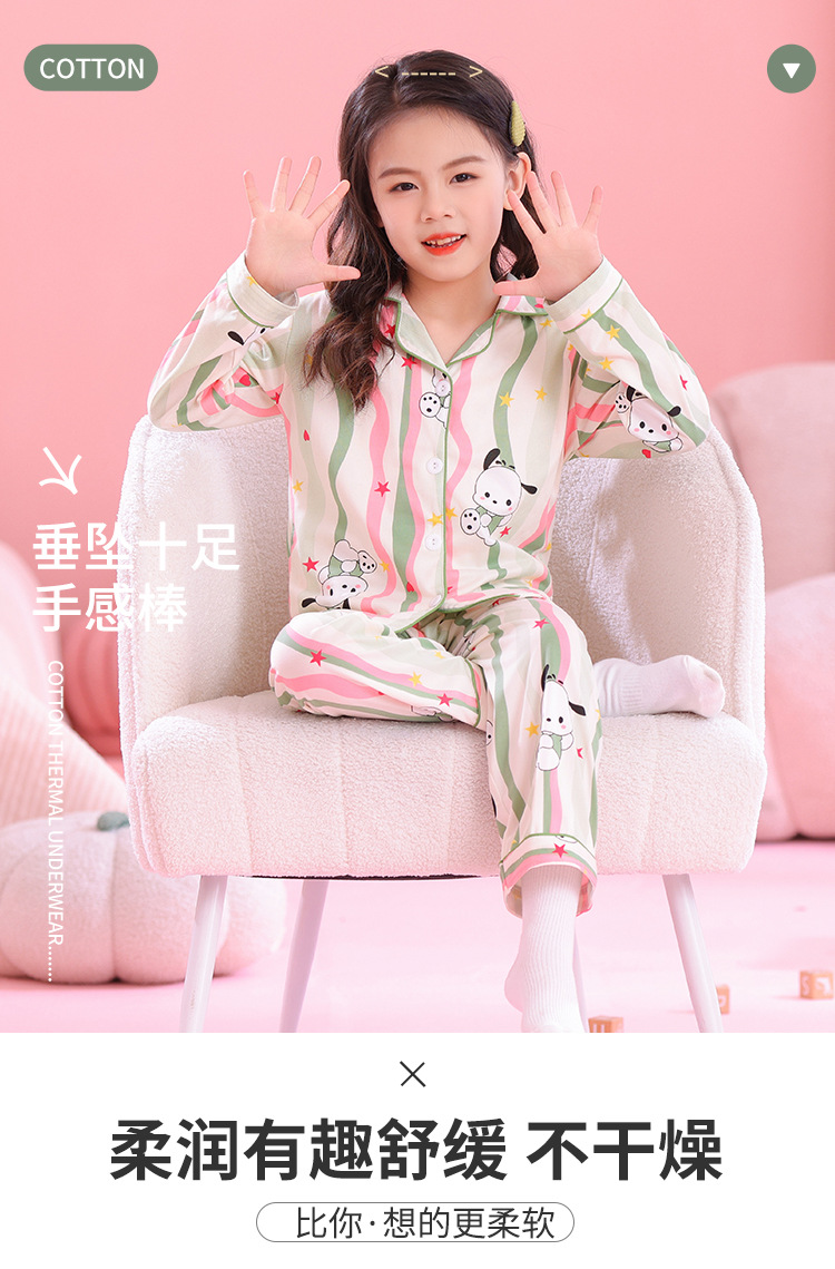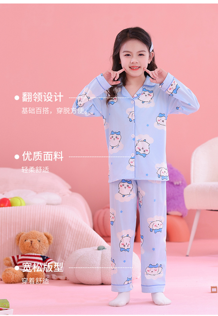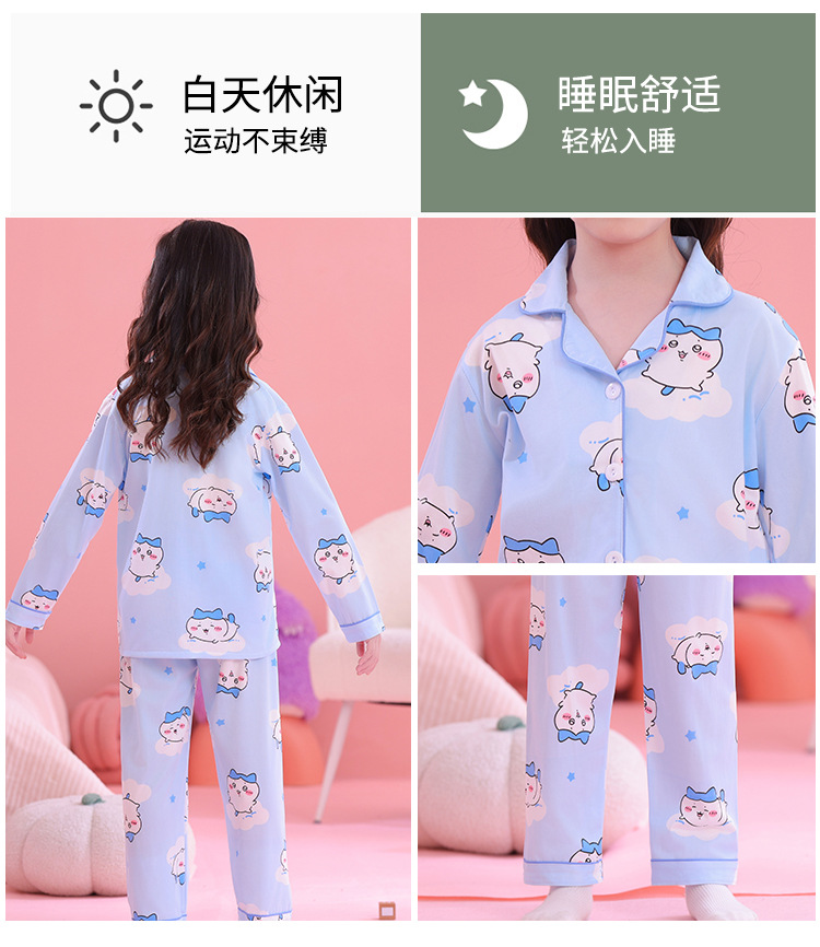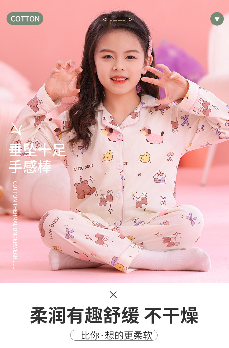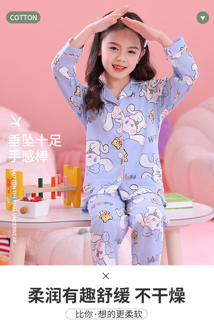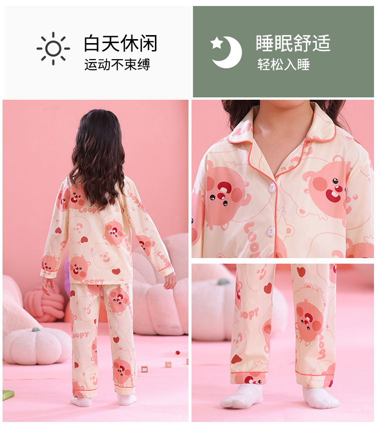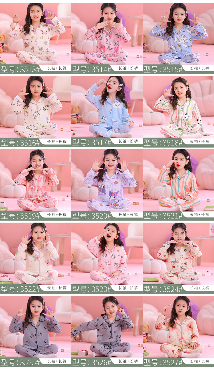 새로운 2025 여자 잠옷 어린이 봄과 가을 긴 소매 세트 소년 에어컨 의류 십대 만화 홈 옷스토어 가기