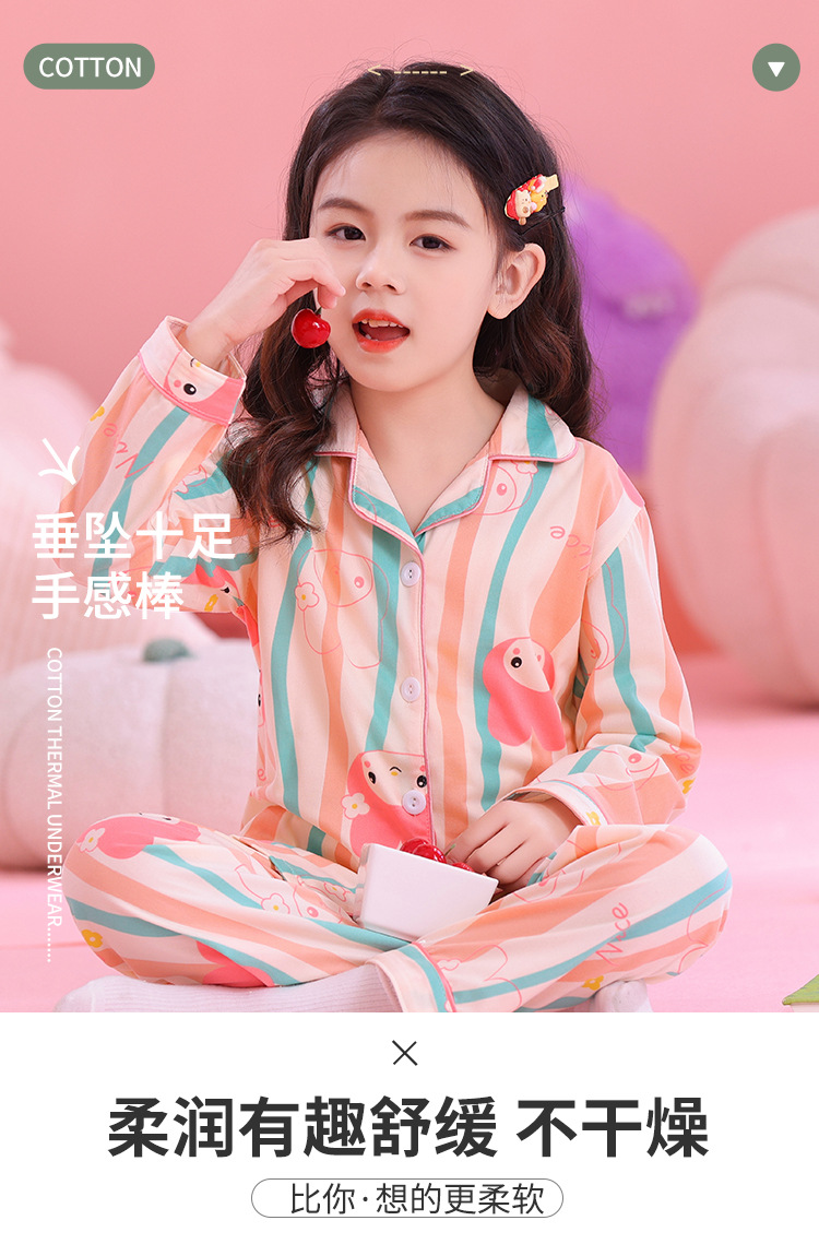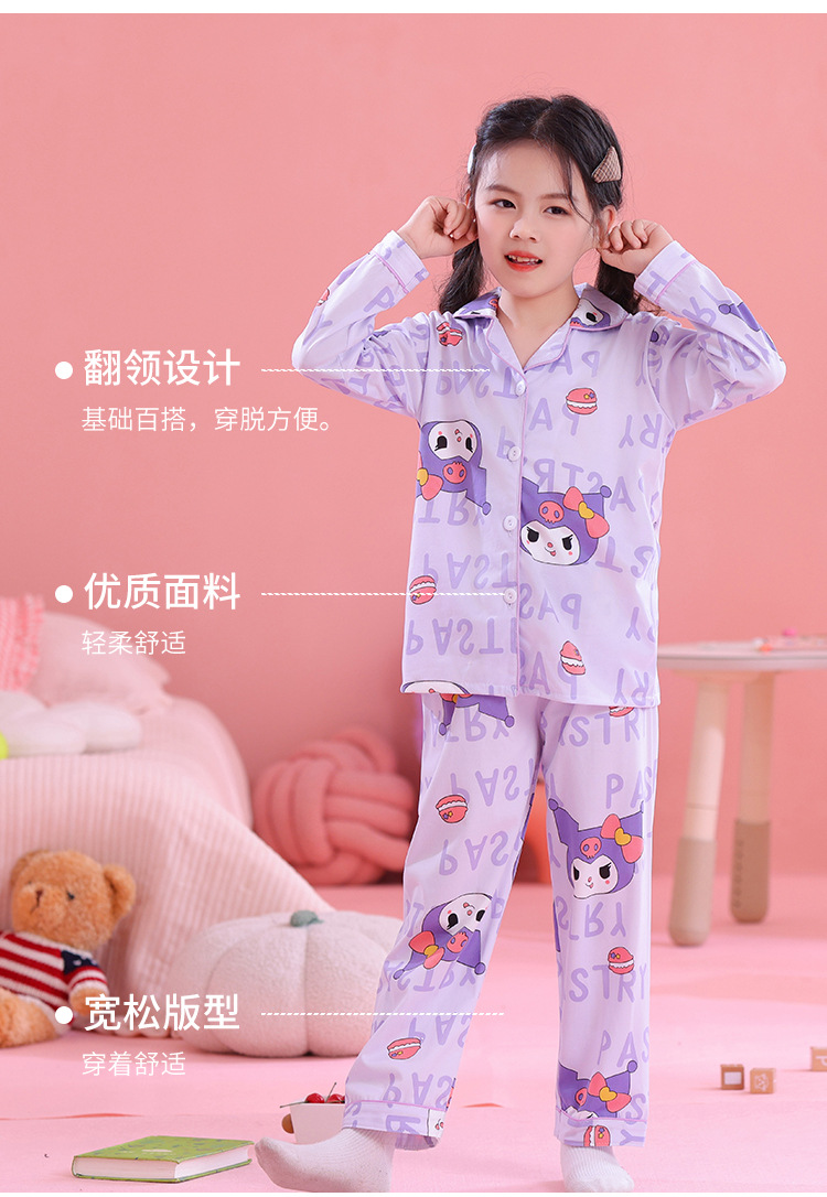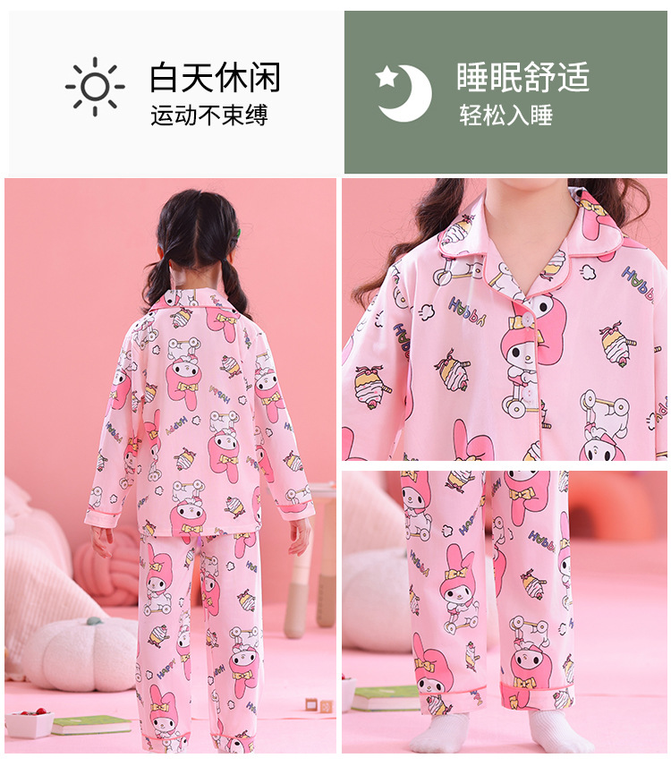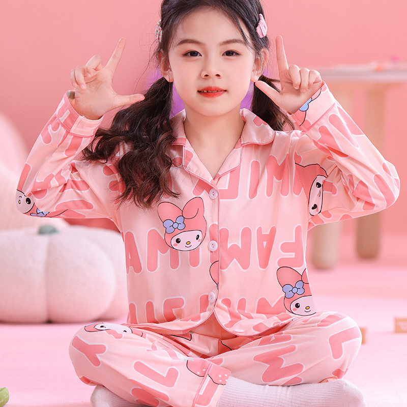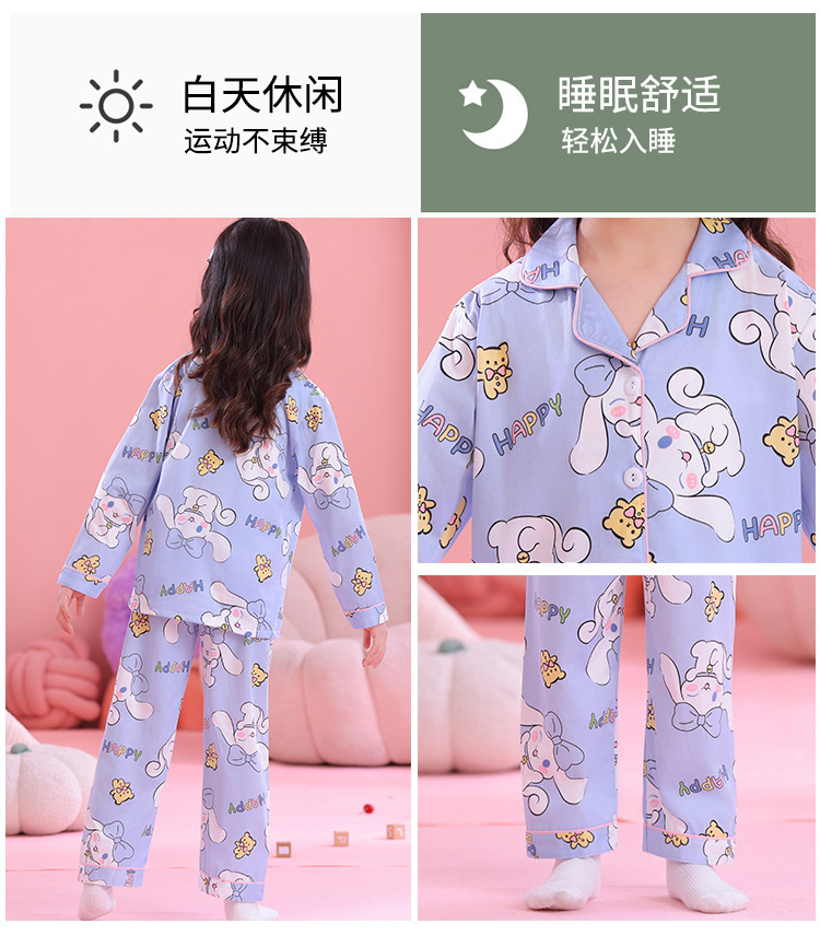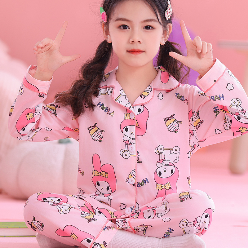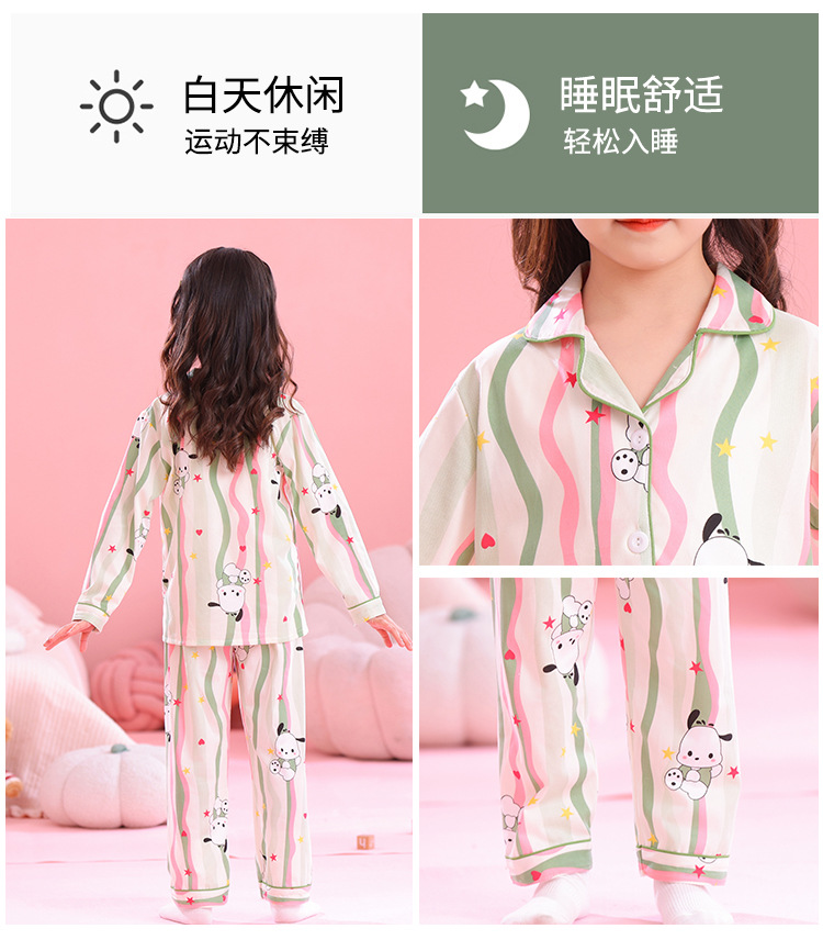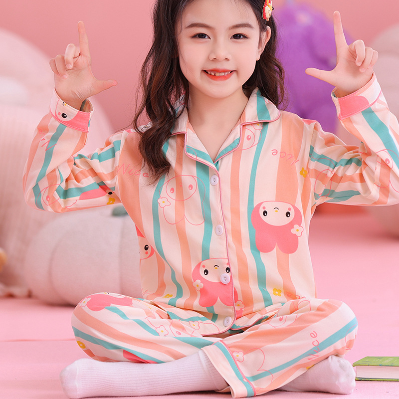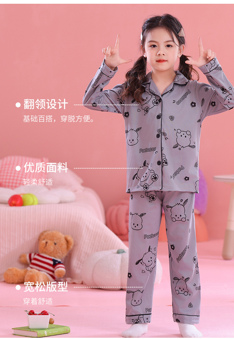 새로운 2025 여자 잠옷 어린이 봄과 가을 긴 소매 세트 소년 에어컨 의류 십대 만화 홈 옷스토어 가기
