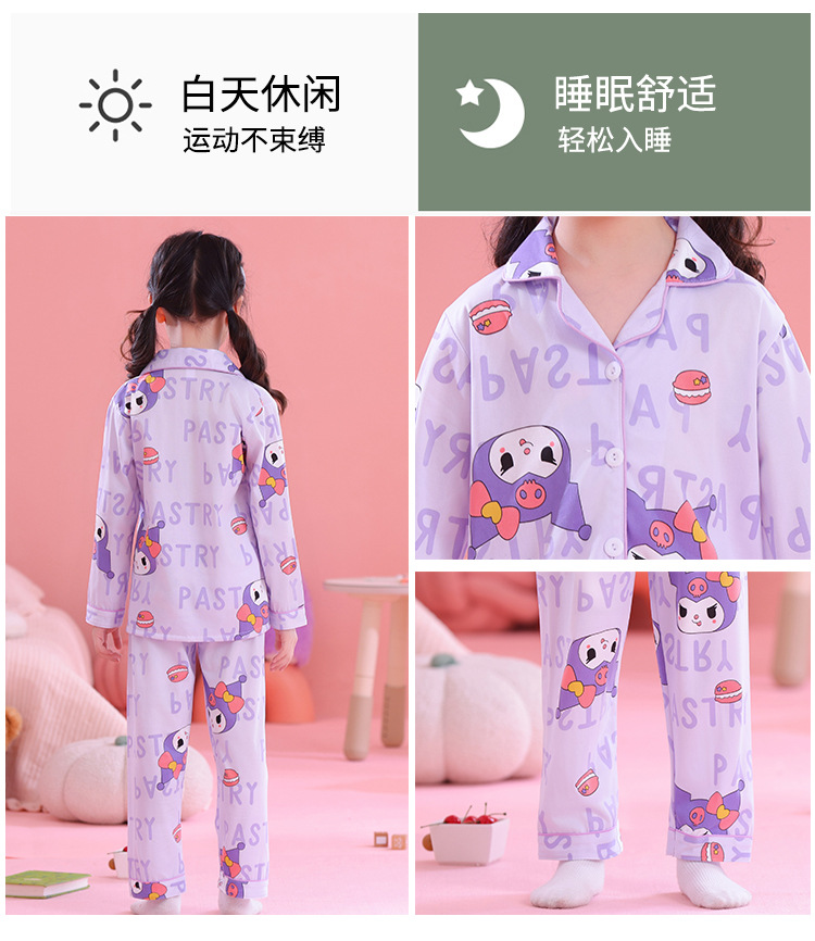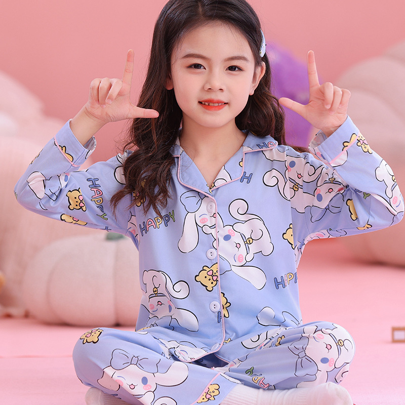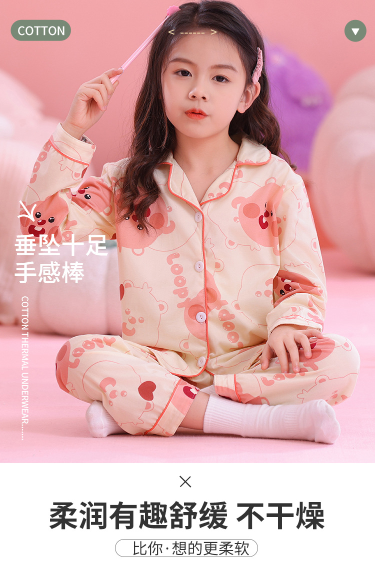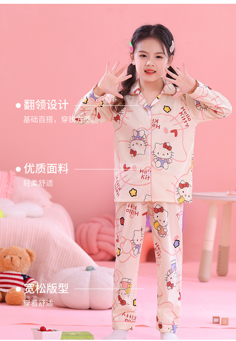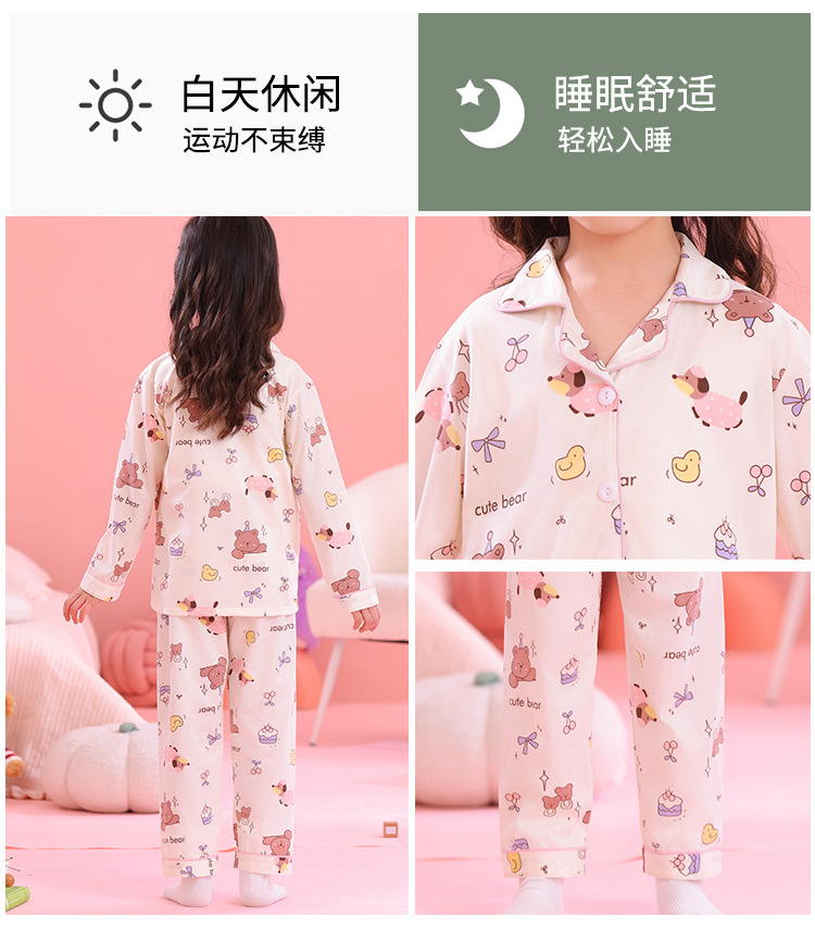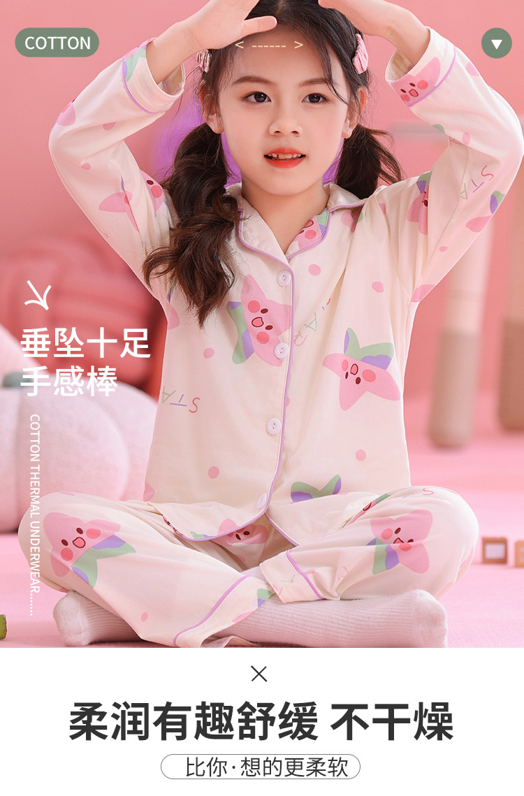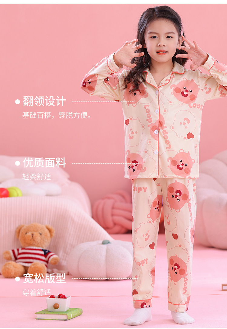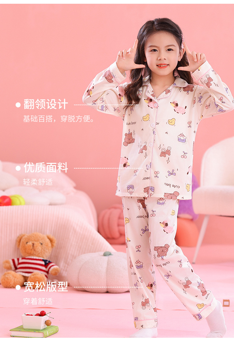 새로운 2025 여자 잠옷 어린이 봄과 가을 긴 소매 세트 소년 에어컨 의류 십대 만화 홈 옷스토어 가기