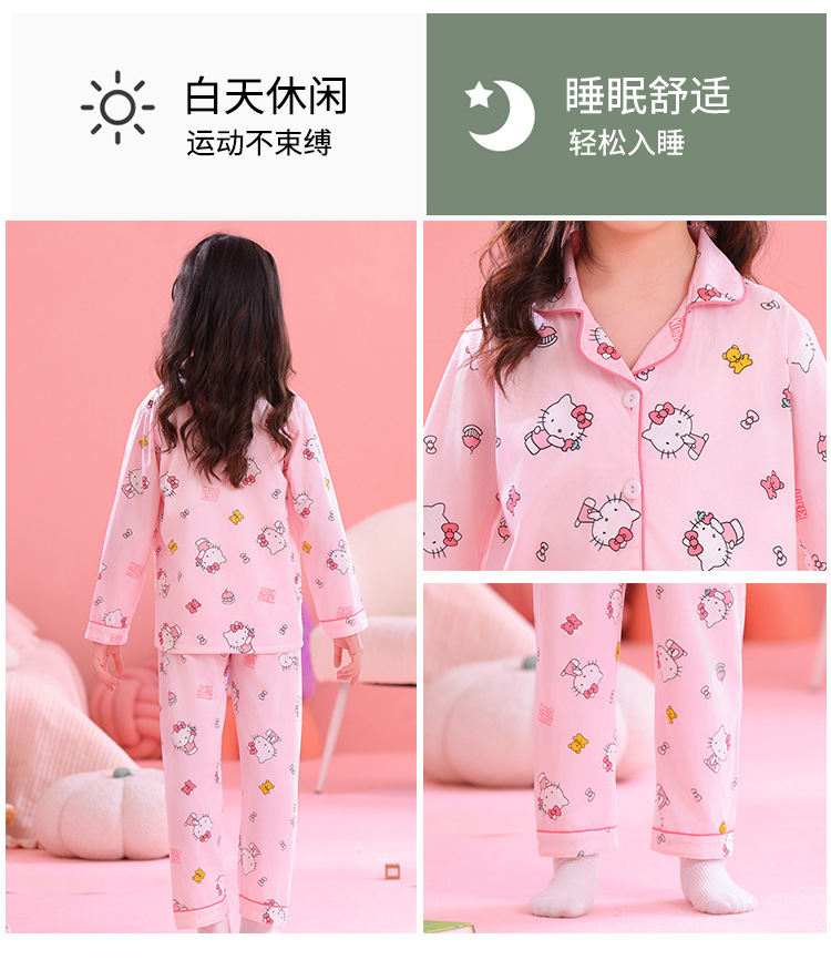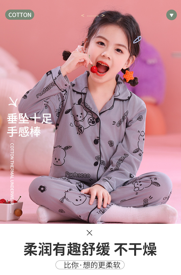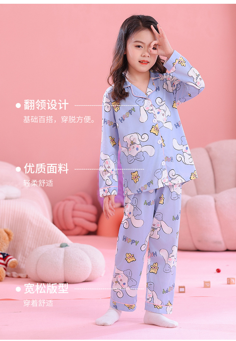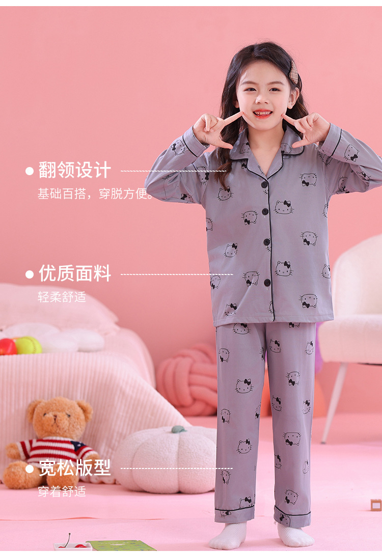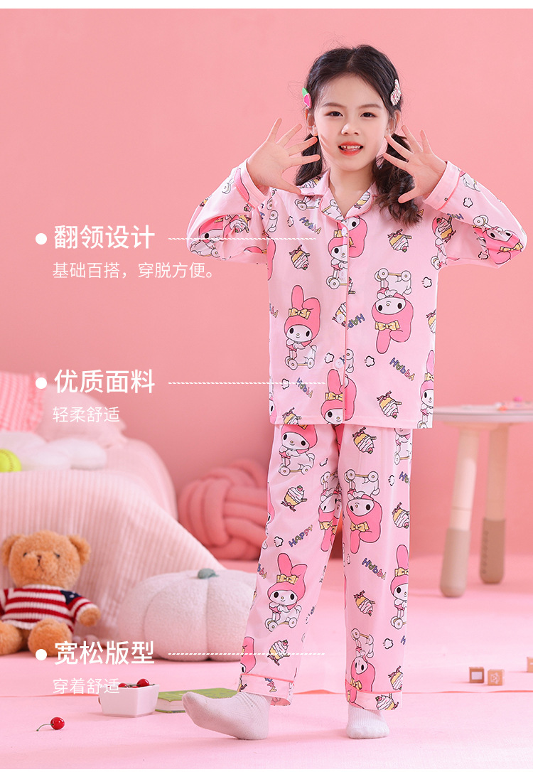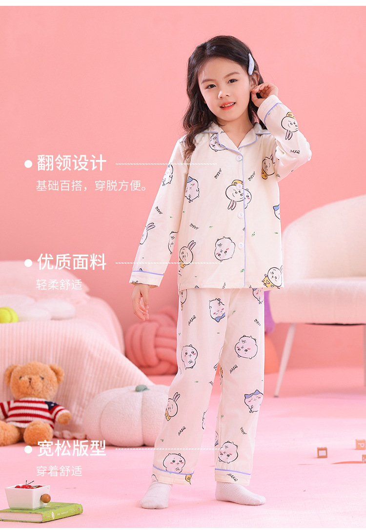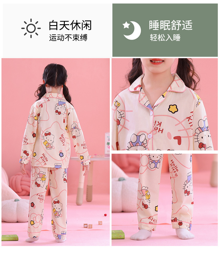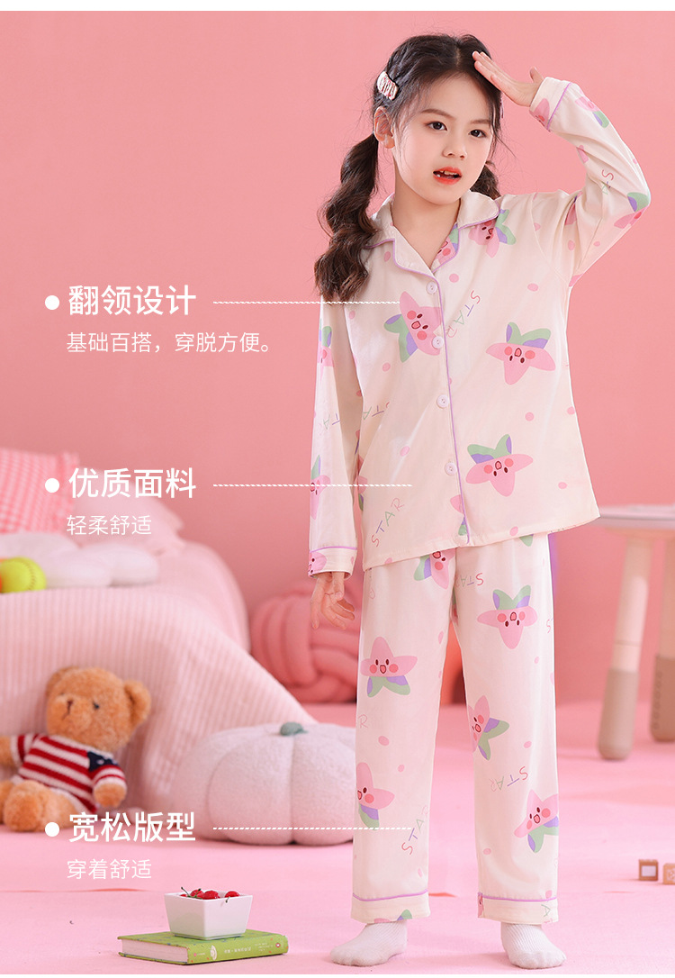 새로운 2025 여자 잠옷 어린이 봄과 가을 긴 소매 세트 소년 에어컨 의류 십대 만화 홈 옷스토어 가기