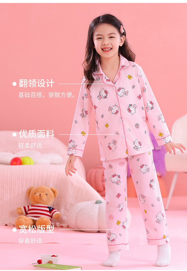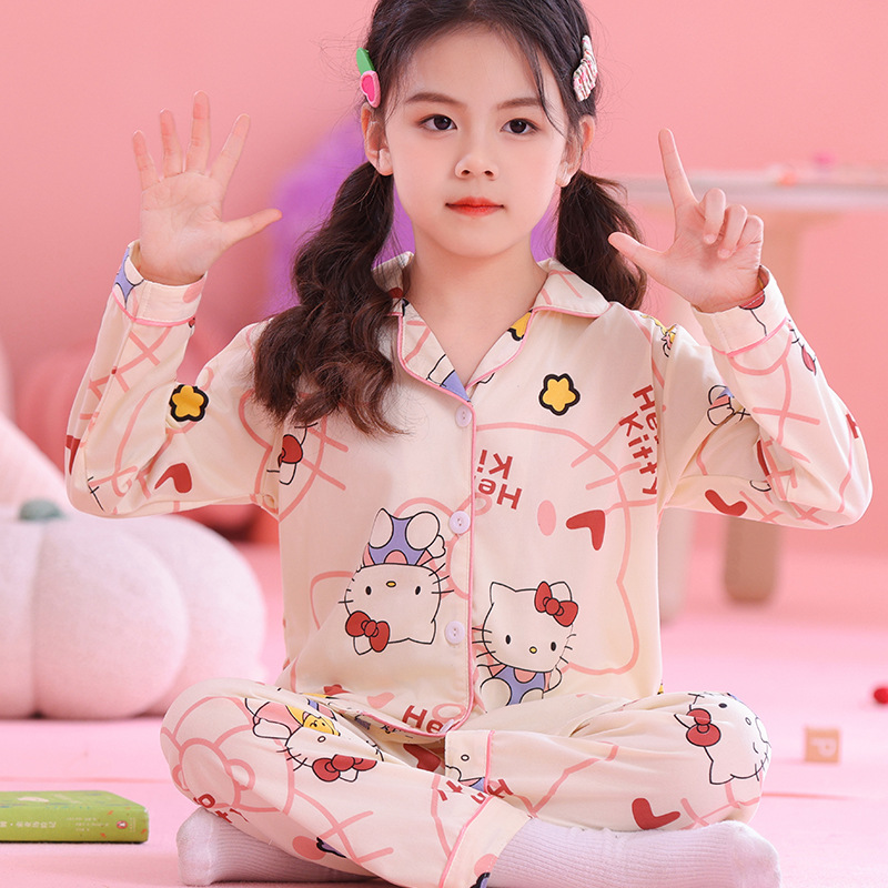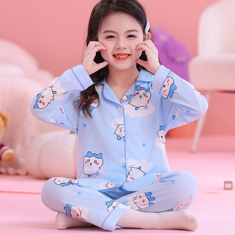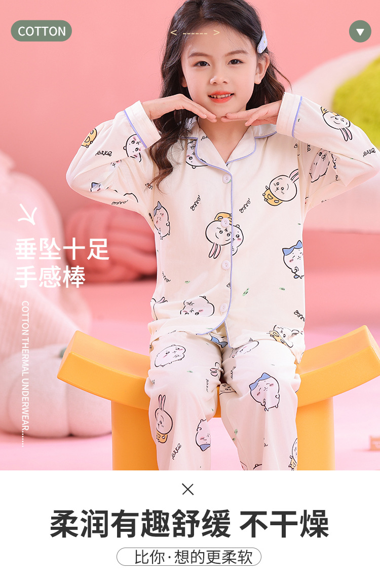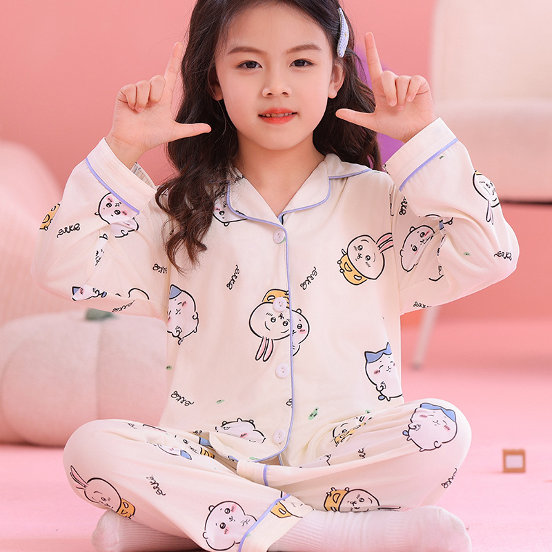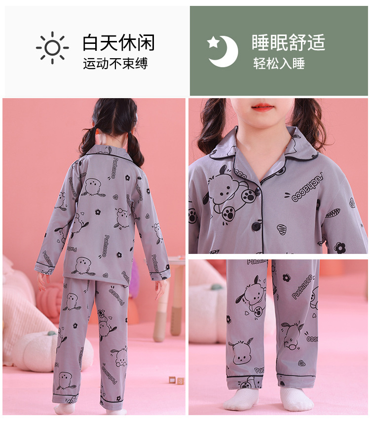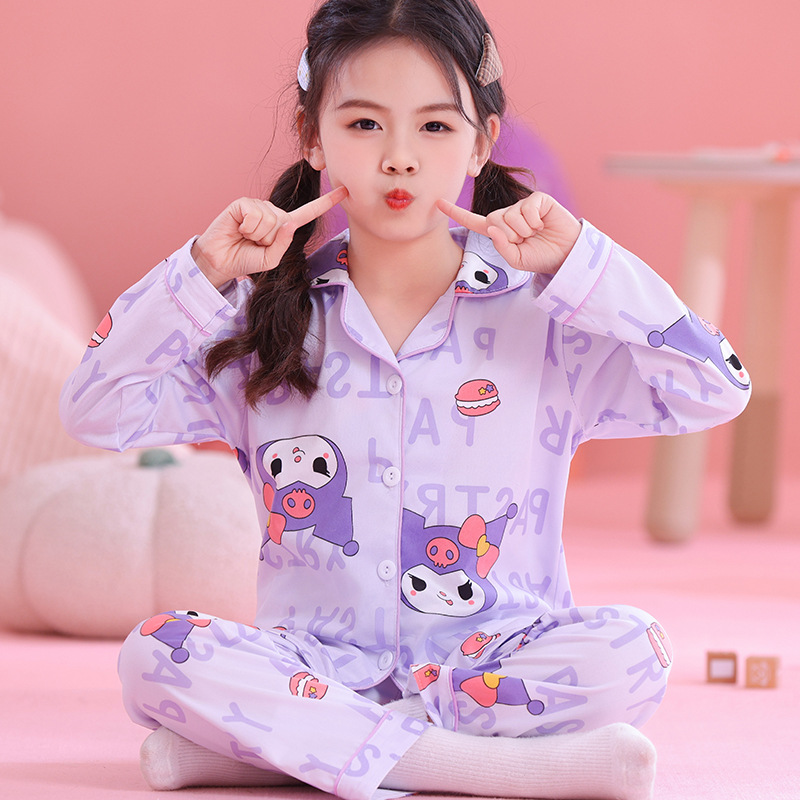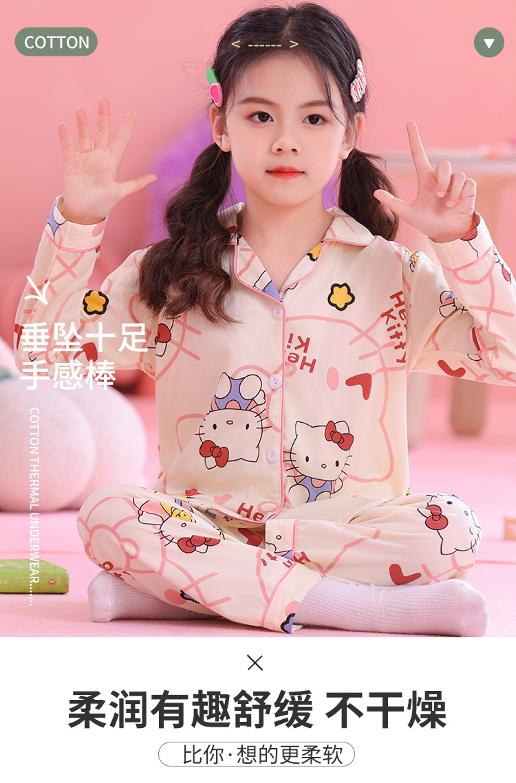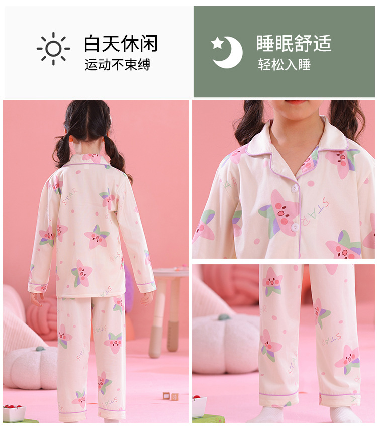 새로운 2025 여자 잠옷 어린이 봄과 가을 긴 소매 세트 소년 에어컨 의류 십대 만화 홈 옷스토어 가기