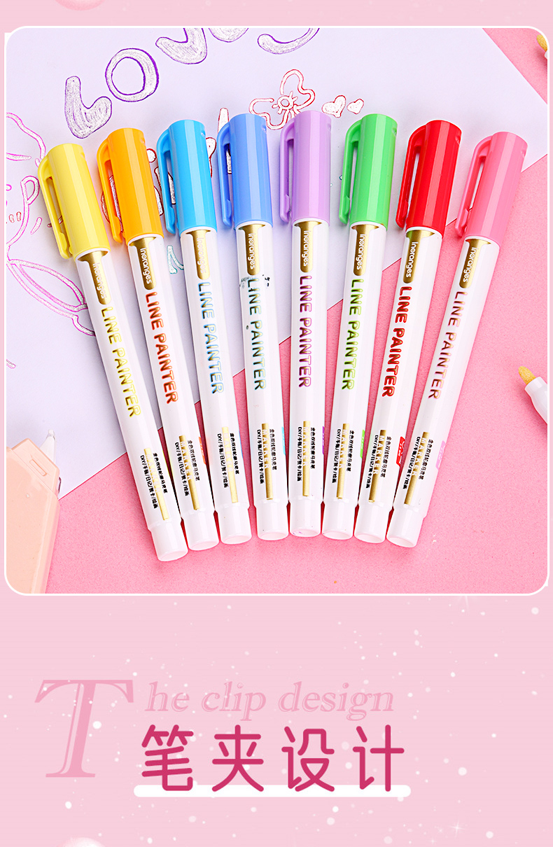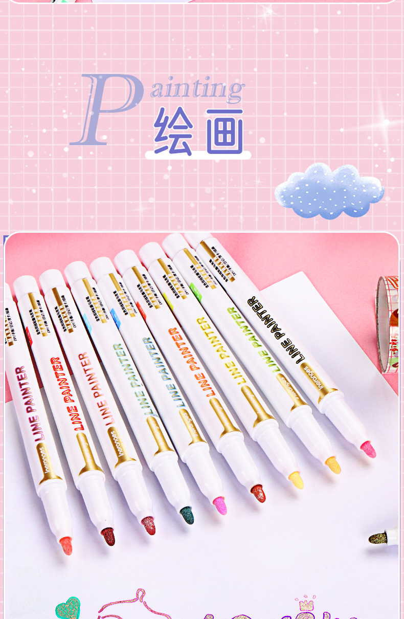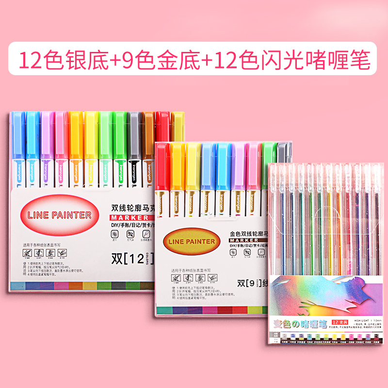 12 컬러 더블 라인 윤곽 펜 플래시 하이 라이터 펜 학생 펄 펜 마킹 펜 손 계정 인사말 카드 특수 형광 색상