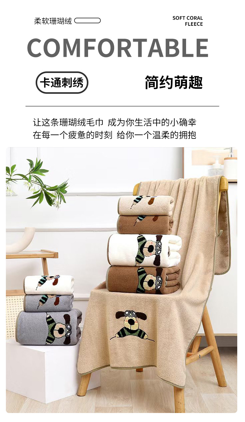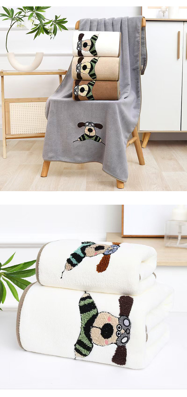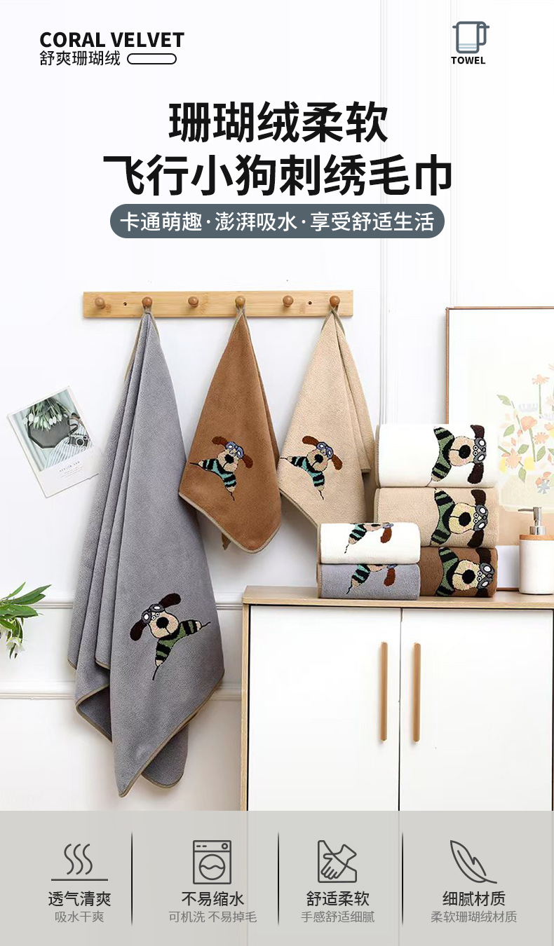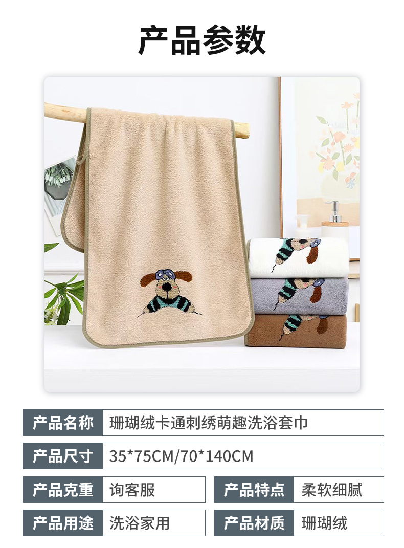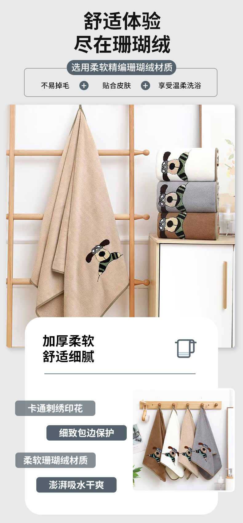 2025 만화 개 자수 산호 벨벳 수건 목욕 수건 세트 흡수성 드라이 헤어 크로스 보더 선물 인터넷 연예인 입체스토어 가기