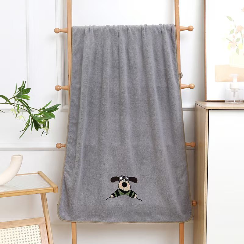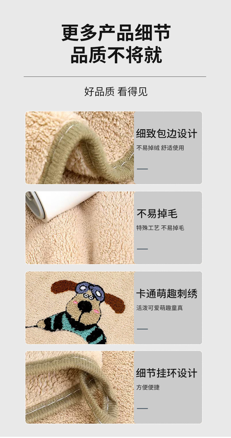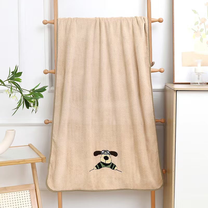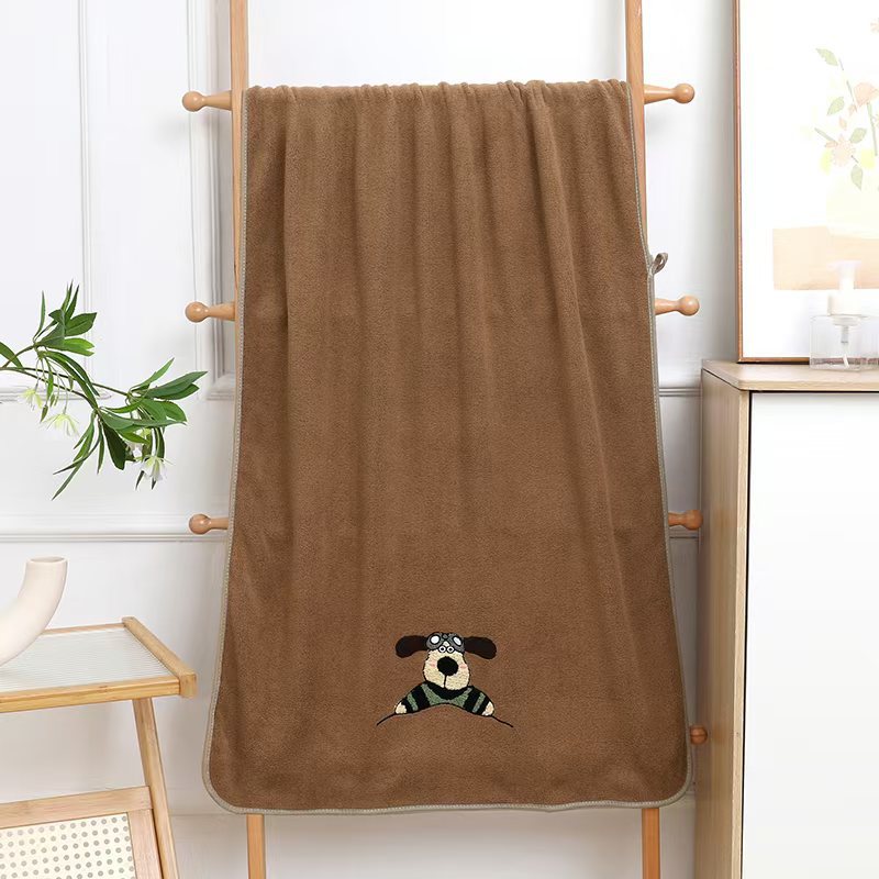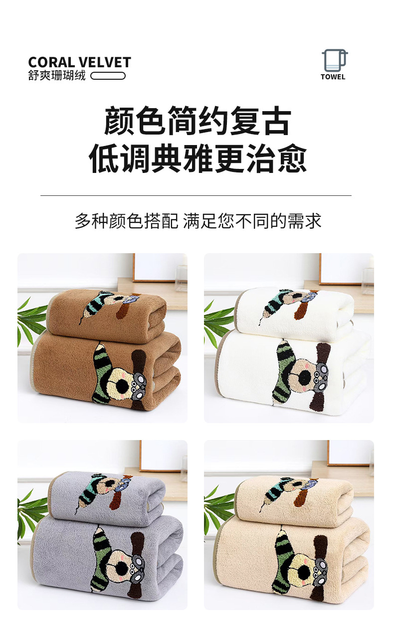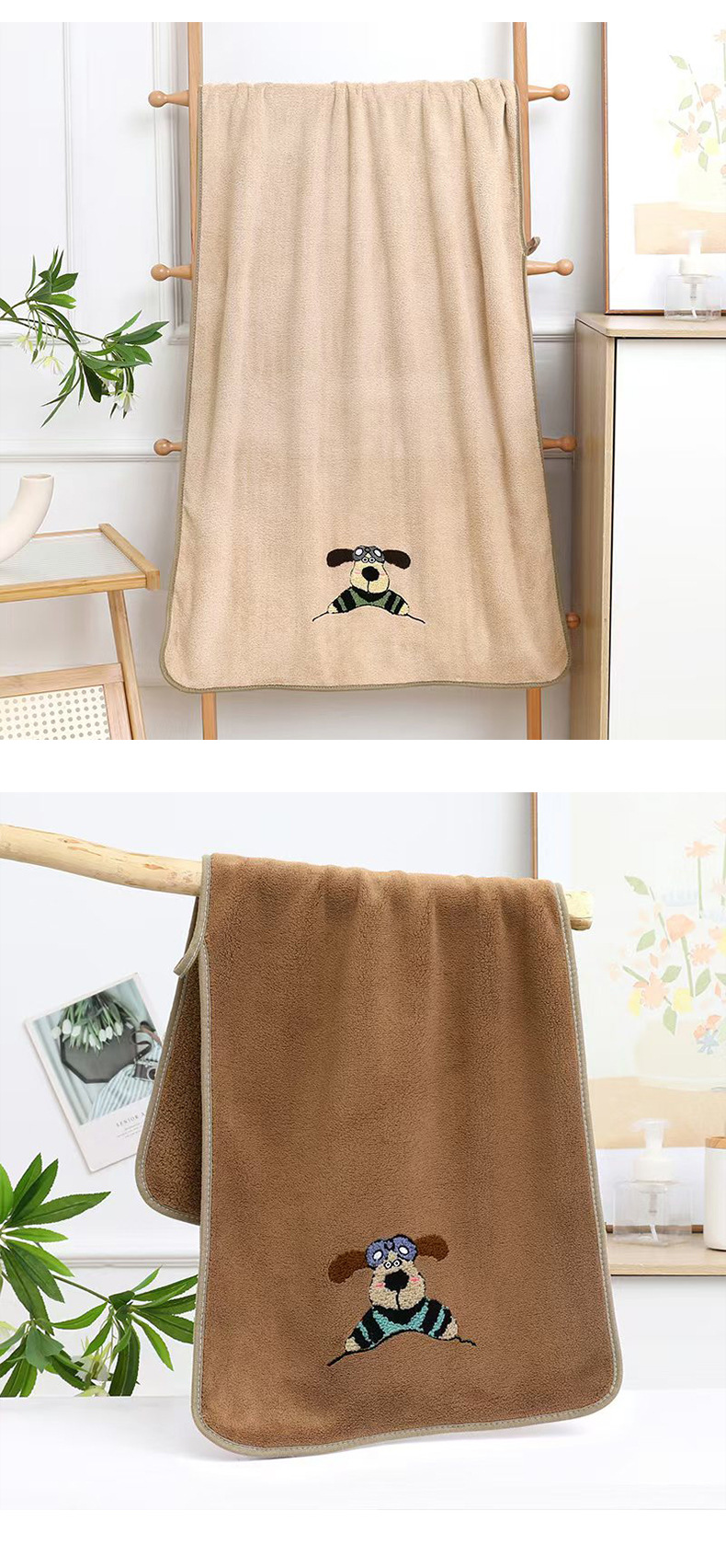 2025 만화 개 자수 산호 벨벳 수건 목욕 수건 세트 흡수성 드라이 헤어 크로스 보더 선물 인터넷 연예인 입체스토어 가기