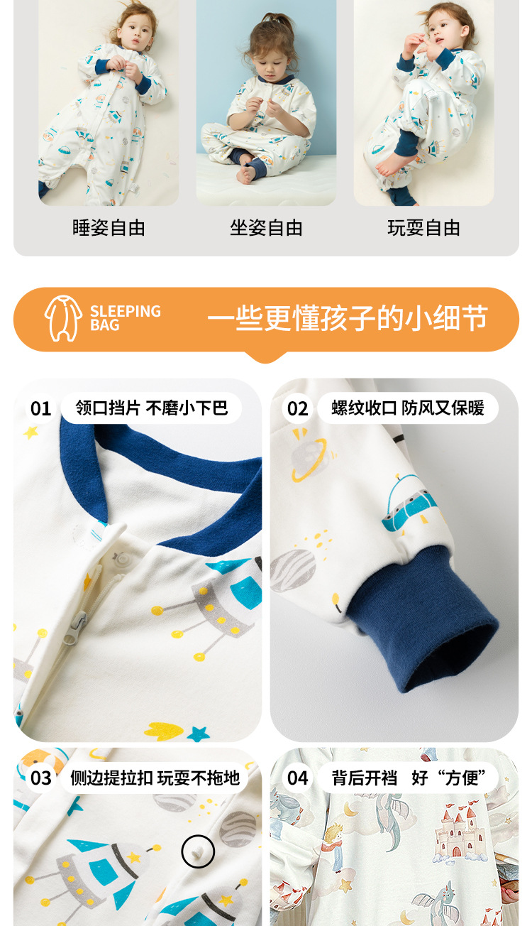 어린이 슬리핑 백 봄과 가을 Ai 생강 항균 퓨어 코튼 레그 분할 슬리핑 백 대형 어린이 에어컨 방 킥 방지 퀼트 올 시즌스토어 가기