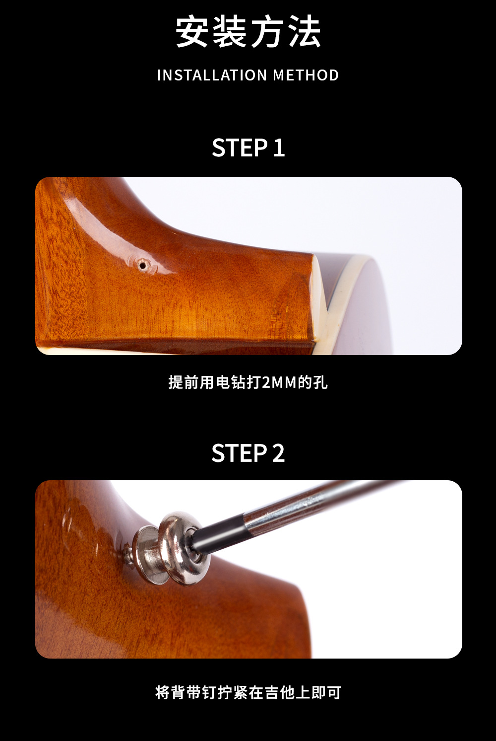 기타 스트랩 잠금 기타 우쿨렐레 스트랩 네일 메탈 포크 기타 테일 네일 우드 일렉트릭 기타 스트랩 버클