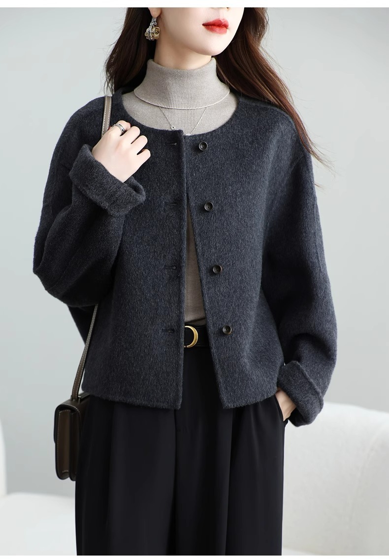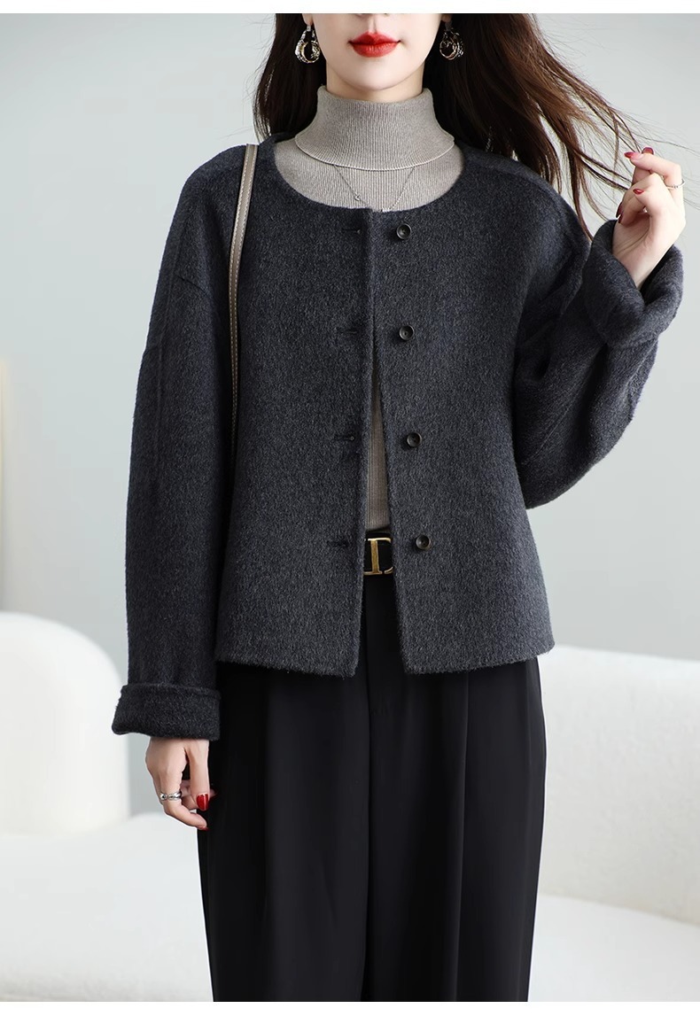 한국 짧은 모직 코트 여자 2025 봄과 가을 새로운 느슨한 둥근 목 샤넬 스타일 우아한 고급 코트스토어 가기