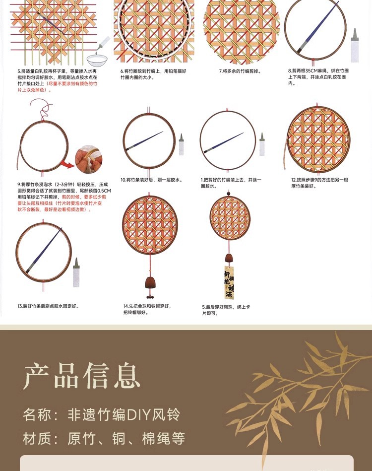 대나무 바람 벨 DIY 소재 가방 유치원 커뮤니티 부모-자녀 그룹 건물 살롱 워밍업 활동 수제 벨 교수형 장식품스토어 가기