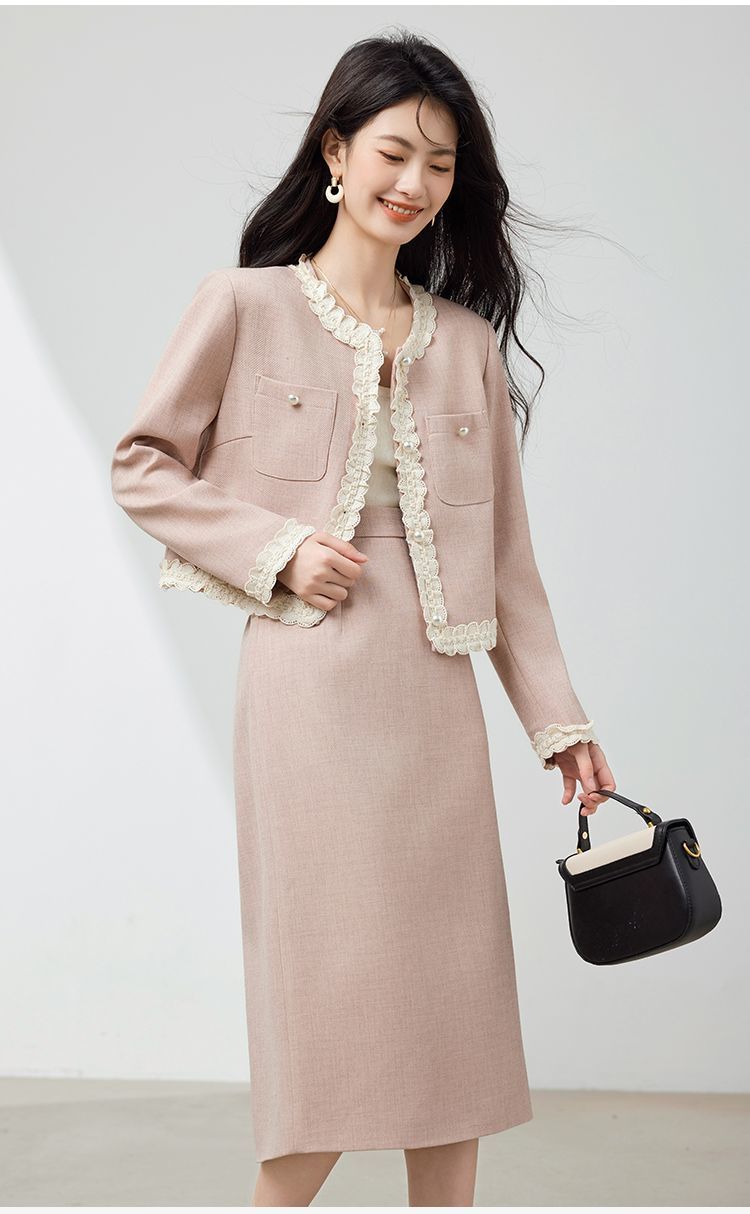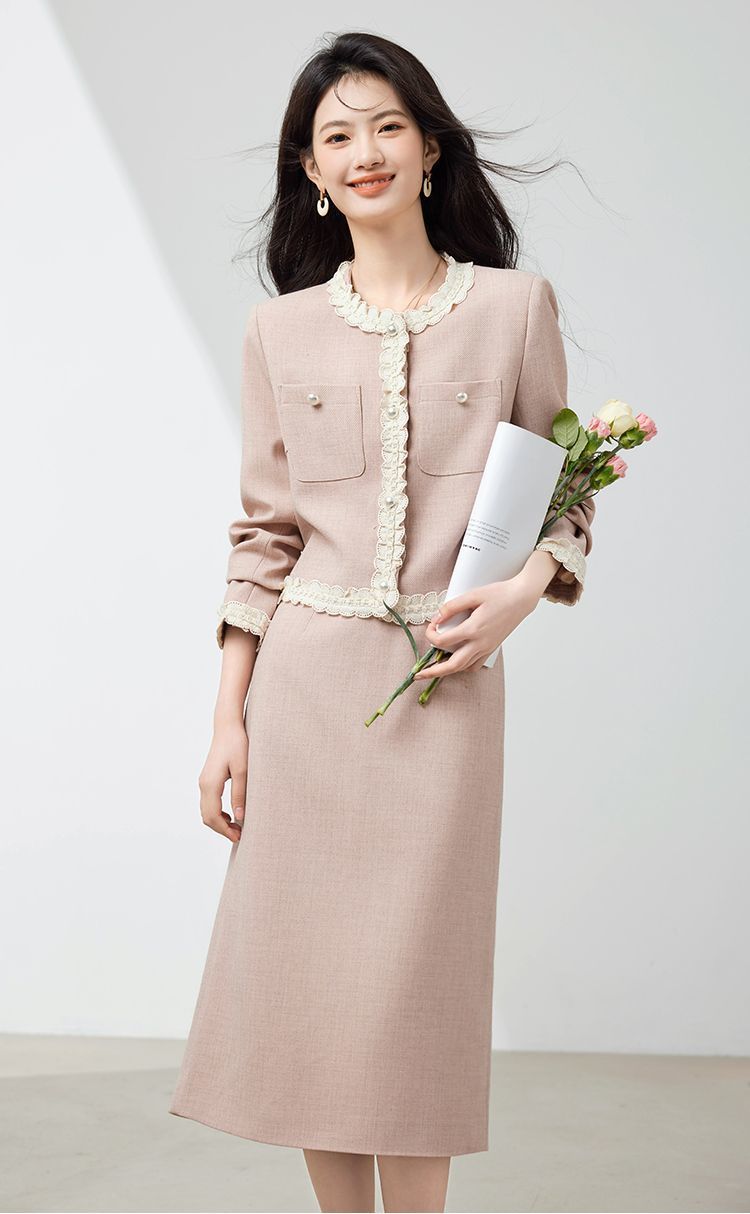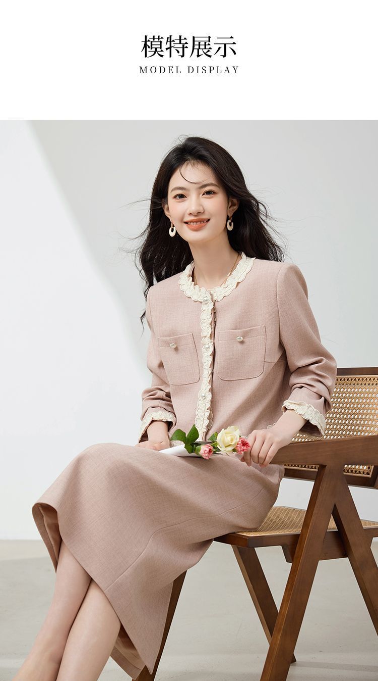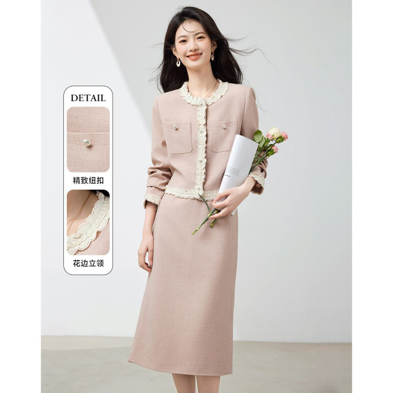 신페이 깃털 핑크 샤넬 스타일 투피스 세트 원피스 여성의 2025 새로운 하이 엔드 패션 웨스턴 스타일 초가을스토어 가기