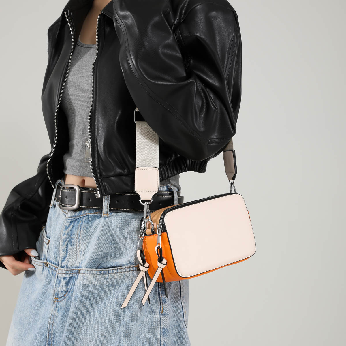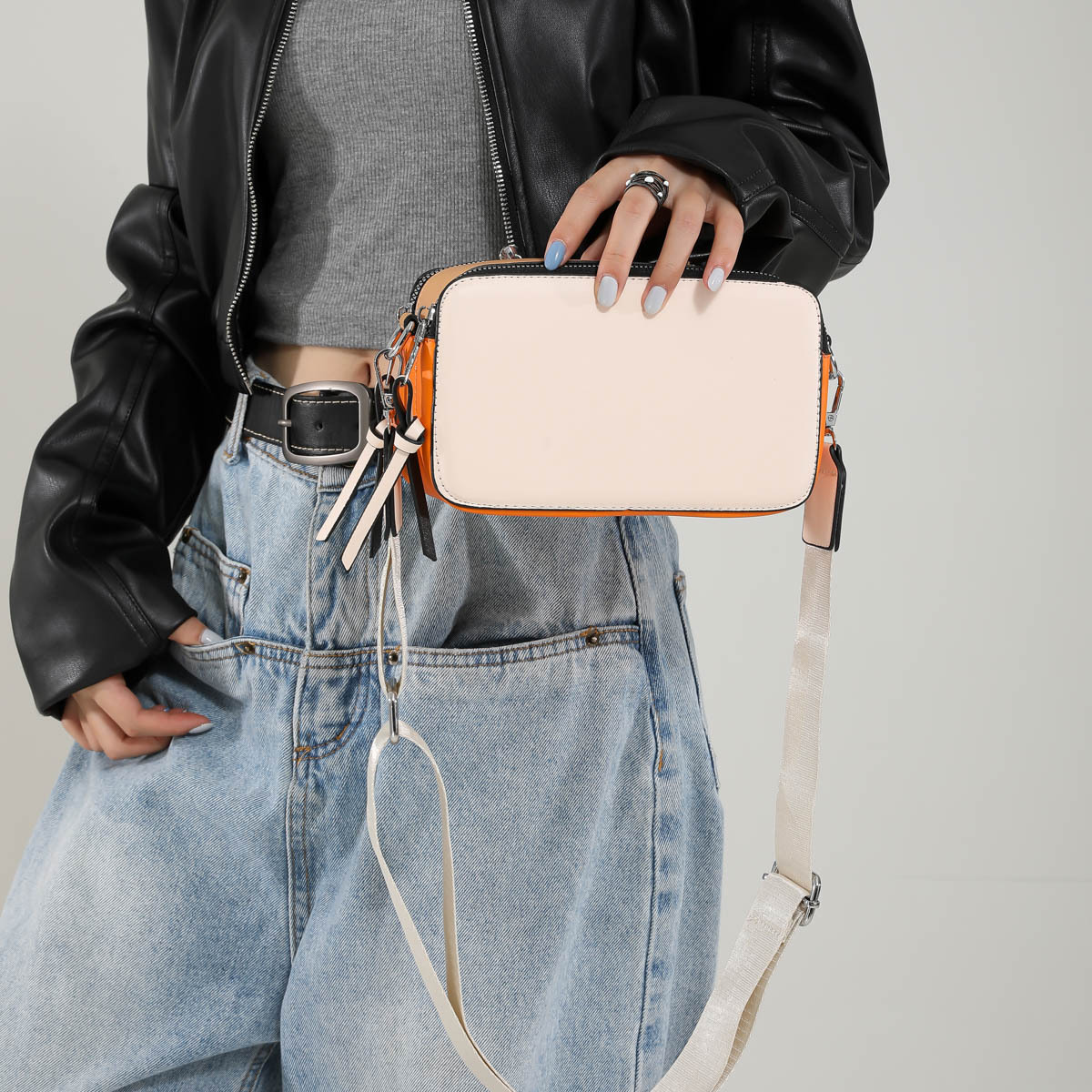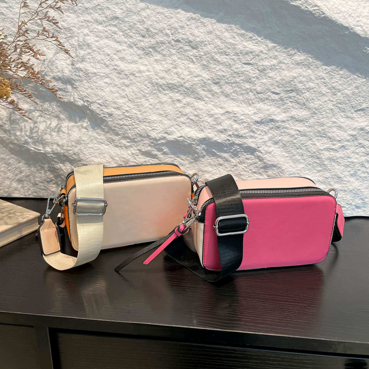 국경 간 유행 패션 명암 컬러 작은 광장 가방 여성의 새로운 패션 와이드 어깨 가방 한국식 서양식 올 매치 크로스 바디 백