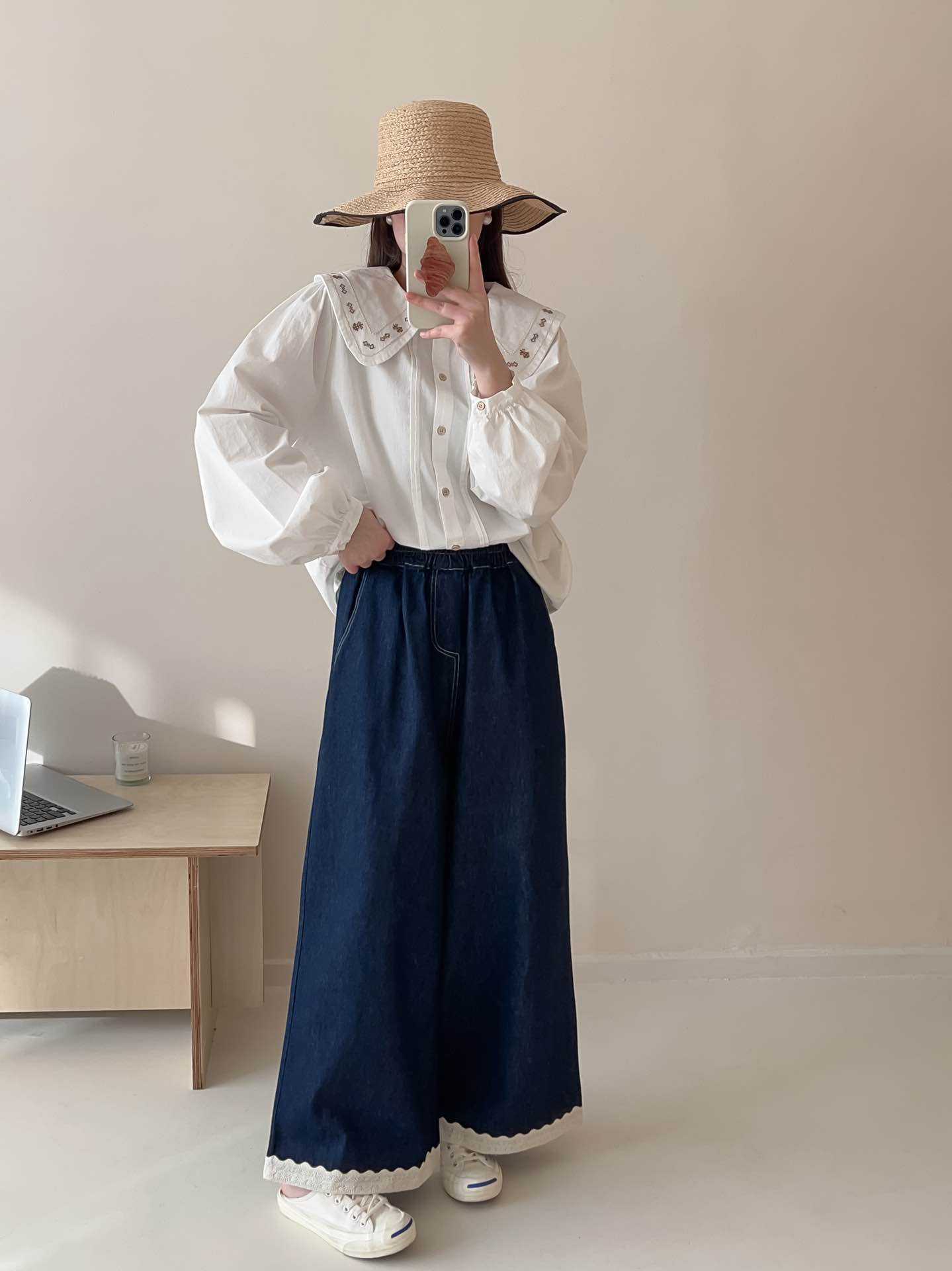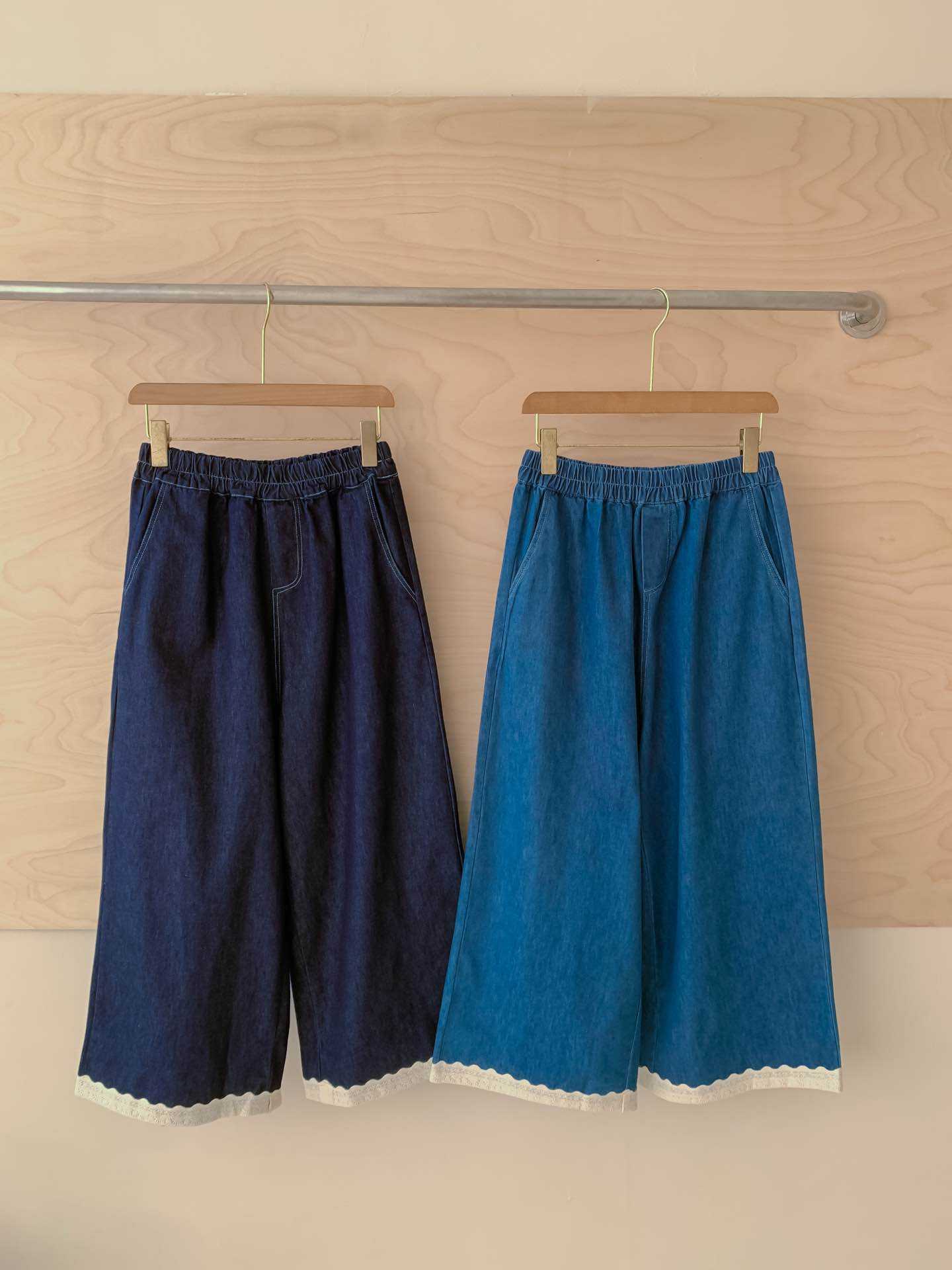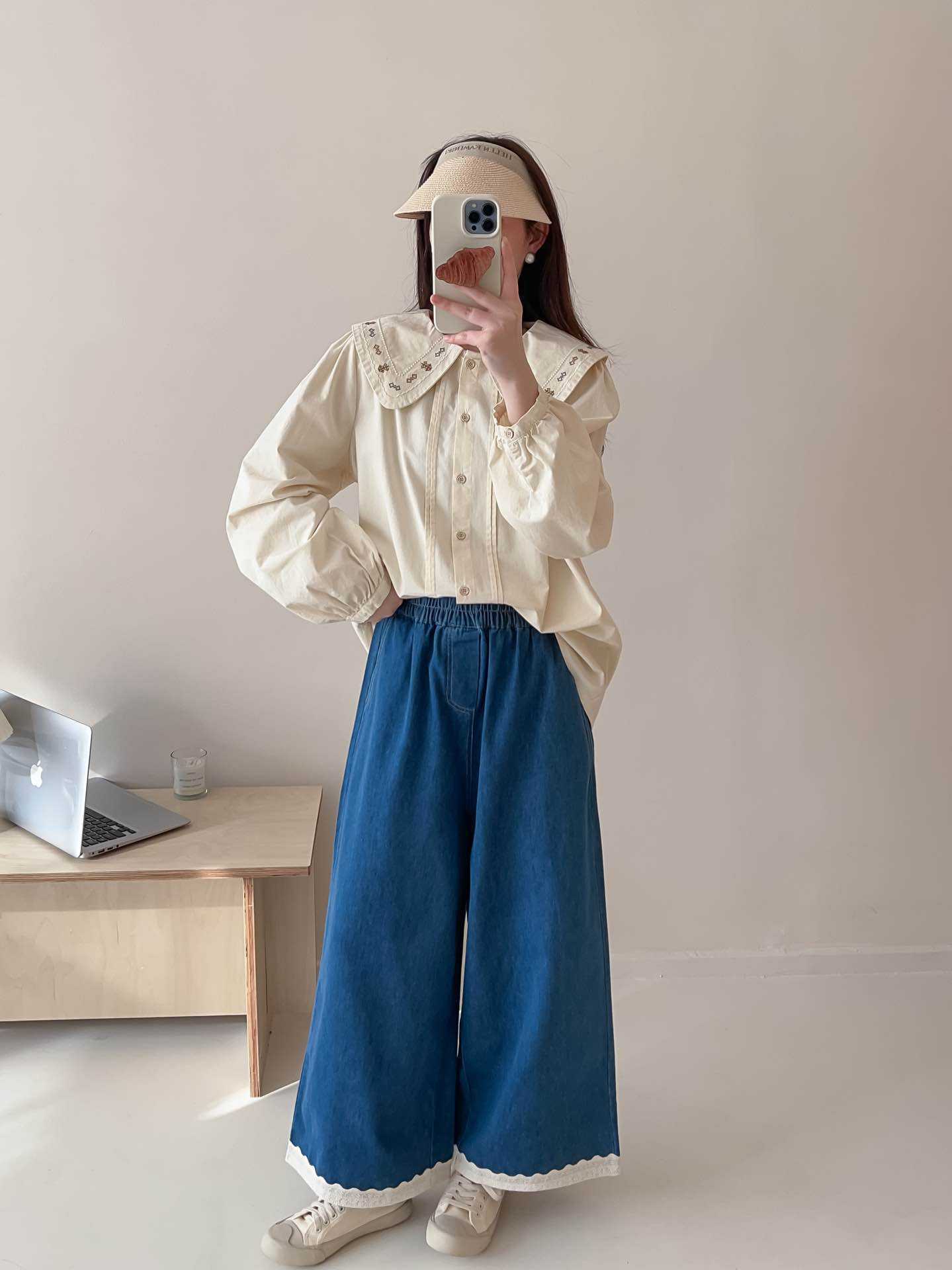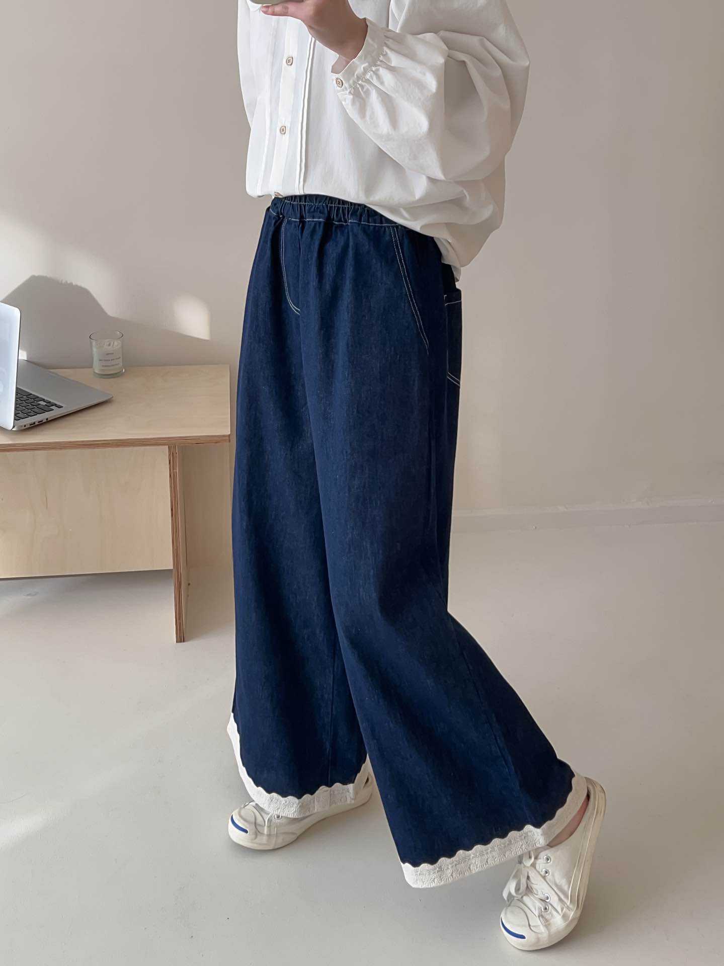 일본식 스티칭 레이스 레이스 청바지 2025 봄 루즈 캐주얼 하이 허리 올매치 와이드 레그 바지스토어 가기