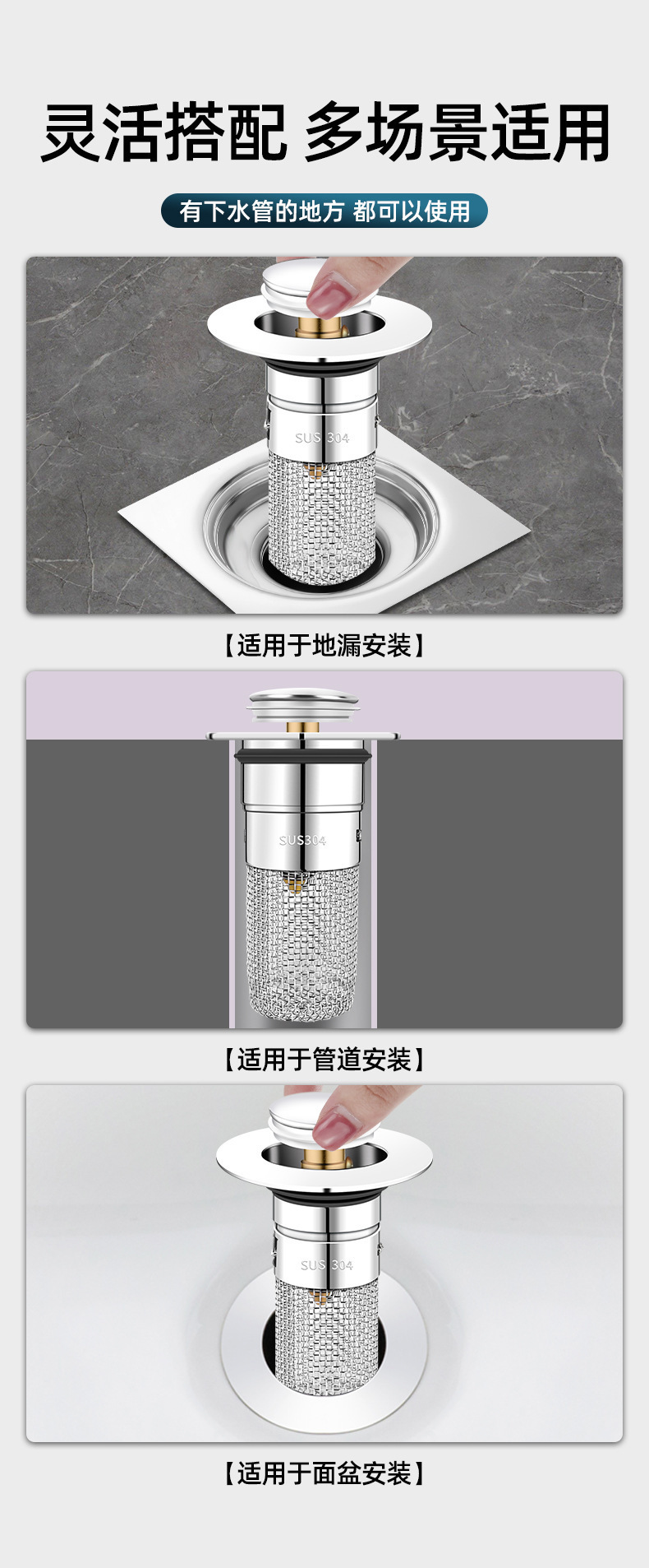 싱크 바운스 코어 세척 분지 누출 플러그 싱크 드레인 탈취제 분해 범용 프레스 헤어 필터