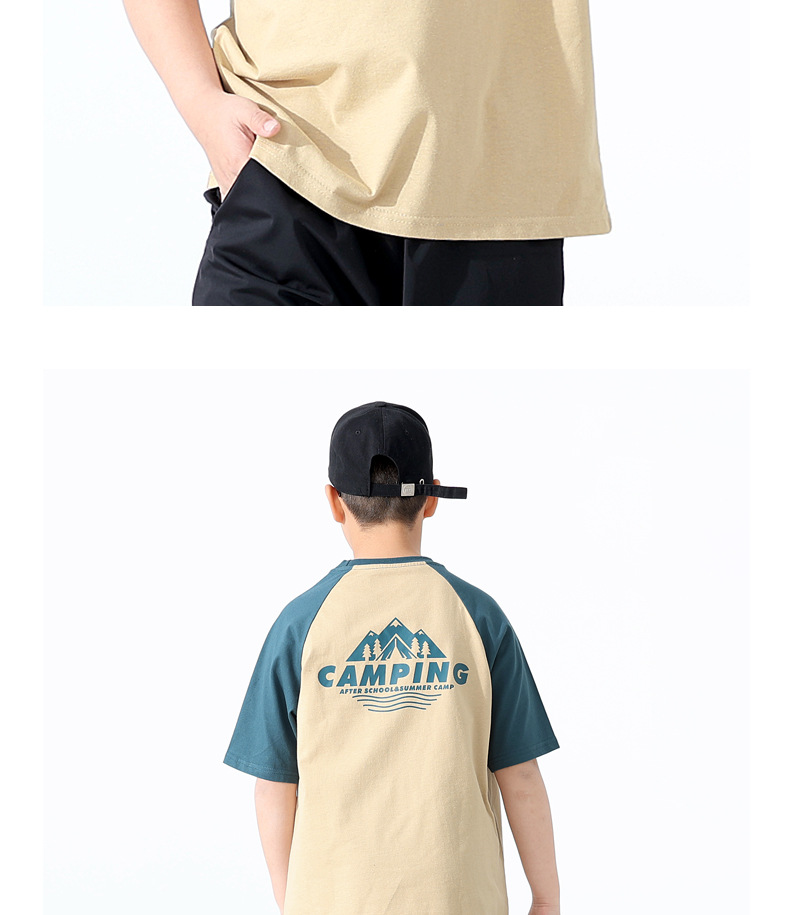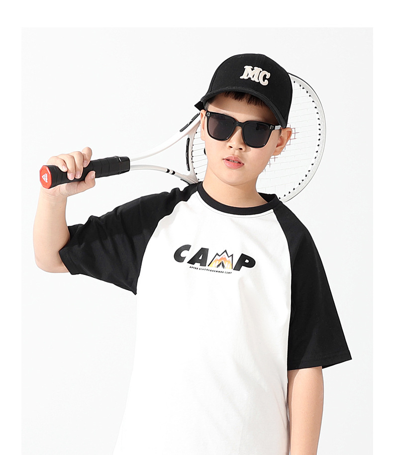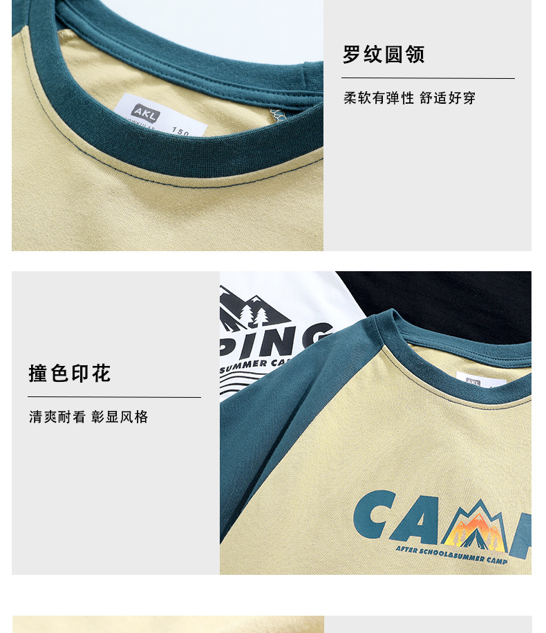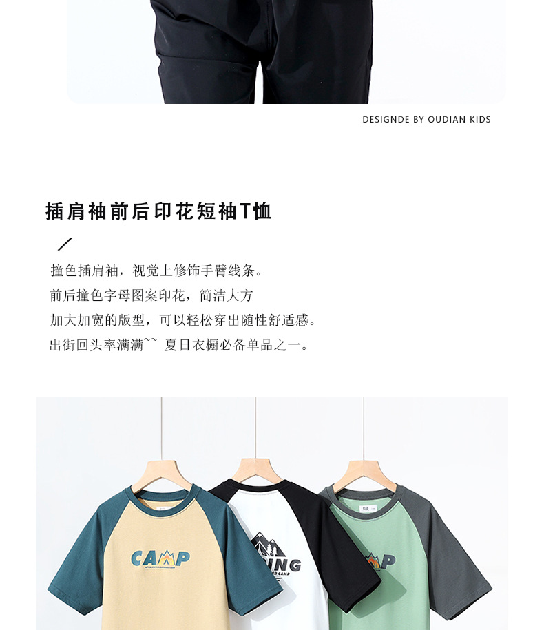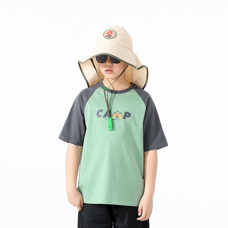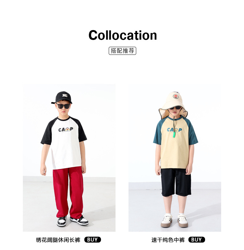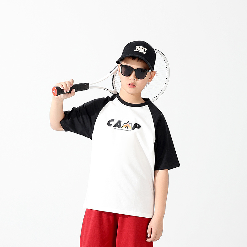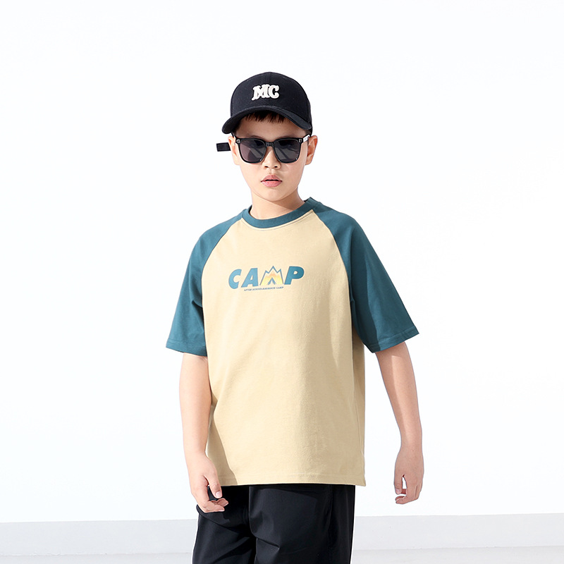 여름 어린이 의류 새로운 소년 스포츠 짧은 소매 큰 어린이 색상 대비 느슨한 통기성 최고 어린이 짧은 소매 도매스토어 가기