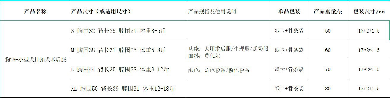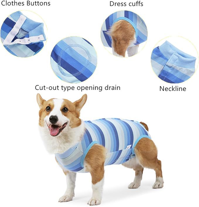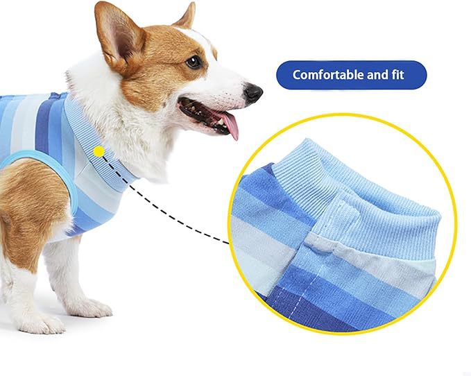 새로운 작은 개 수술 후 의류 개 살균 의류 국경 애완 동물 용품 애완 동물 의류 블루 스트라이프스토어 가기